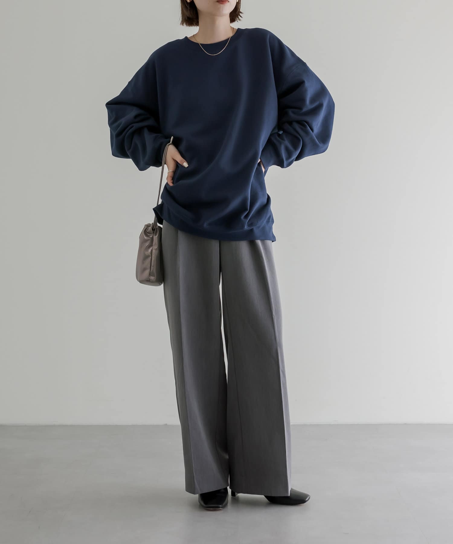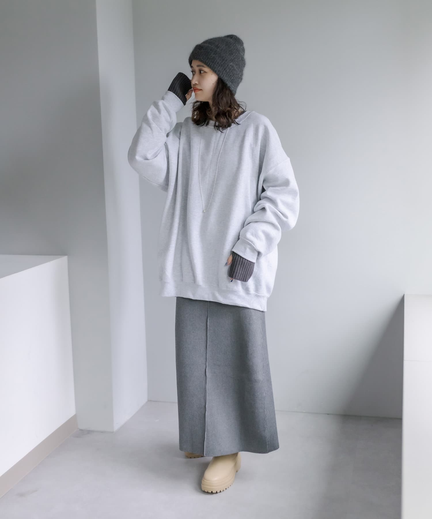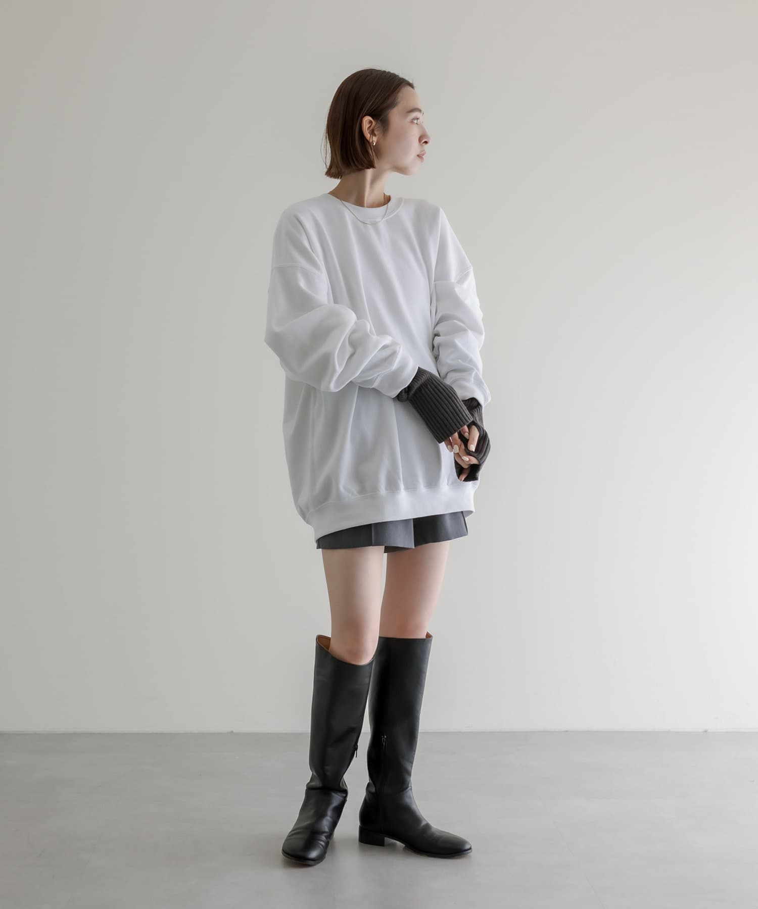 購入場所:店舗オーバーサイズ感がとても可愛いです!裏起毛ですが、薄めなので長い期間着れそうだと思います。前だけインしても形が可愛いのが嬉しいポイントです♪