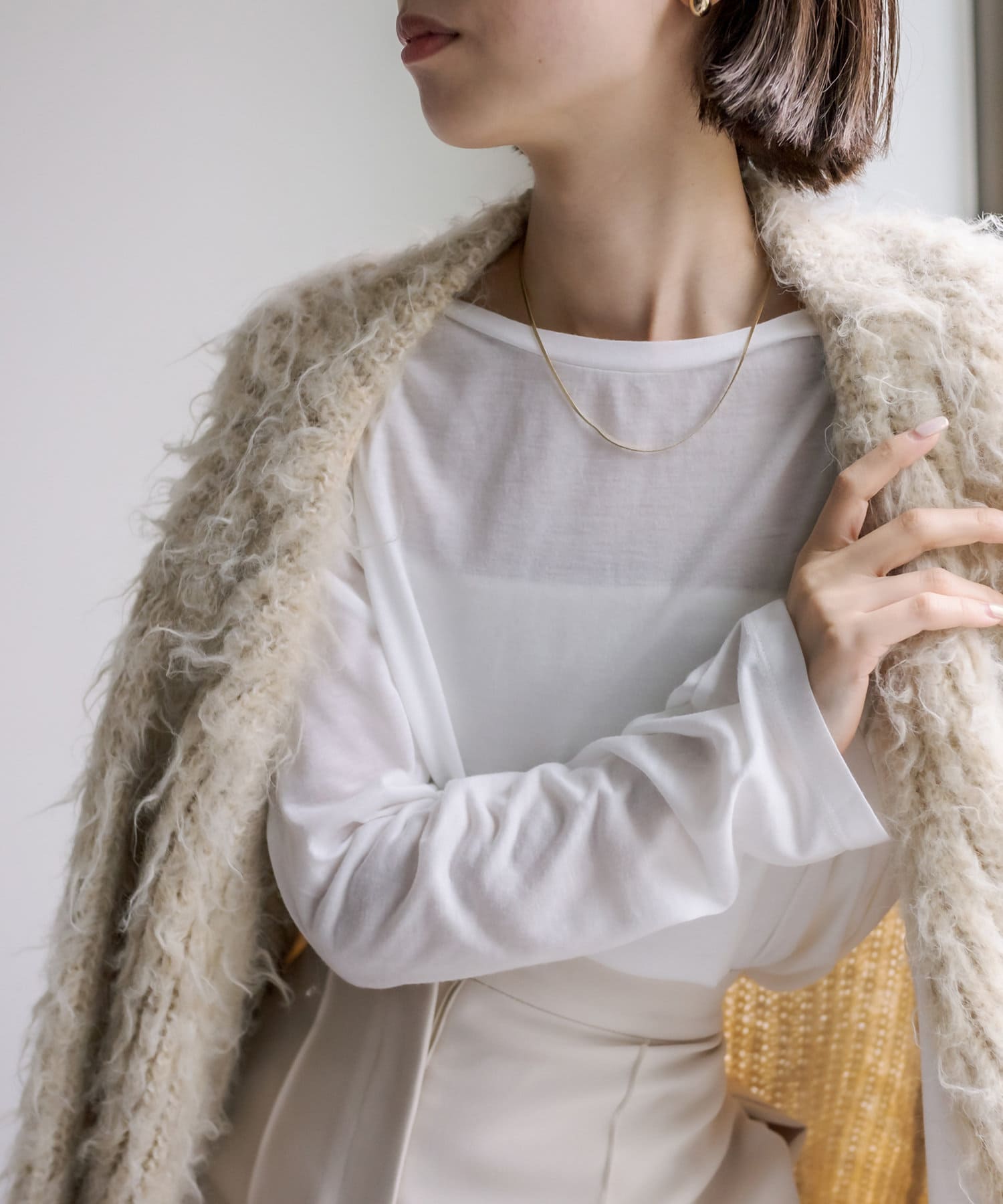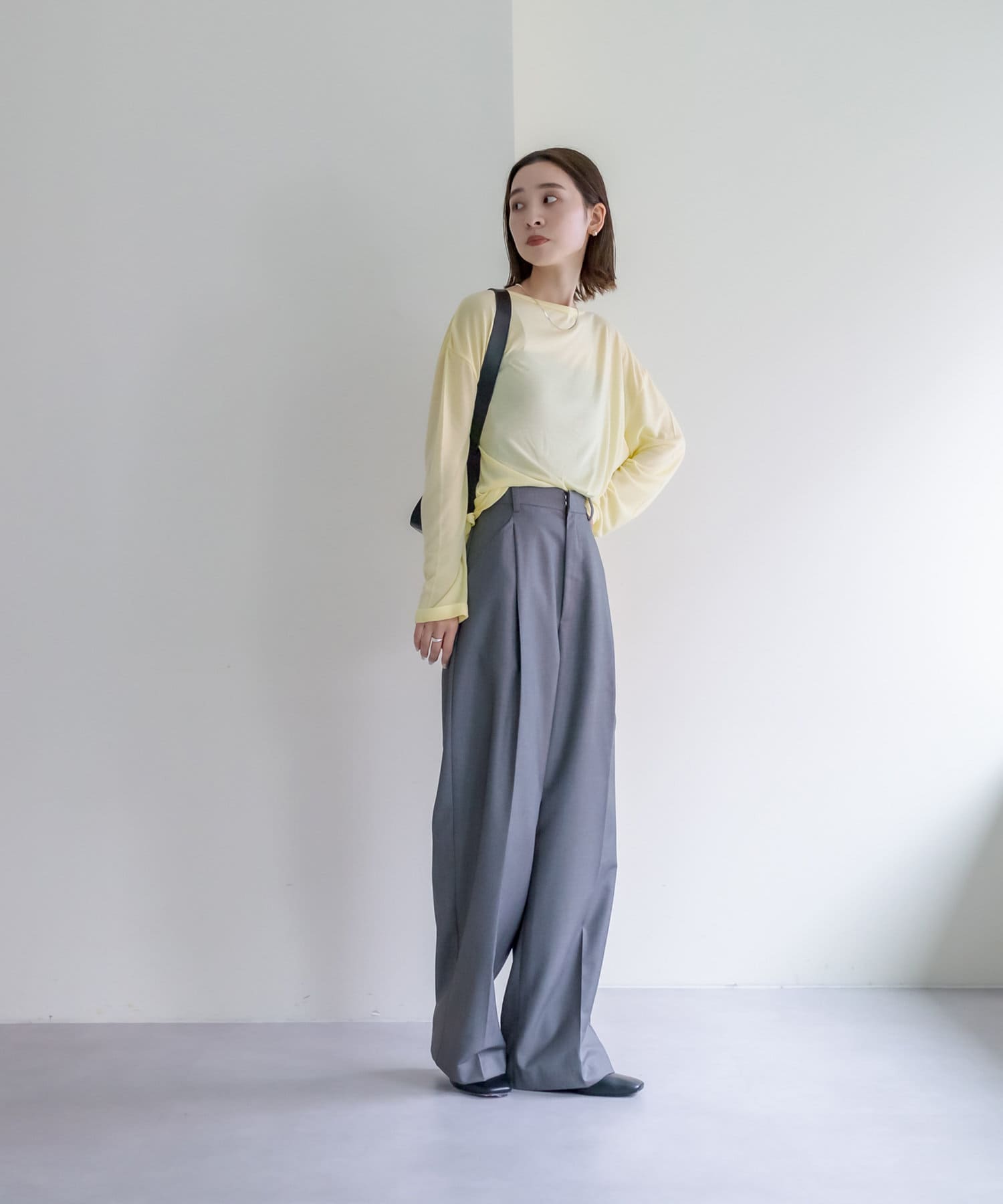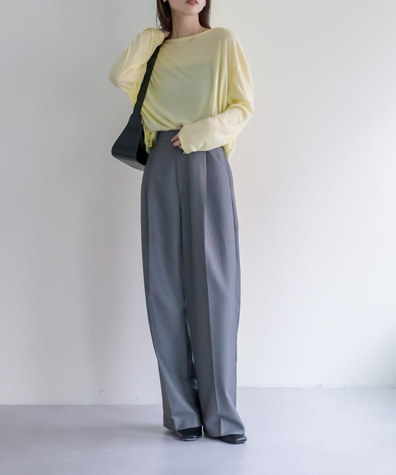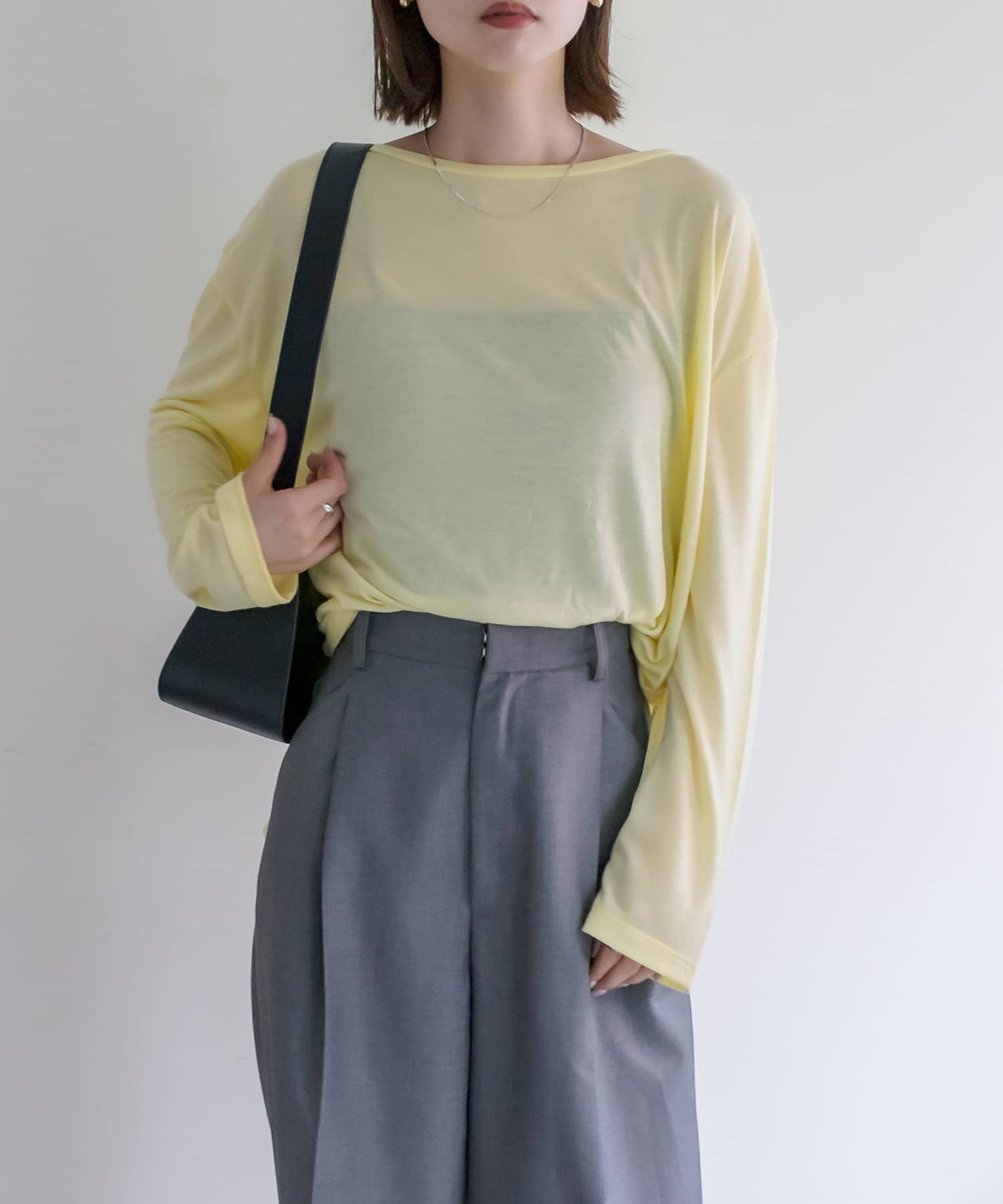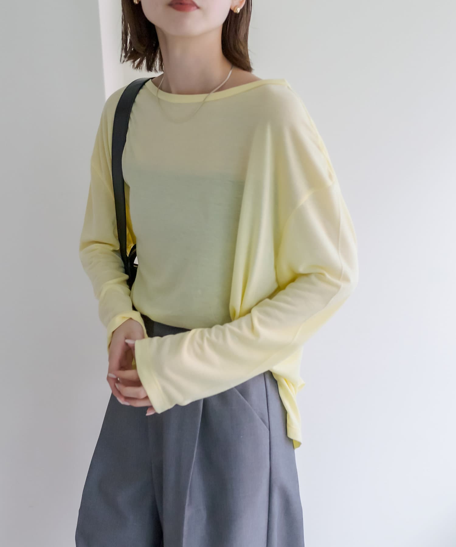 ・程よい透け感がありゆるっとしたシルエットがポイントのシアーロンT。