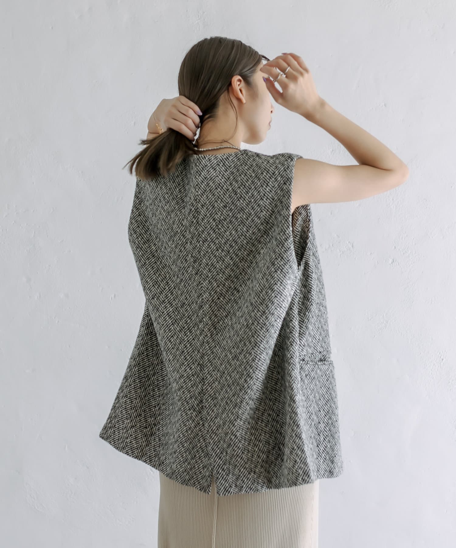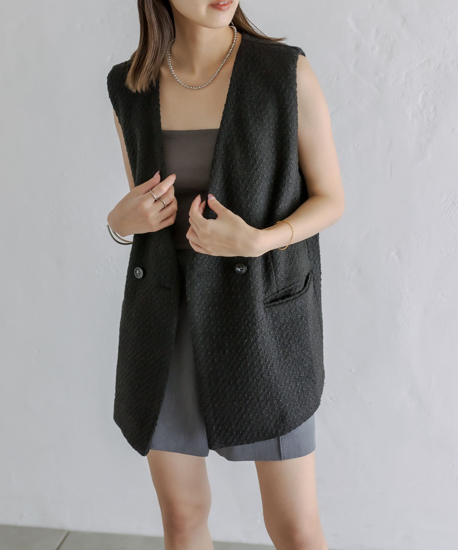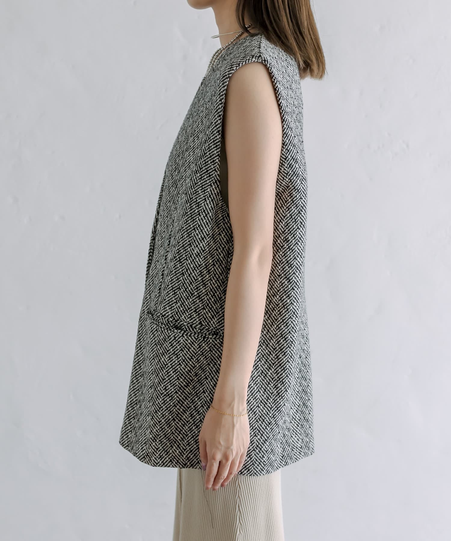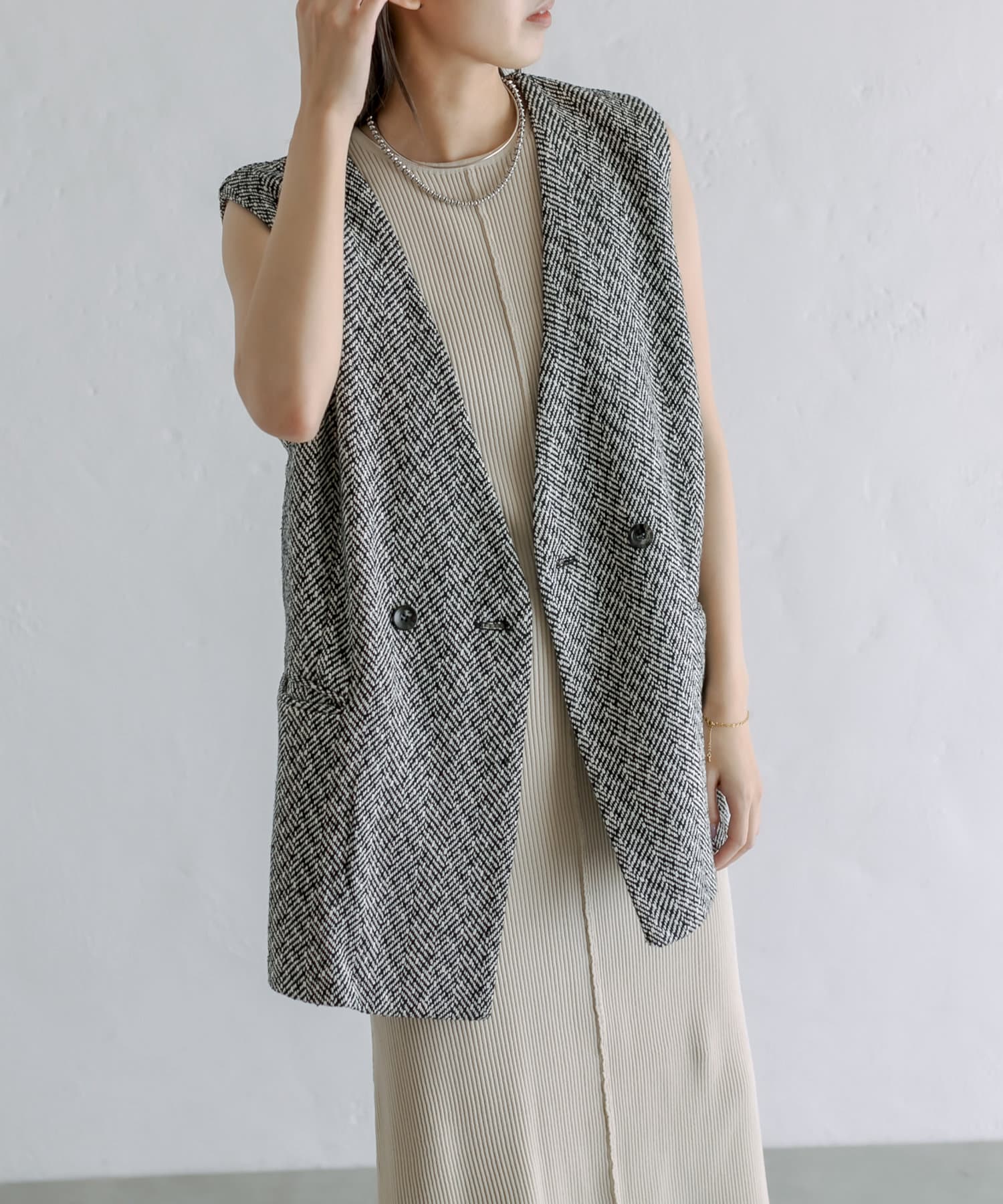 今季のレイヤードスタイルに最適!高級感のあるツイード素材のジレが登場!