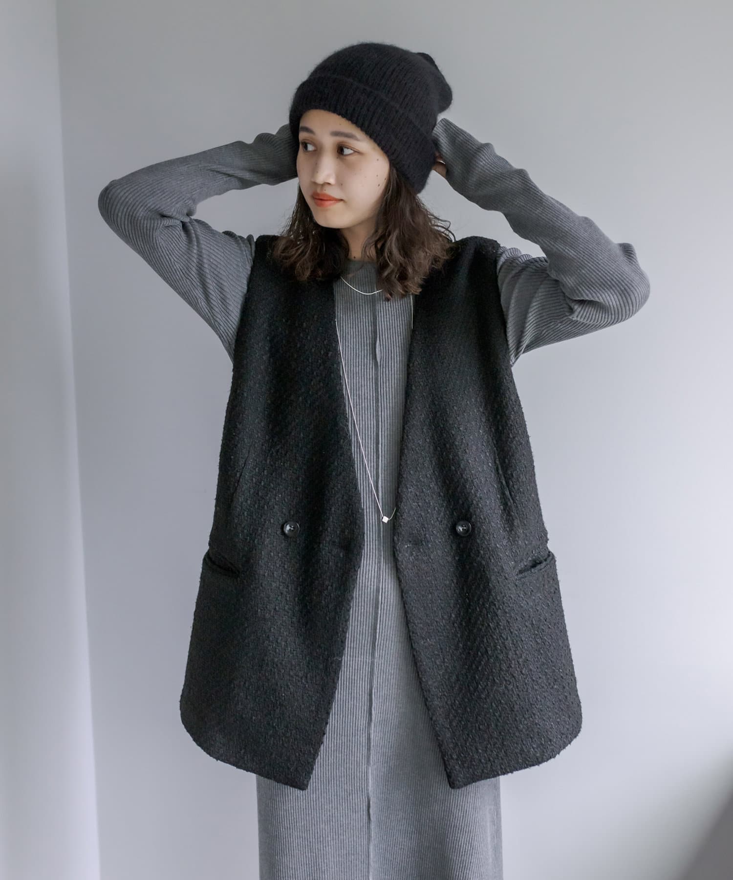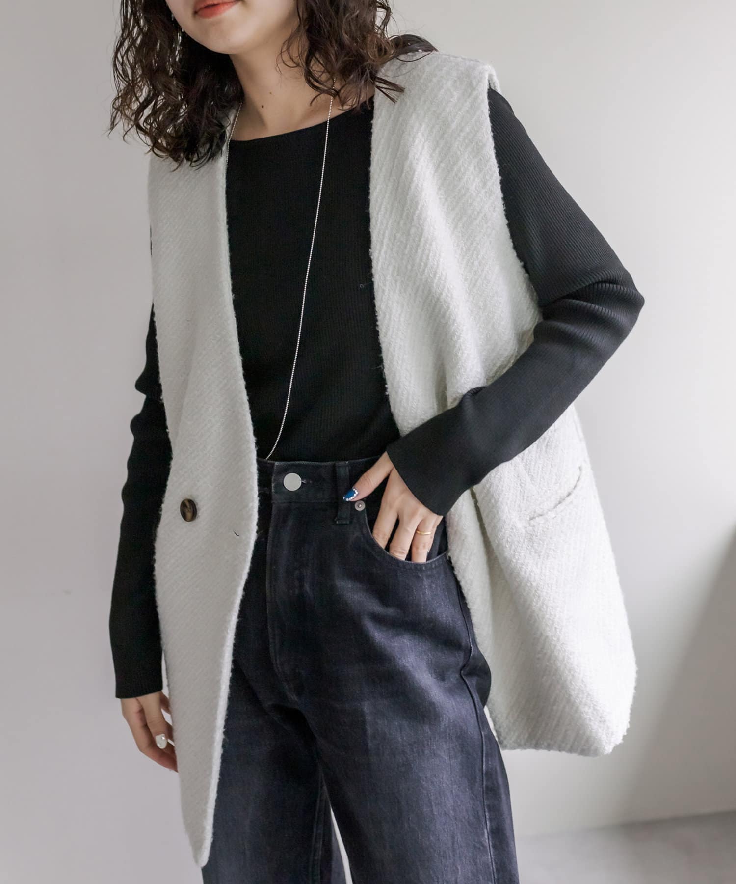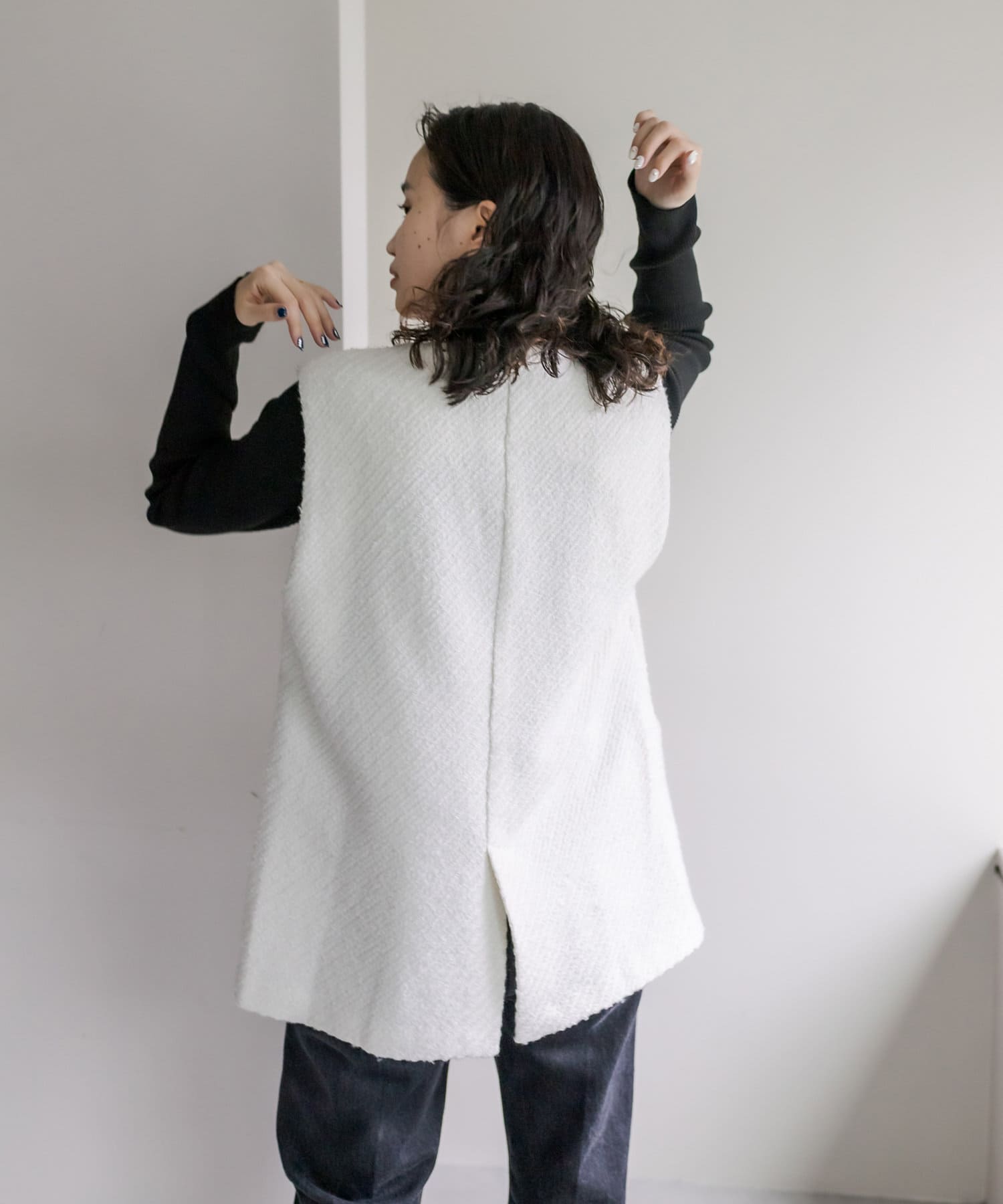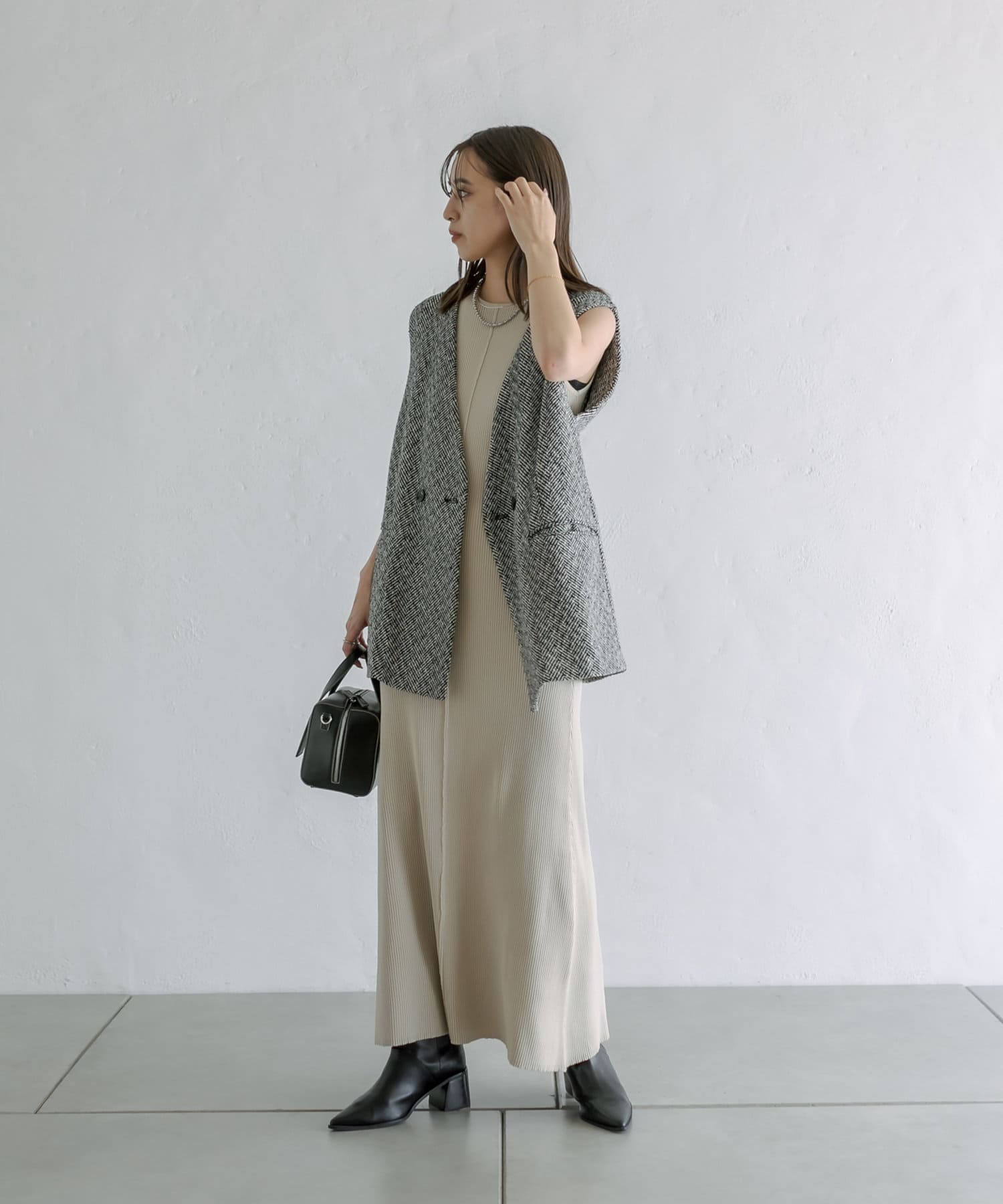 今季のレイヤードスタイルに最適!高級感のあるツイード素材のジレが登場!