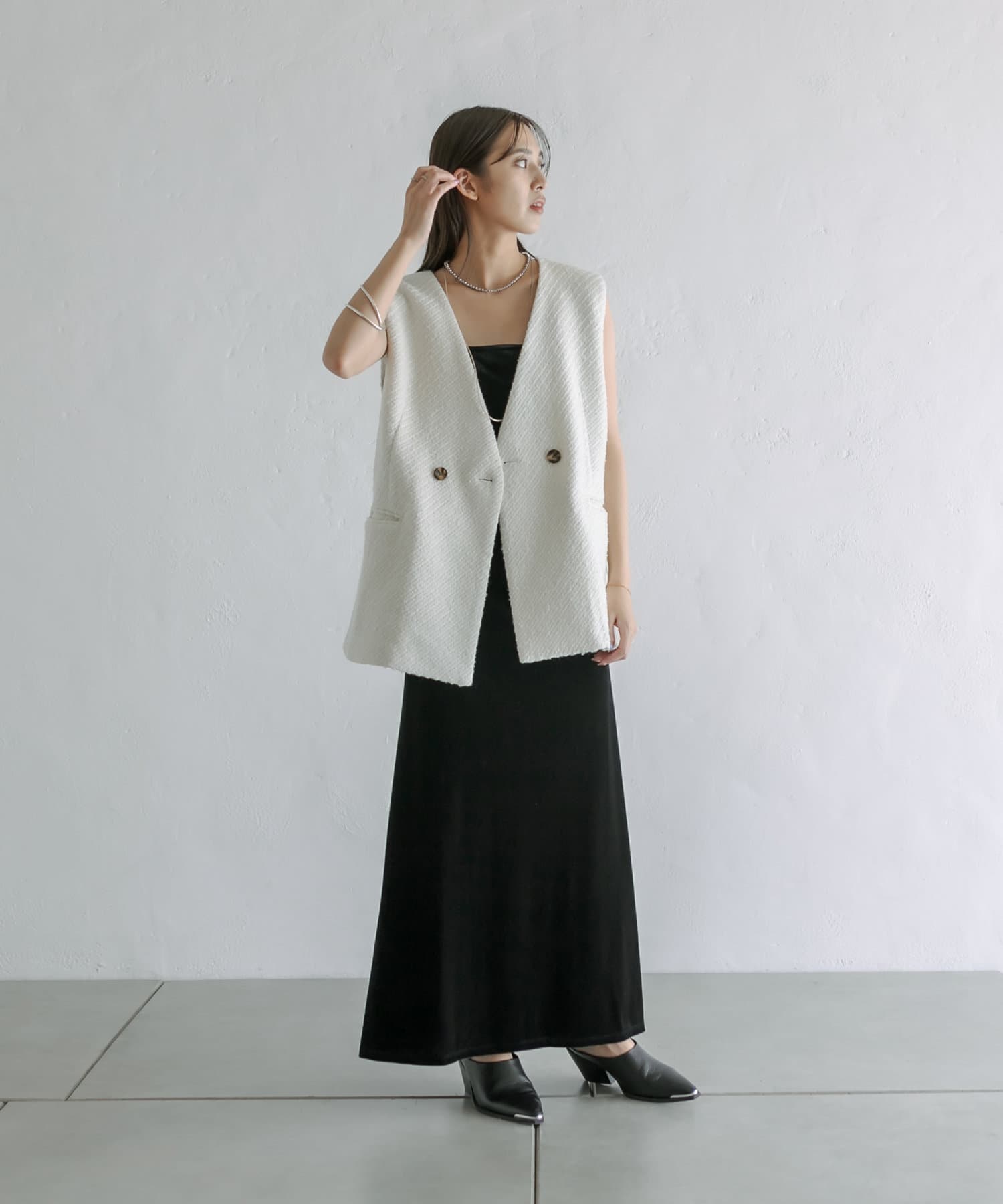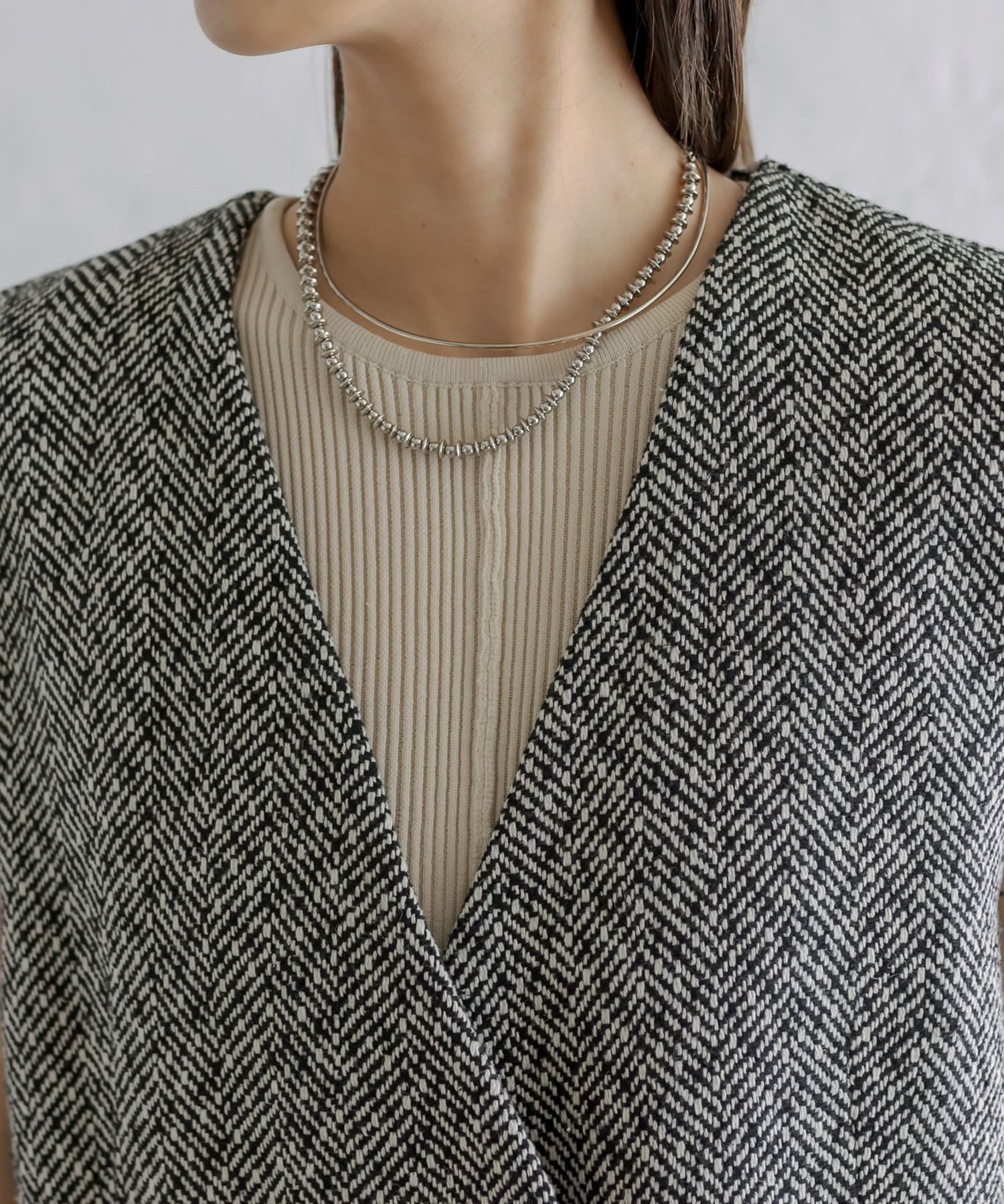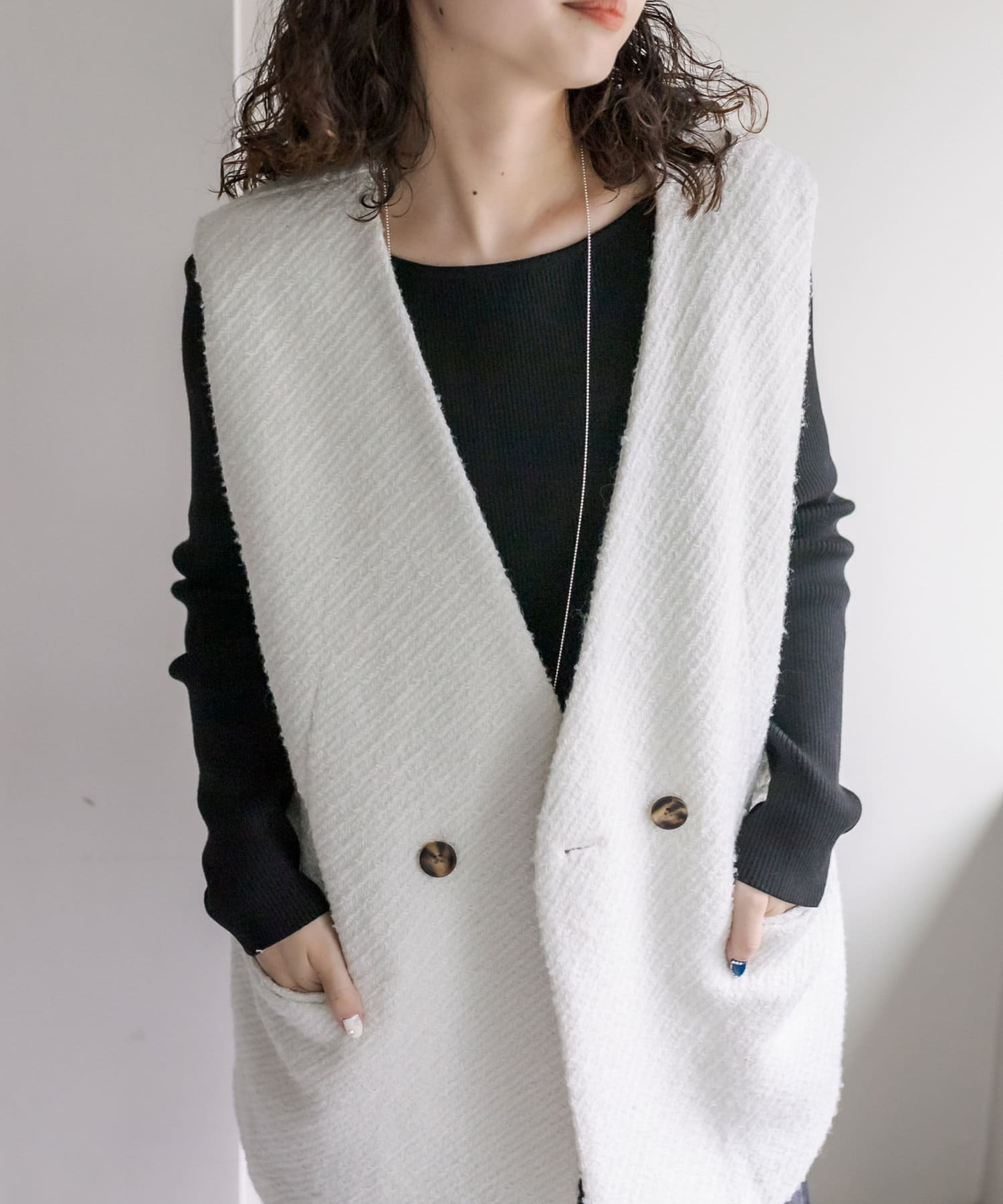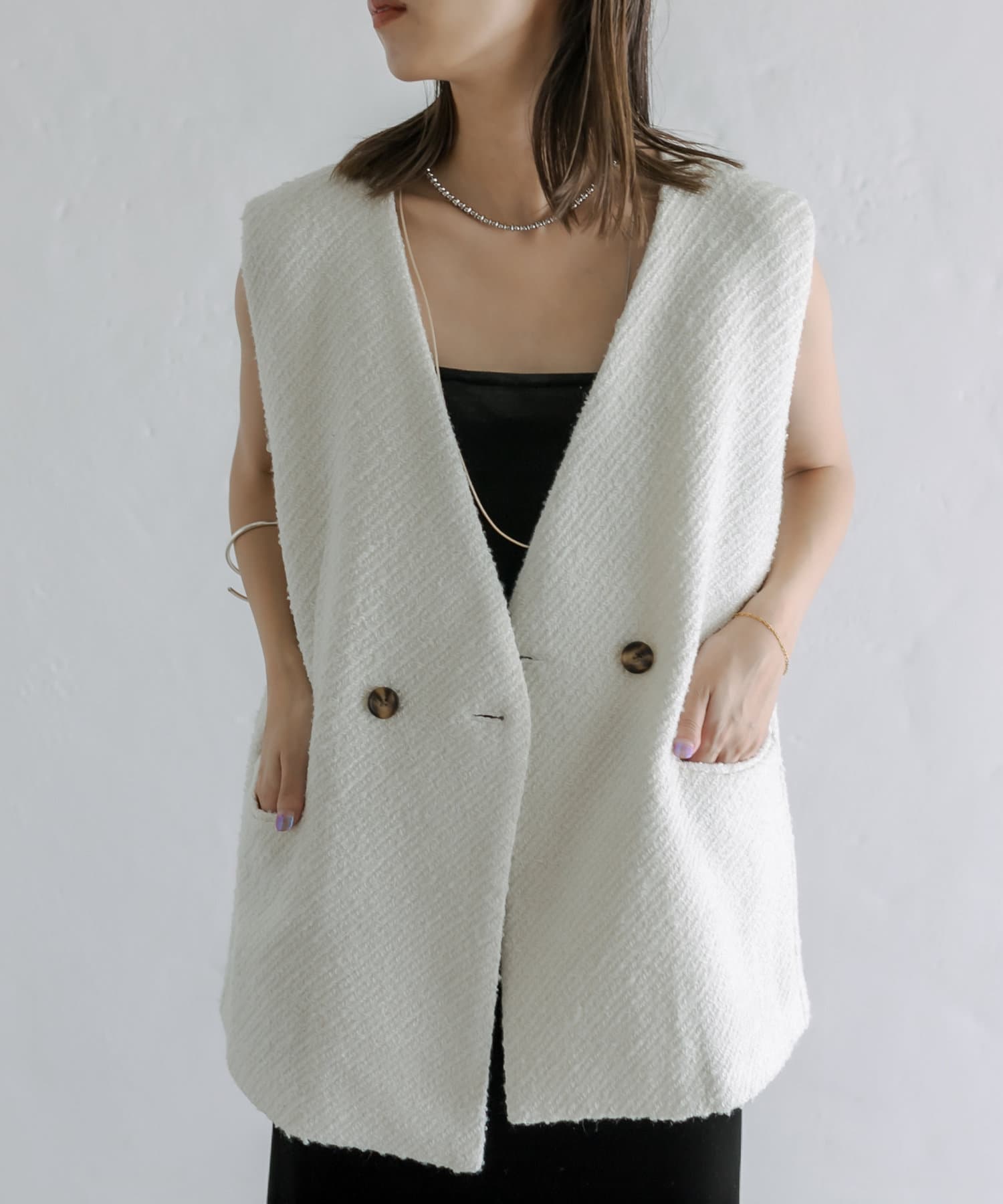 今季のレイヤードスタイルに最適!高級感のあるツイード素材のジレが登場!