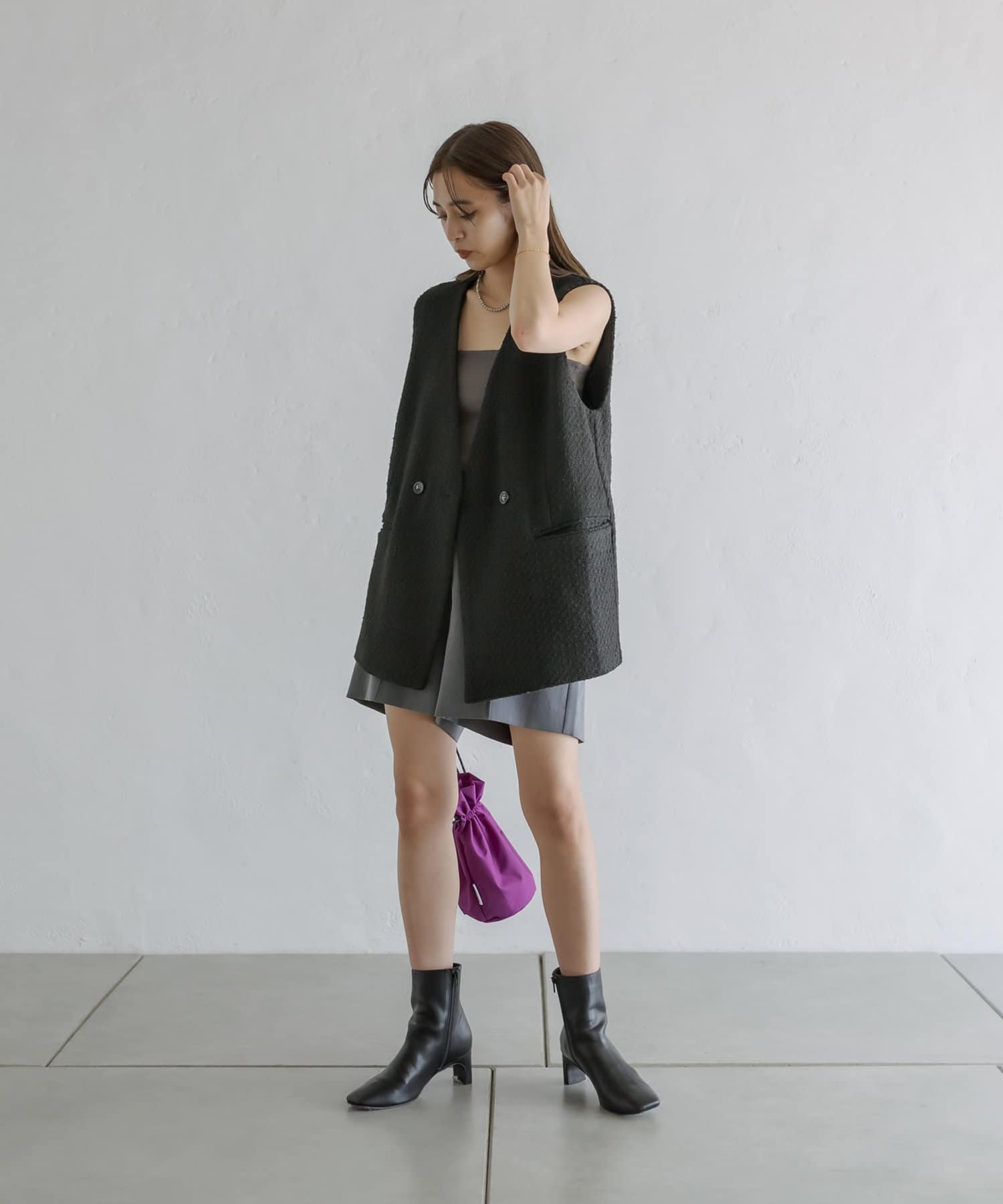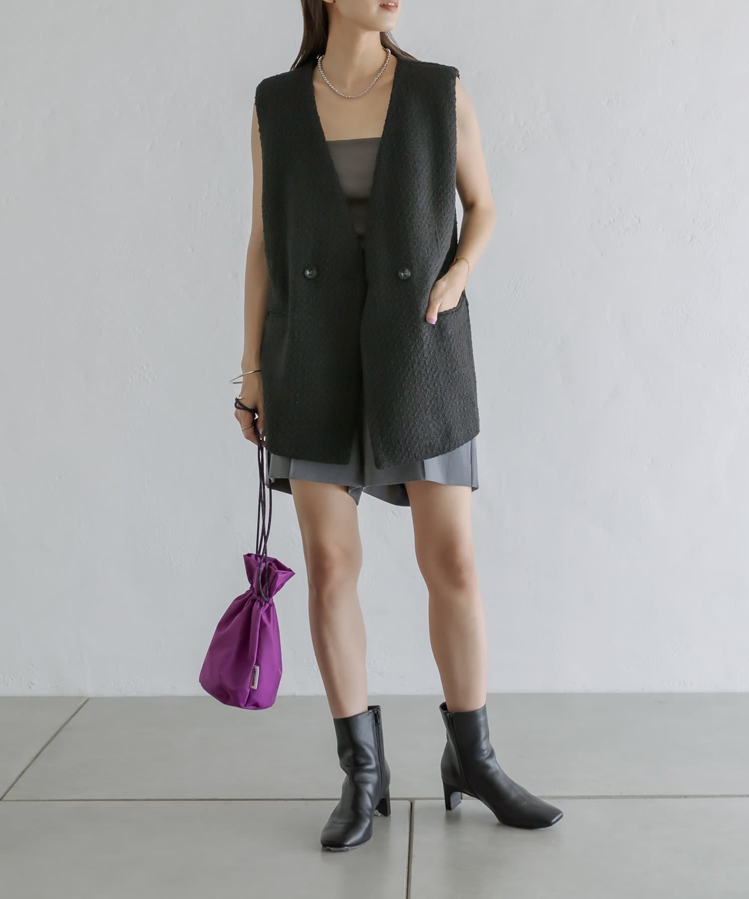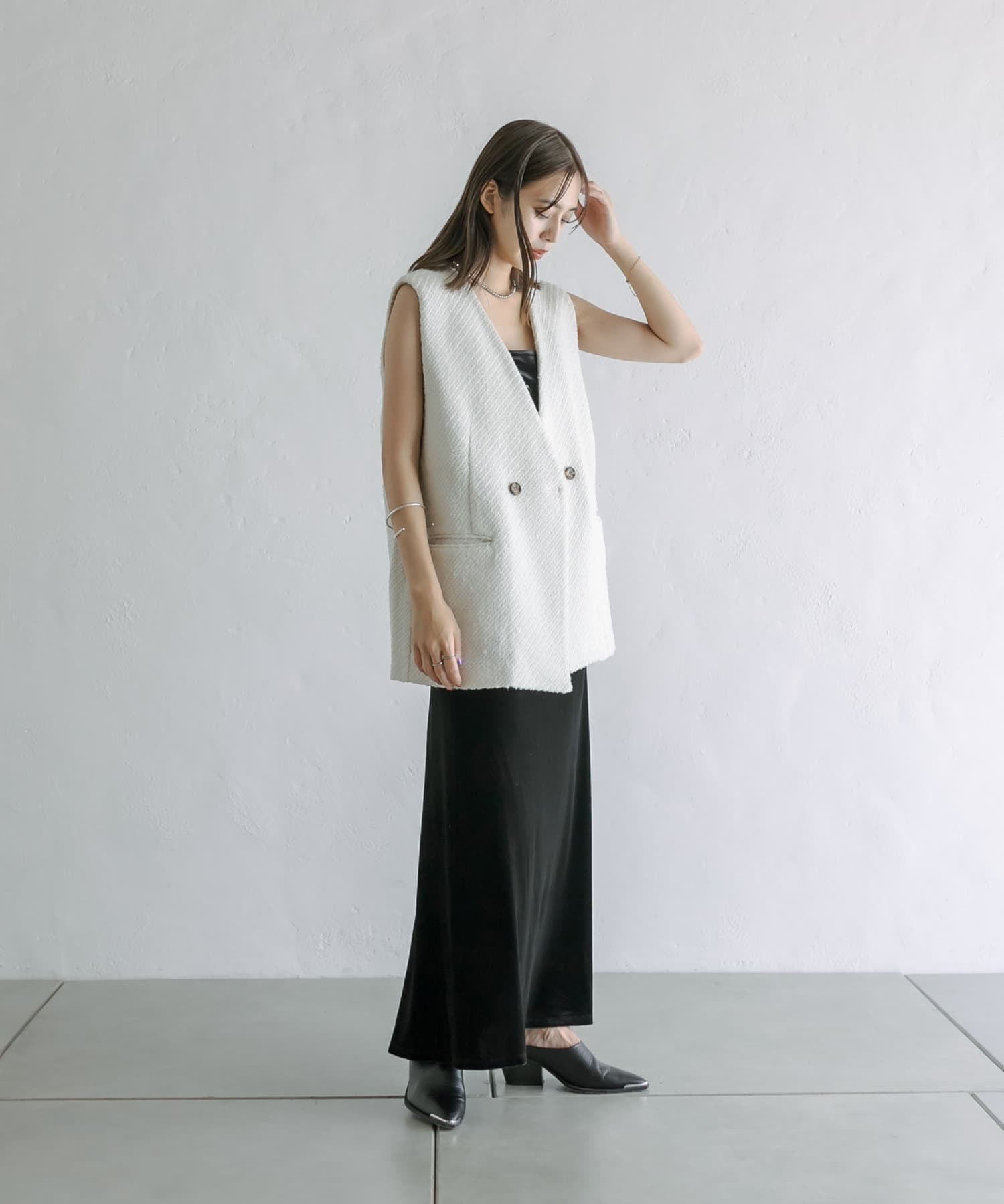 ・秋に着たいツイード素材を使用したトレンドのジレが登場。