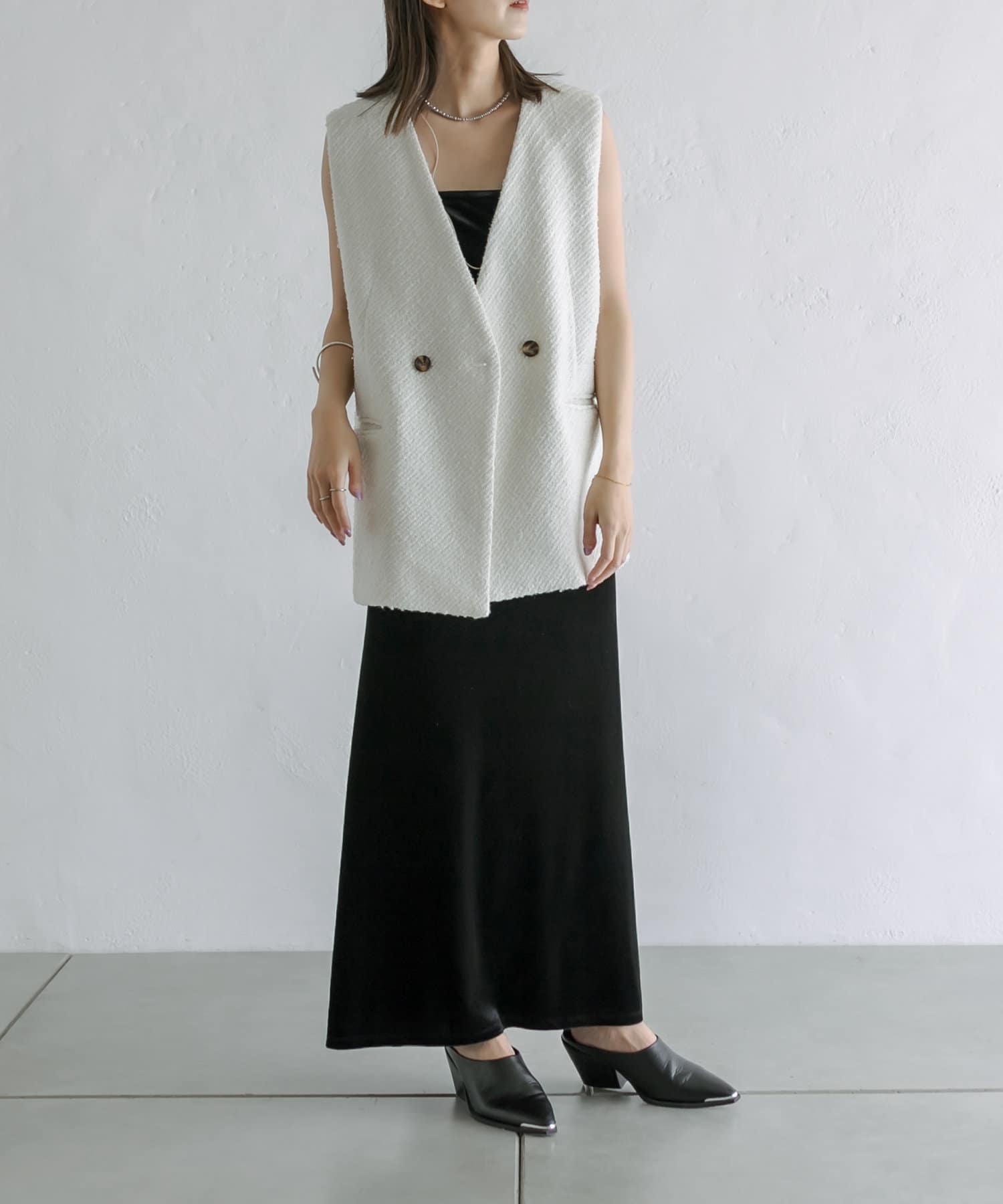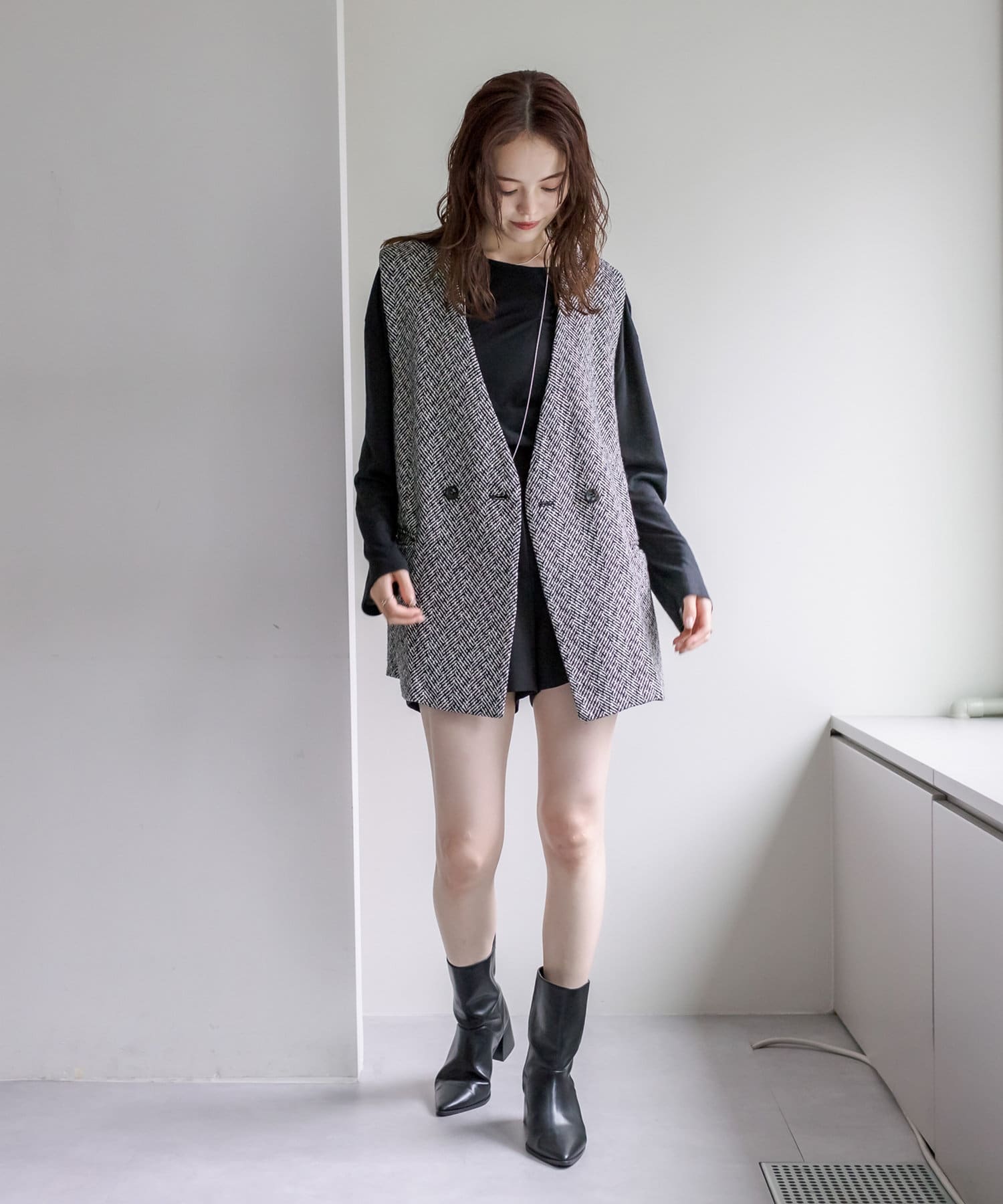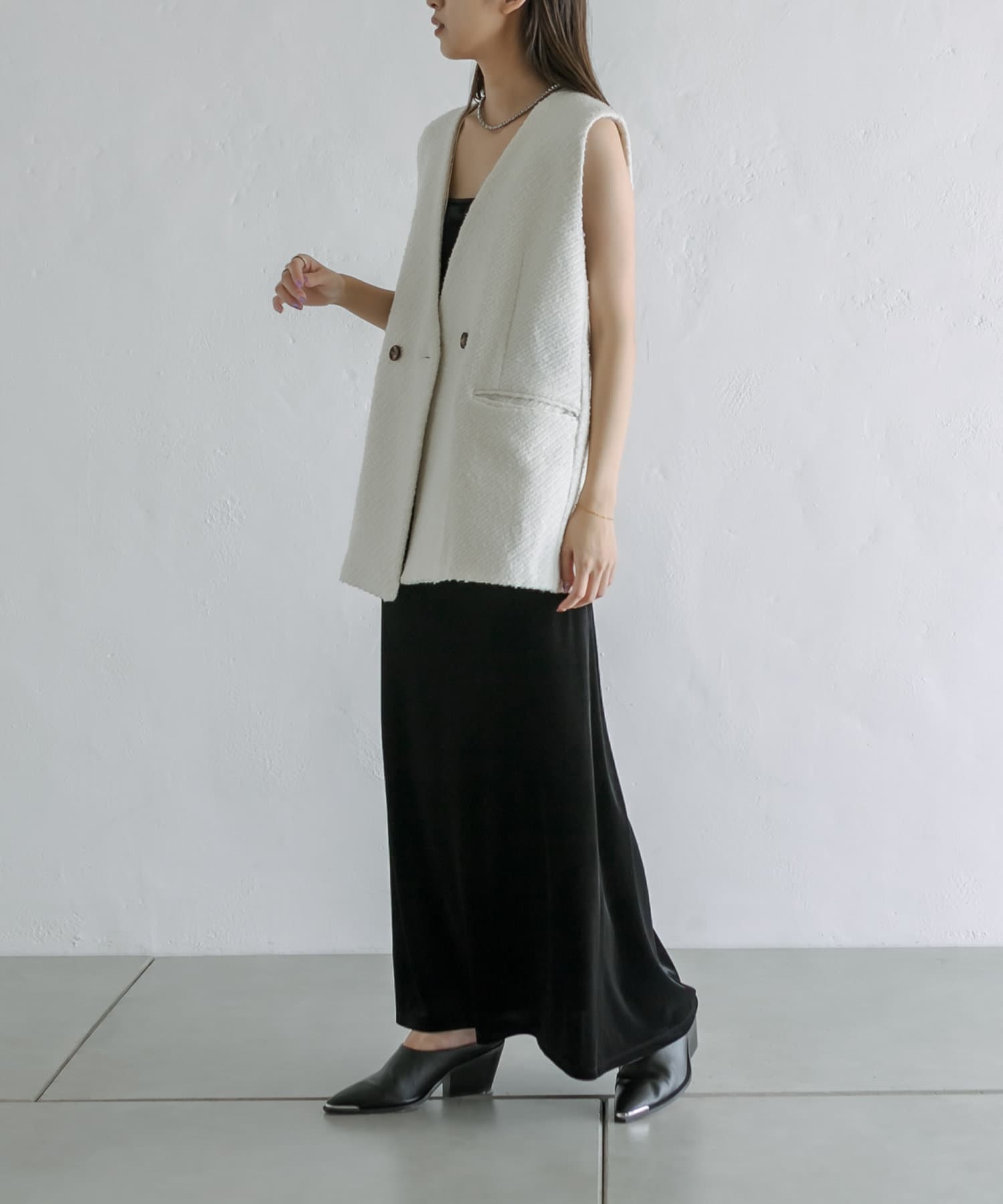 ・秋に着たいツイード素材を使用したトレンドのジレが登場。