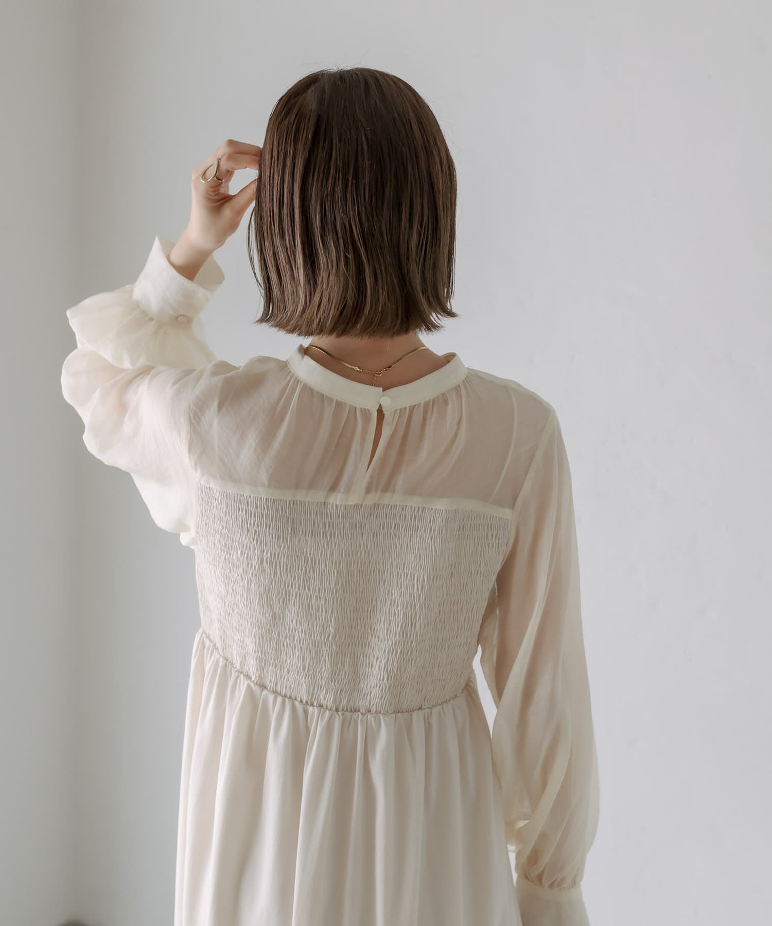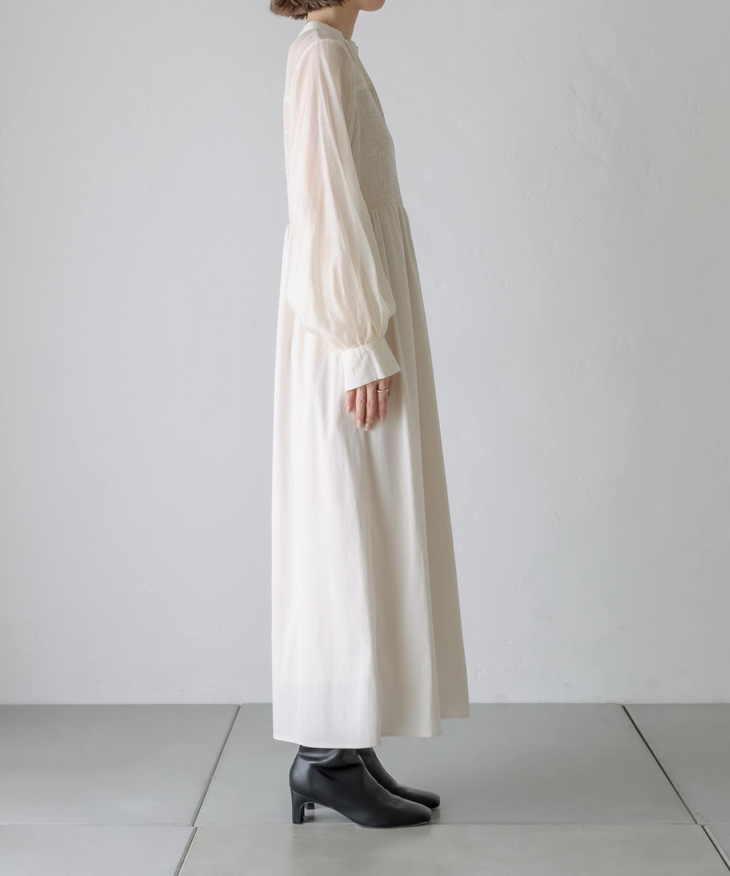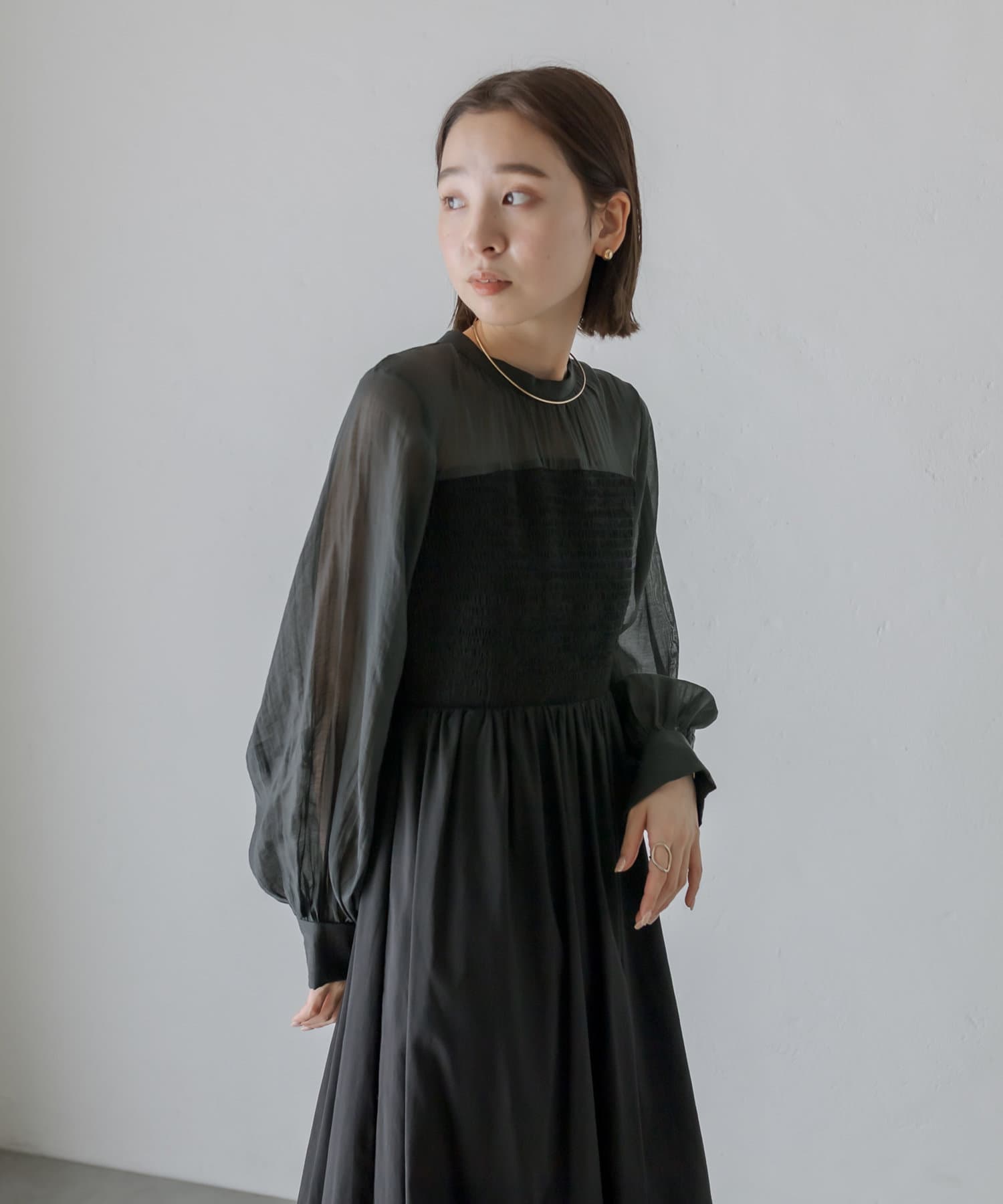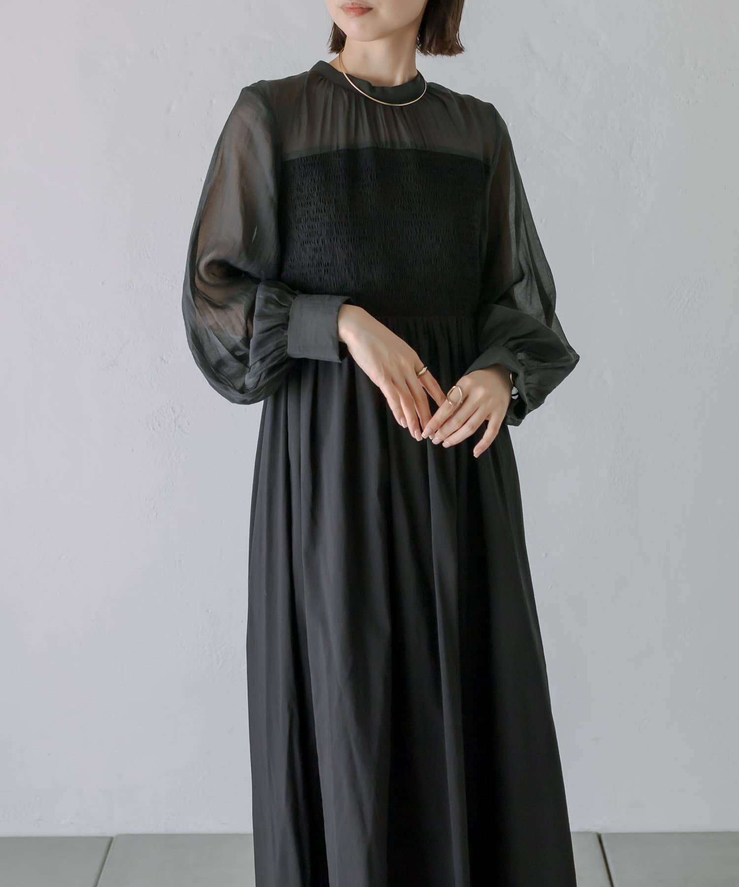 [mline]シャーリングシアーワンピース