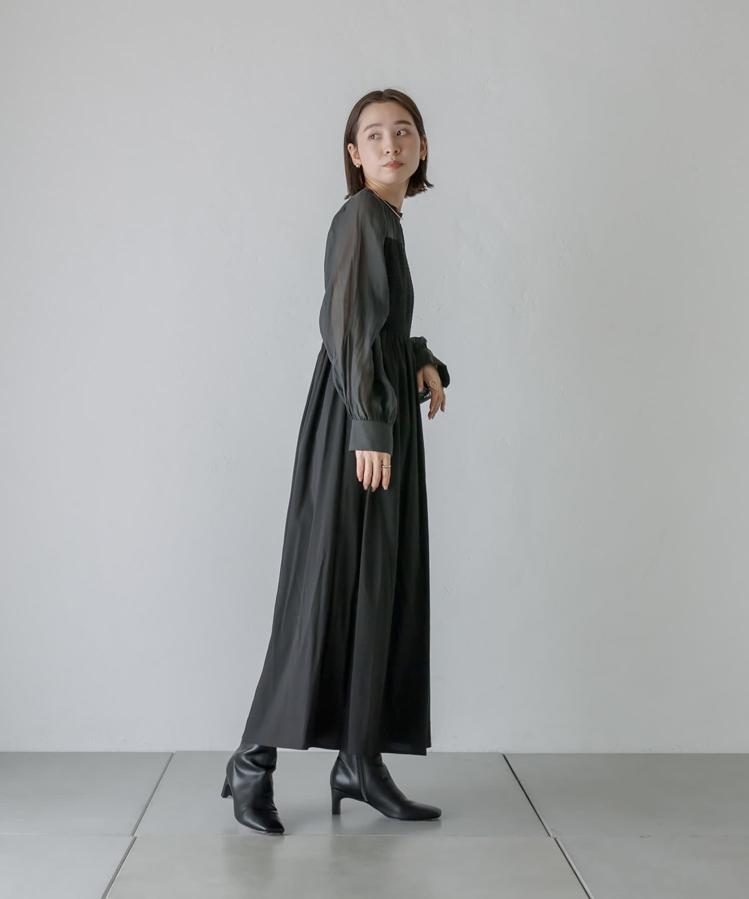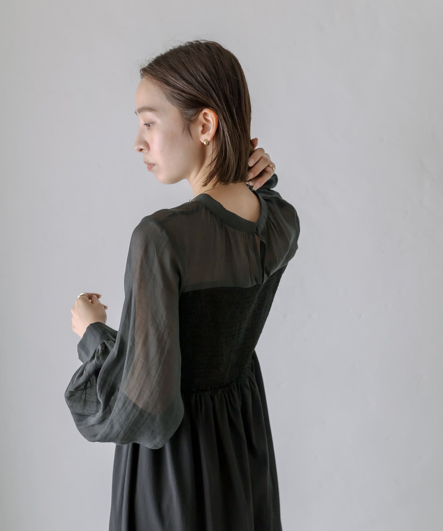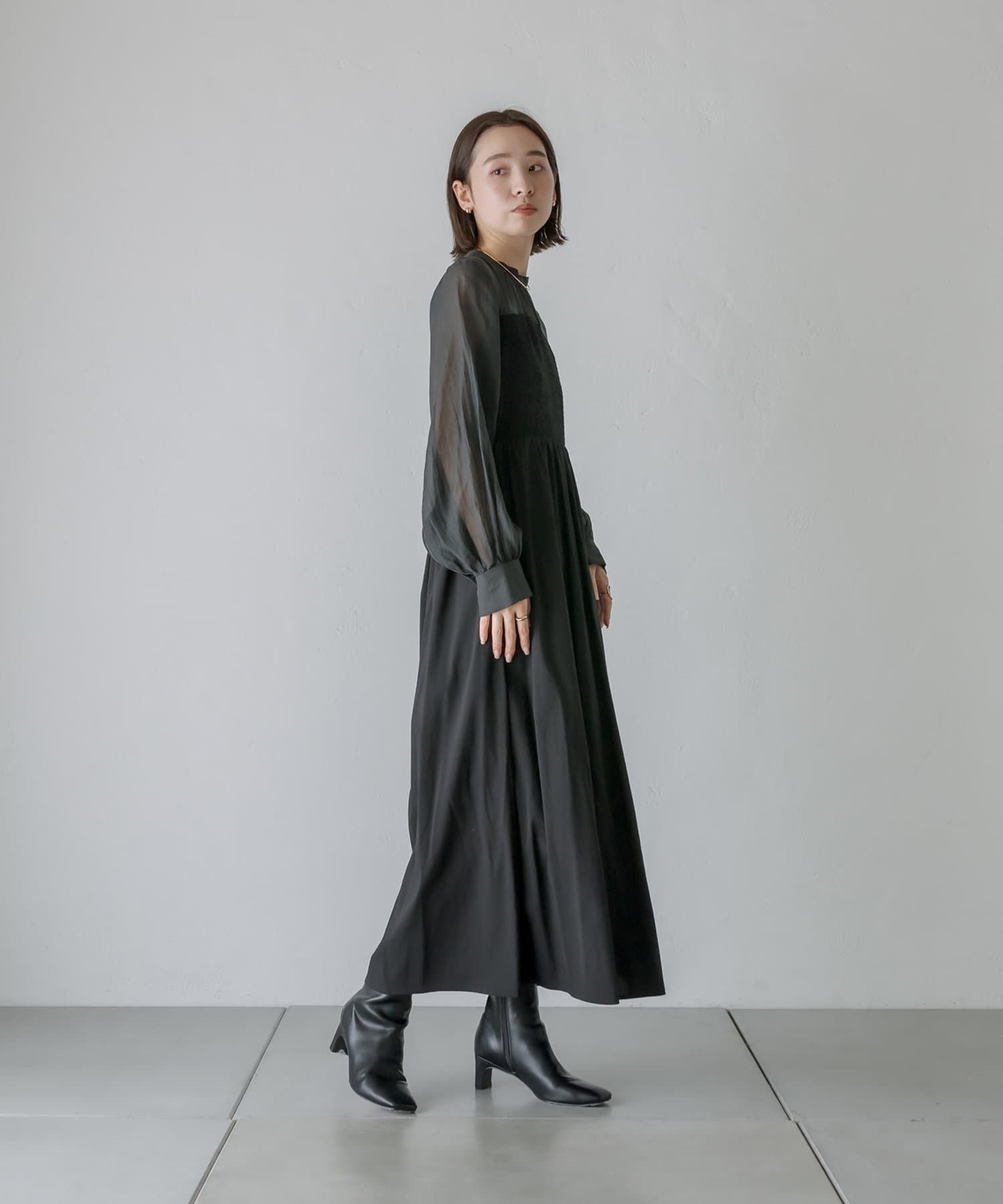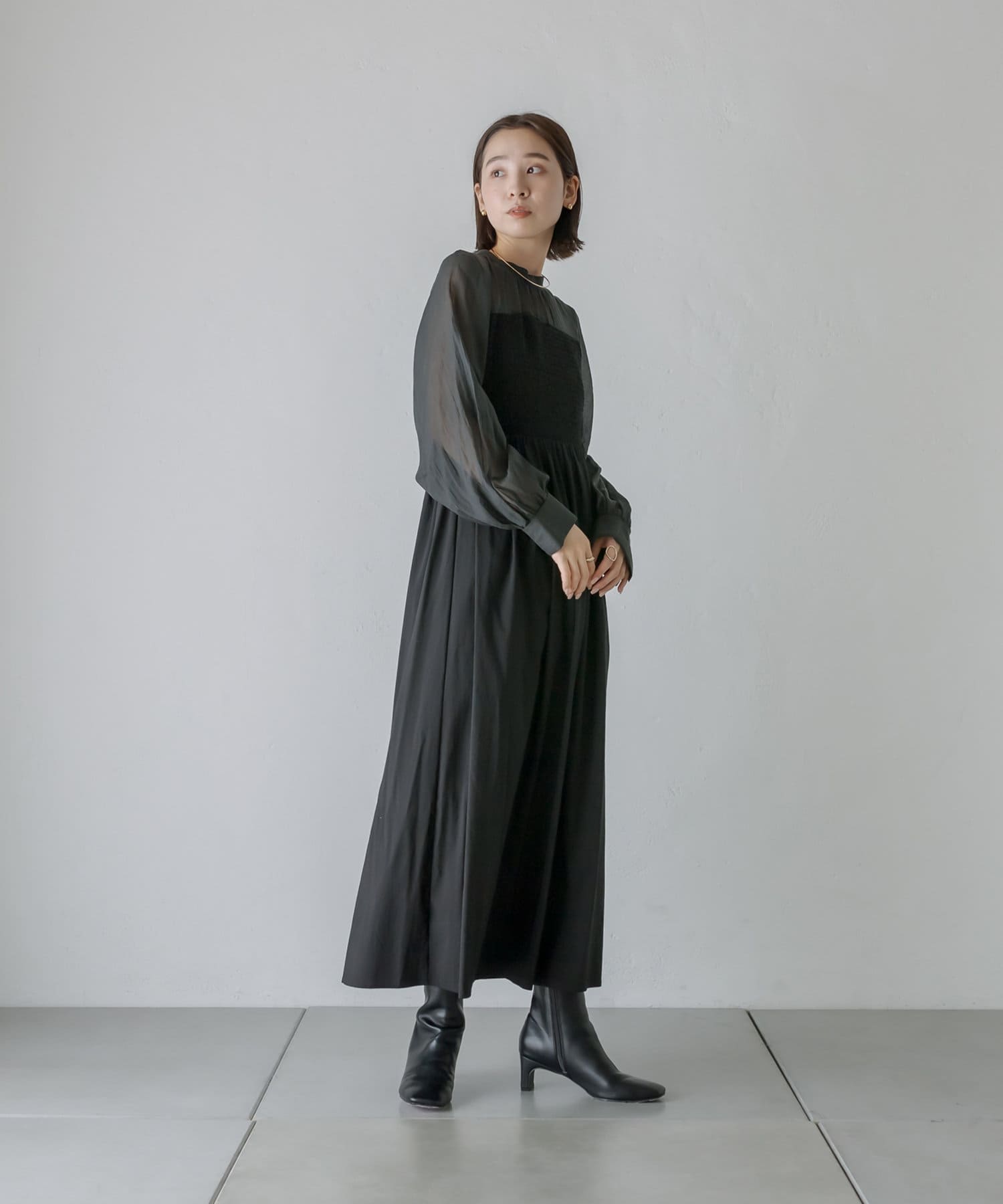 [mline]シャーリングシアーワンピース