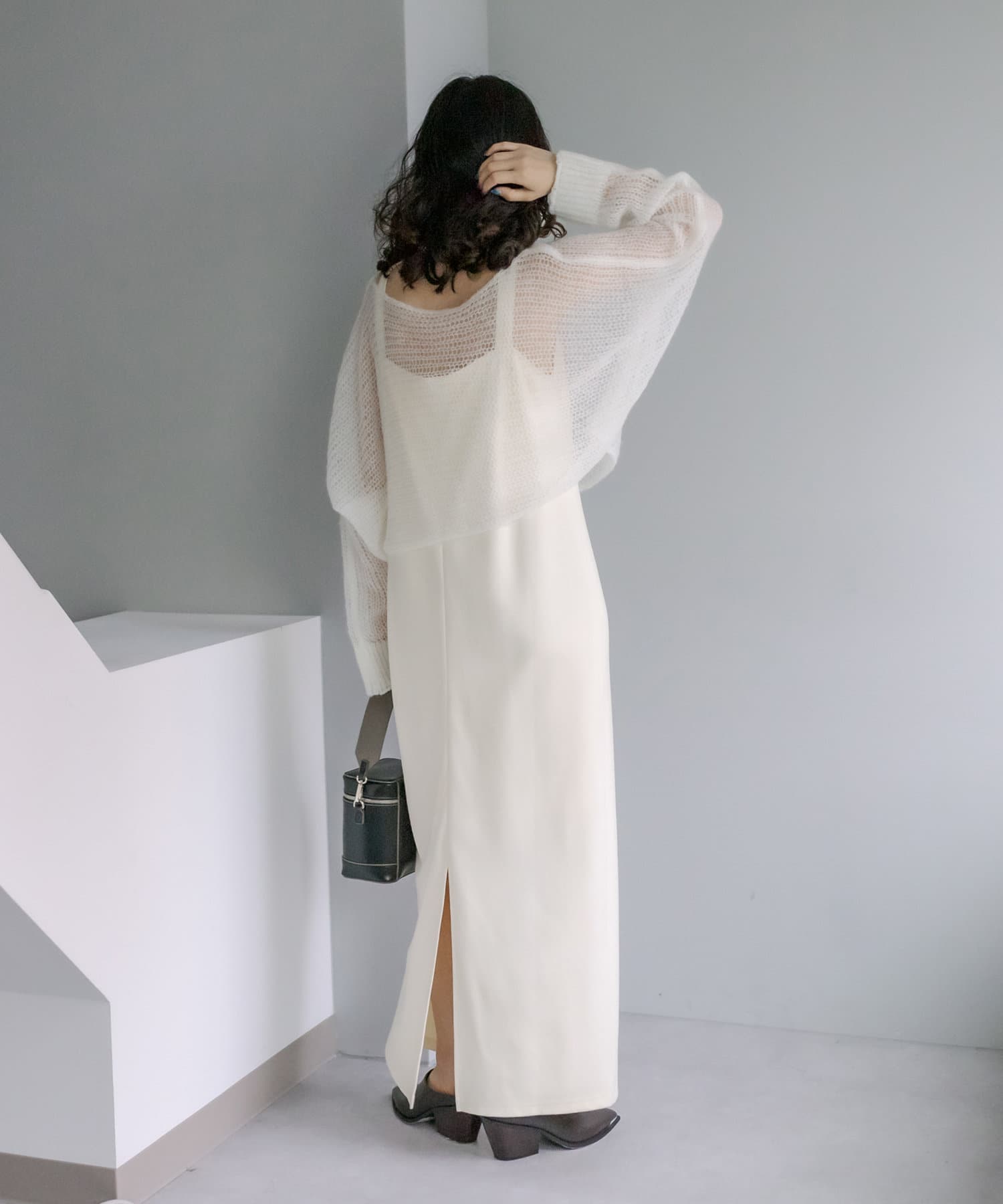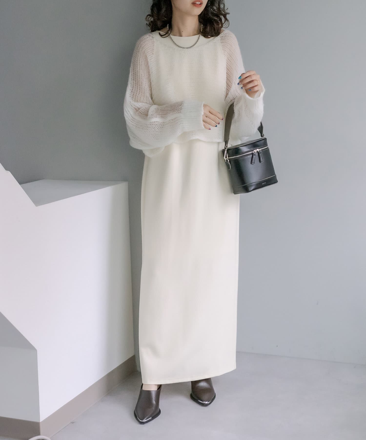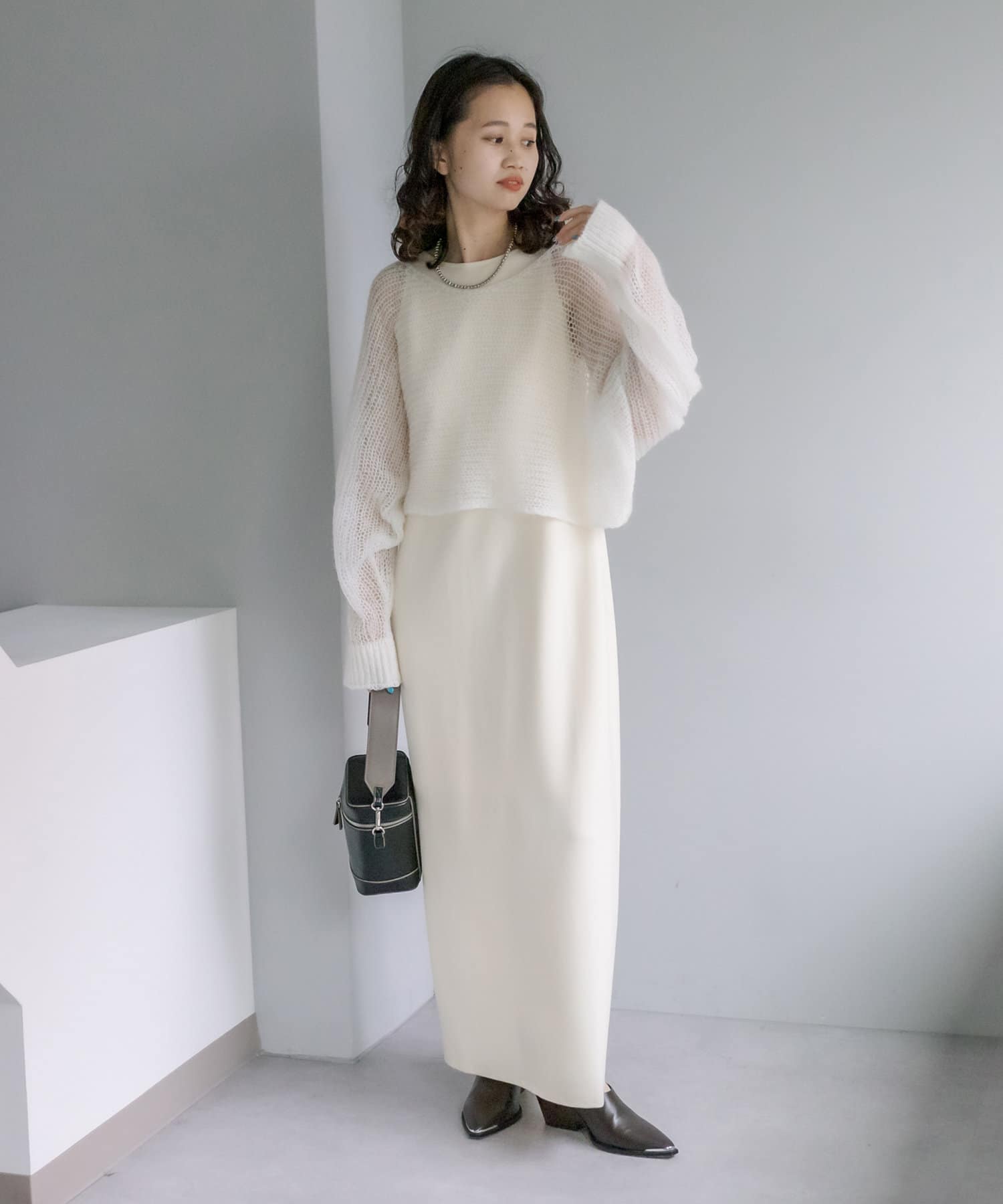 ・メッシュニットやシアーニットをレイヤードしたスタイリングするのもオススメ!