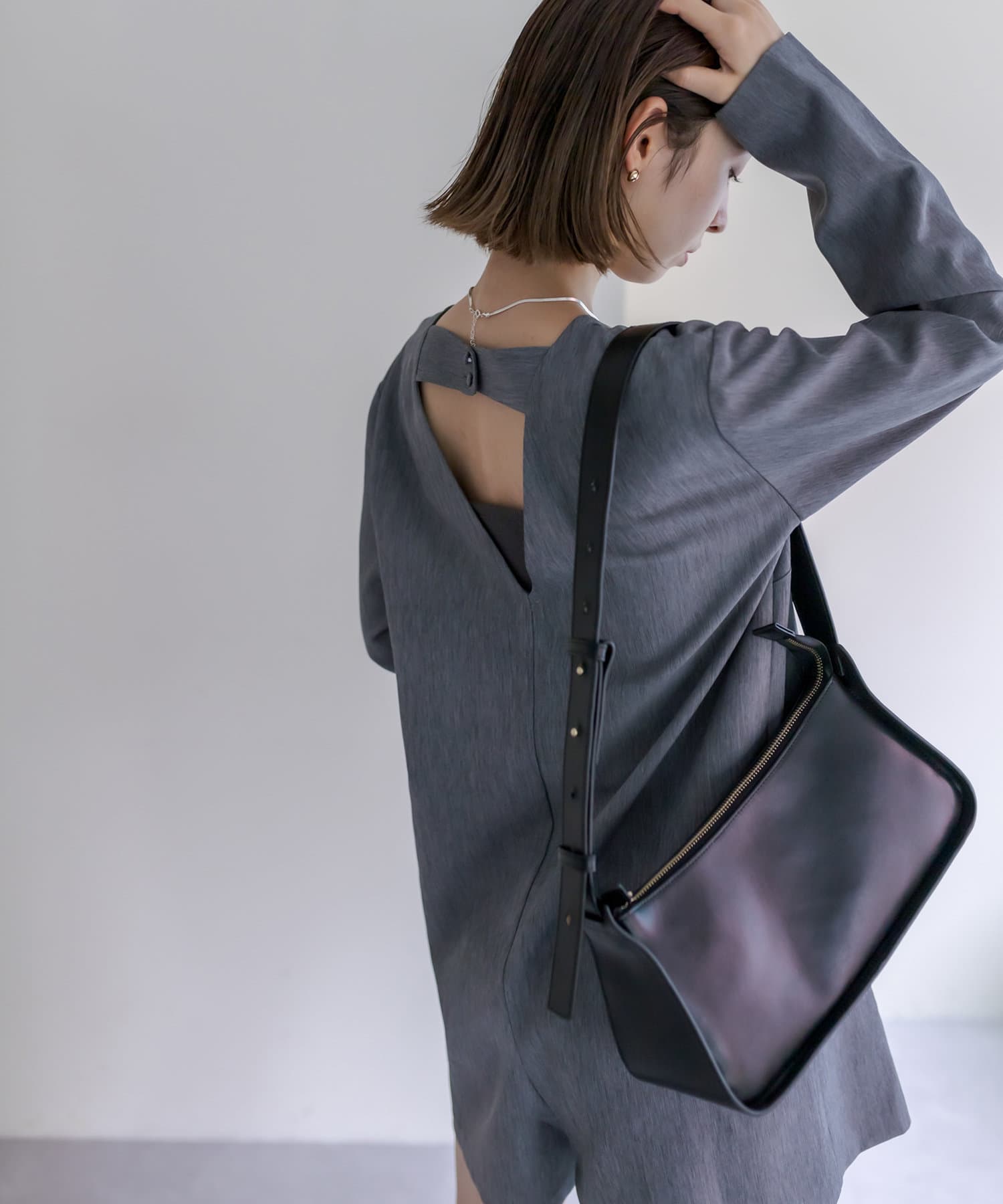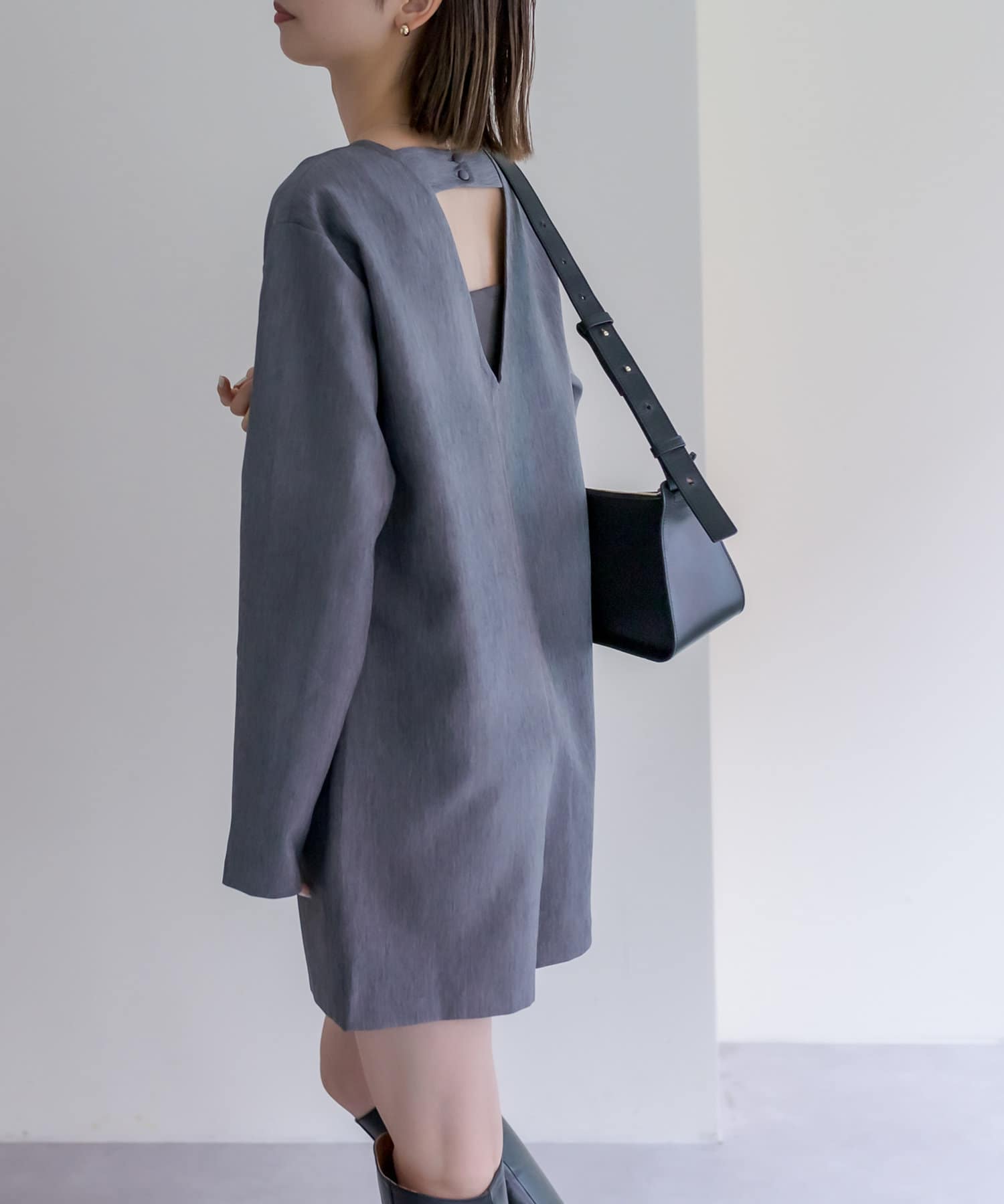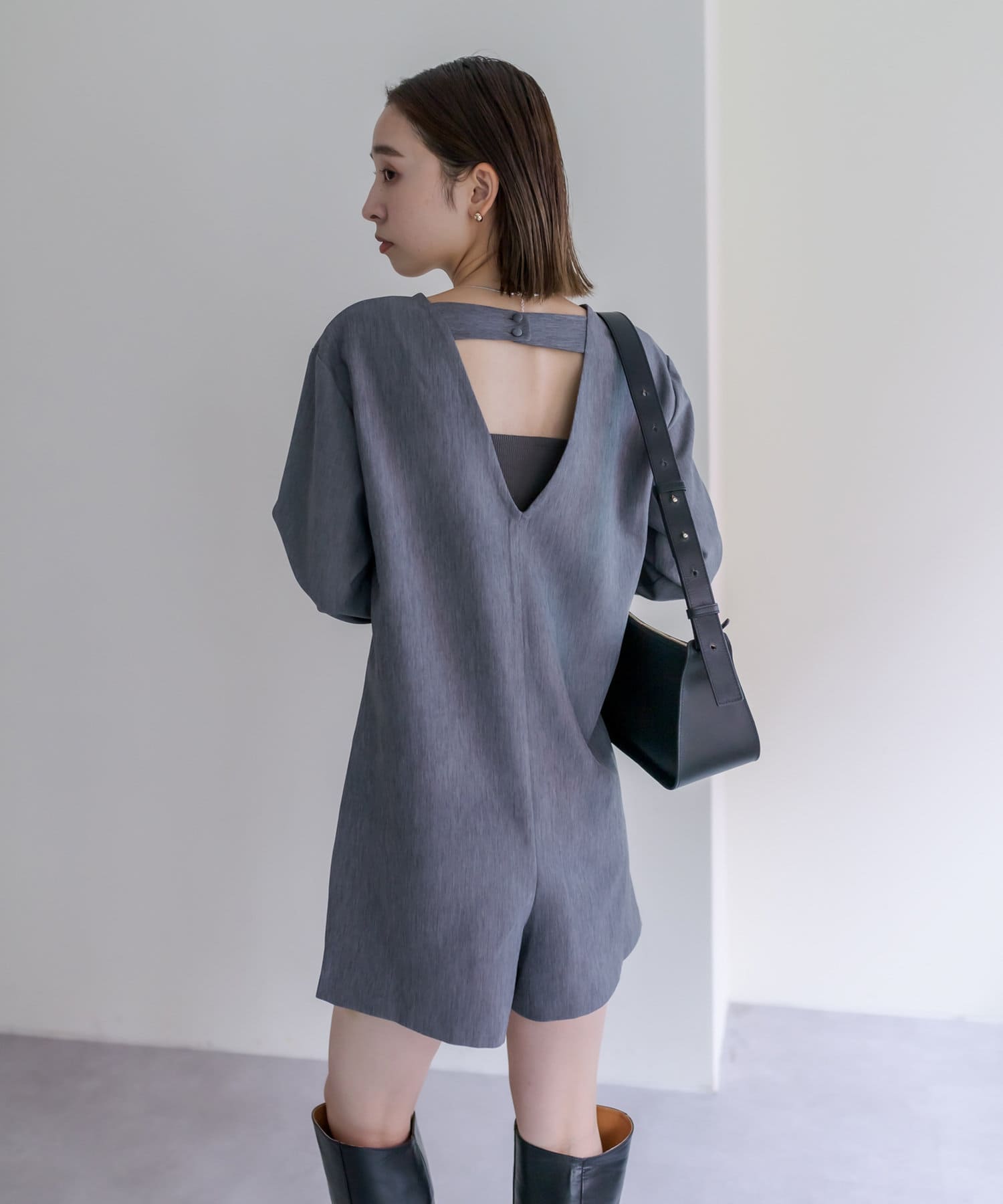 ・ミニ丈でトレンド感を出しつつ、さらっと上品な素材とデザインが目を惹くオールインワン。