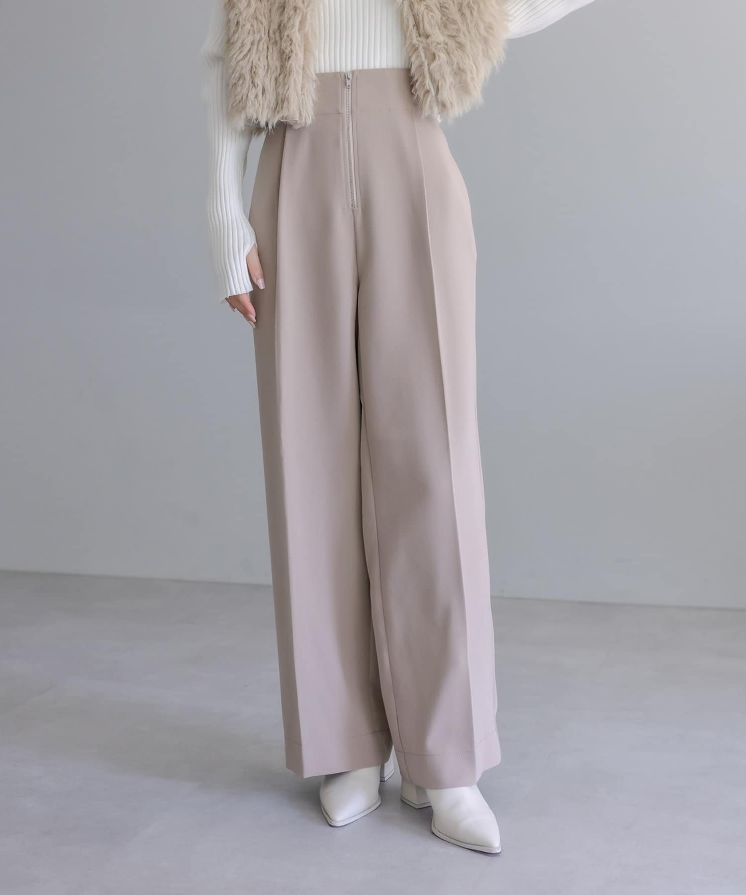 ・ストレートに落ちるシルエットとハイウエストデザインでスタイルアップ効果◎