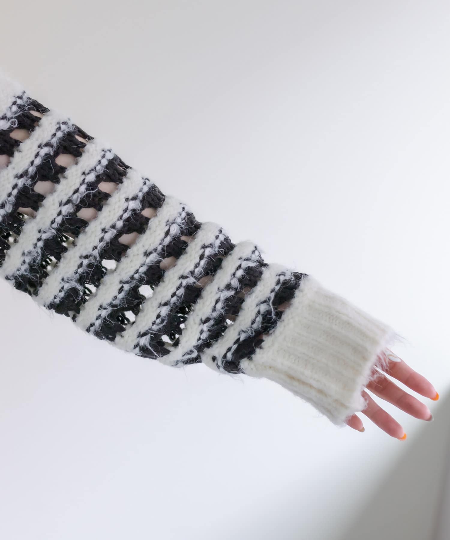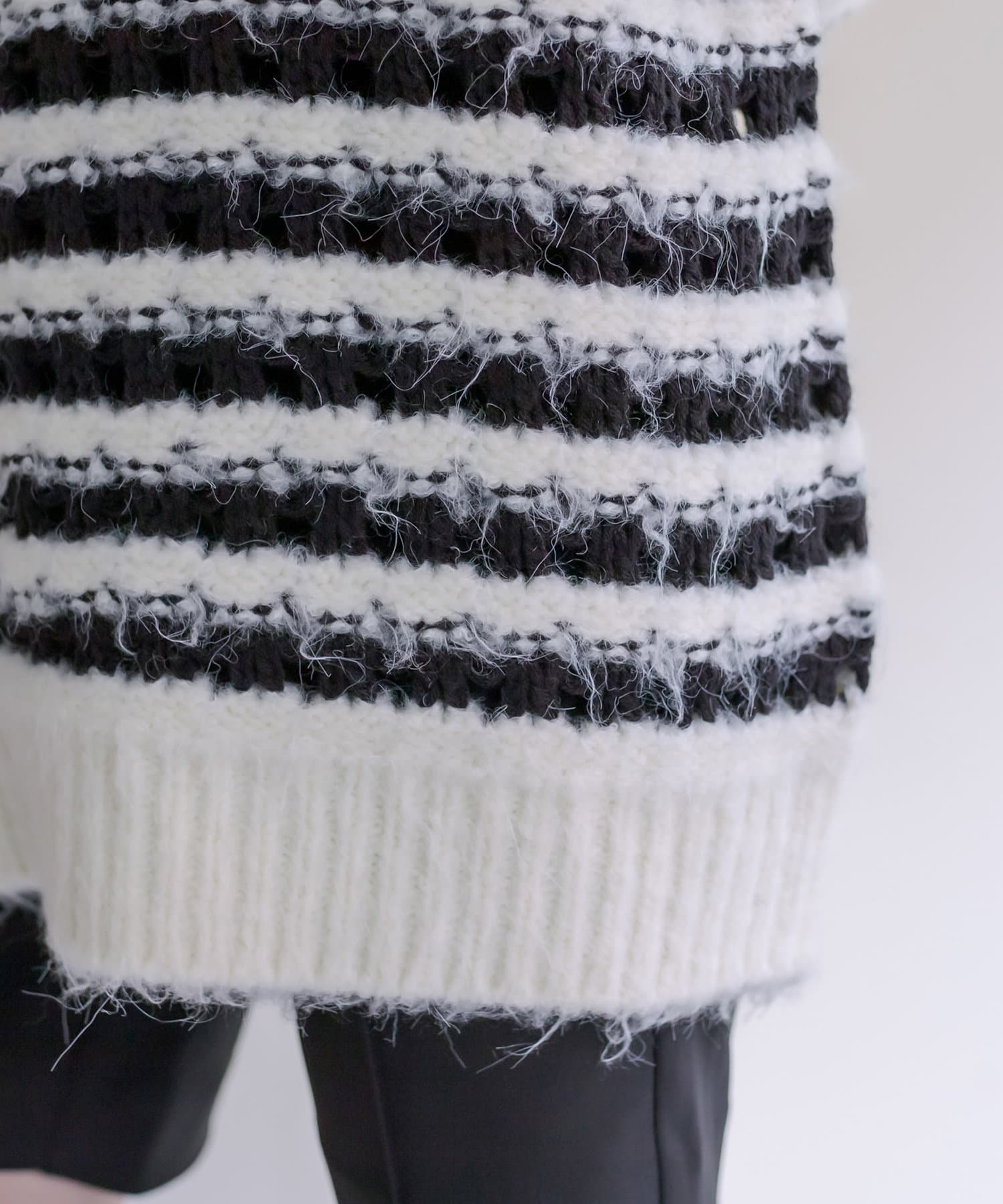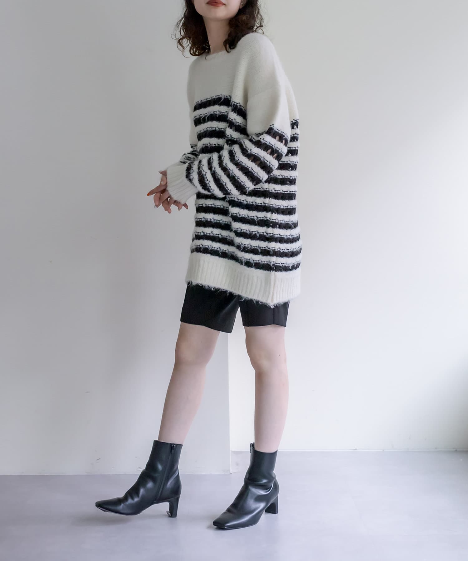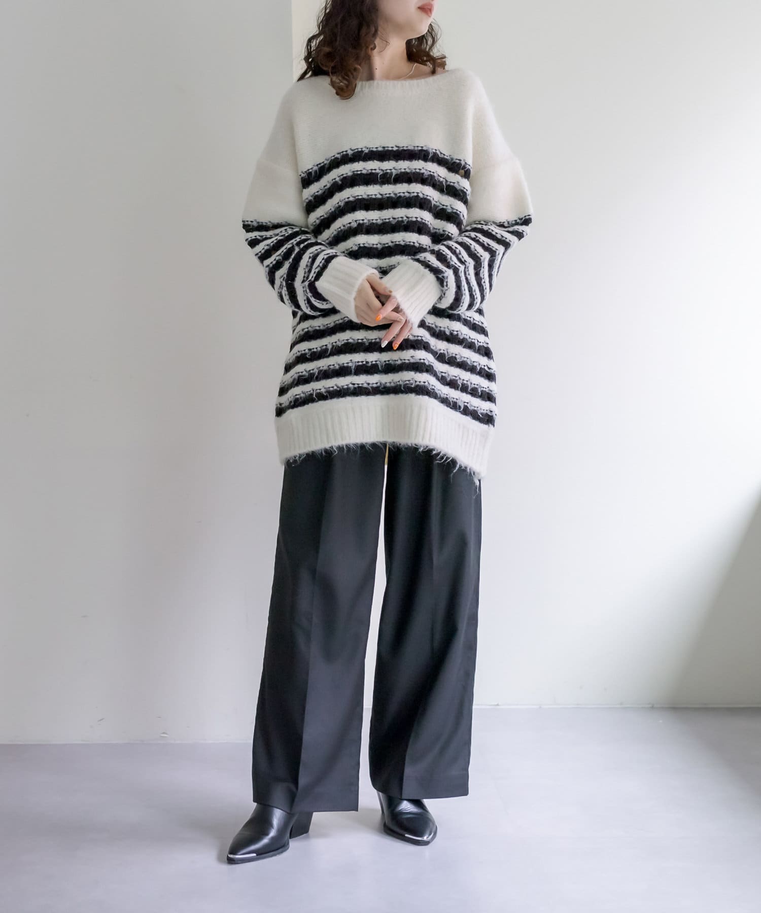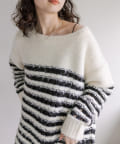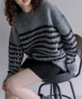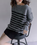 ・1枚でスタイリングの主役に決まるボーダー柄のニット。