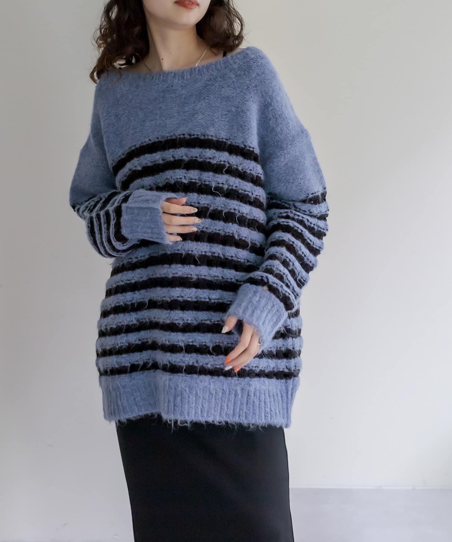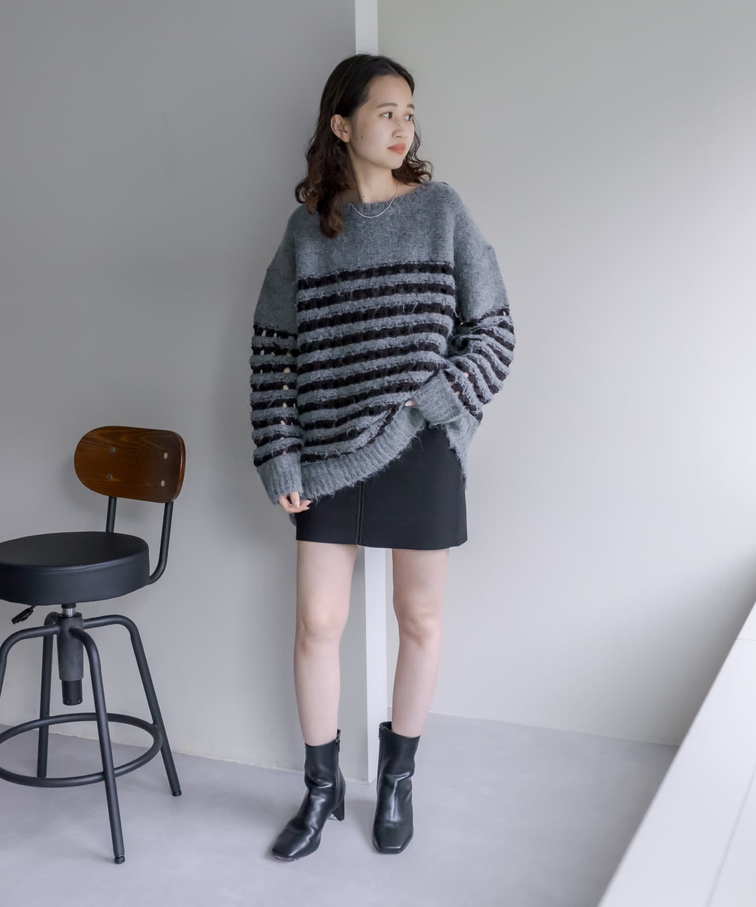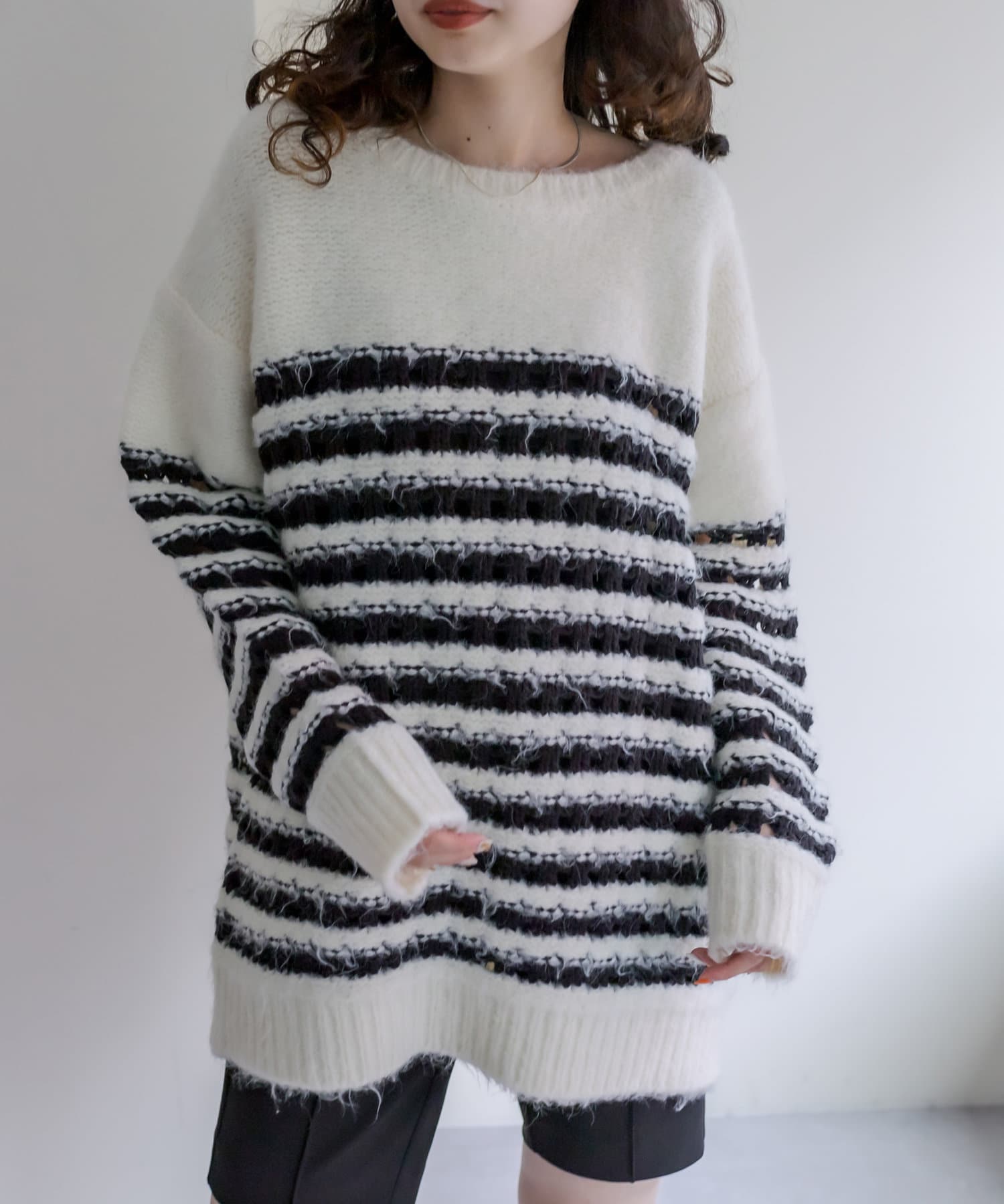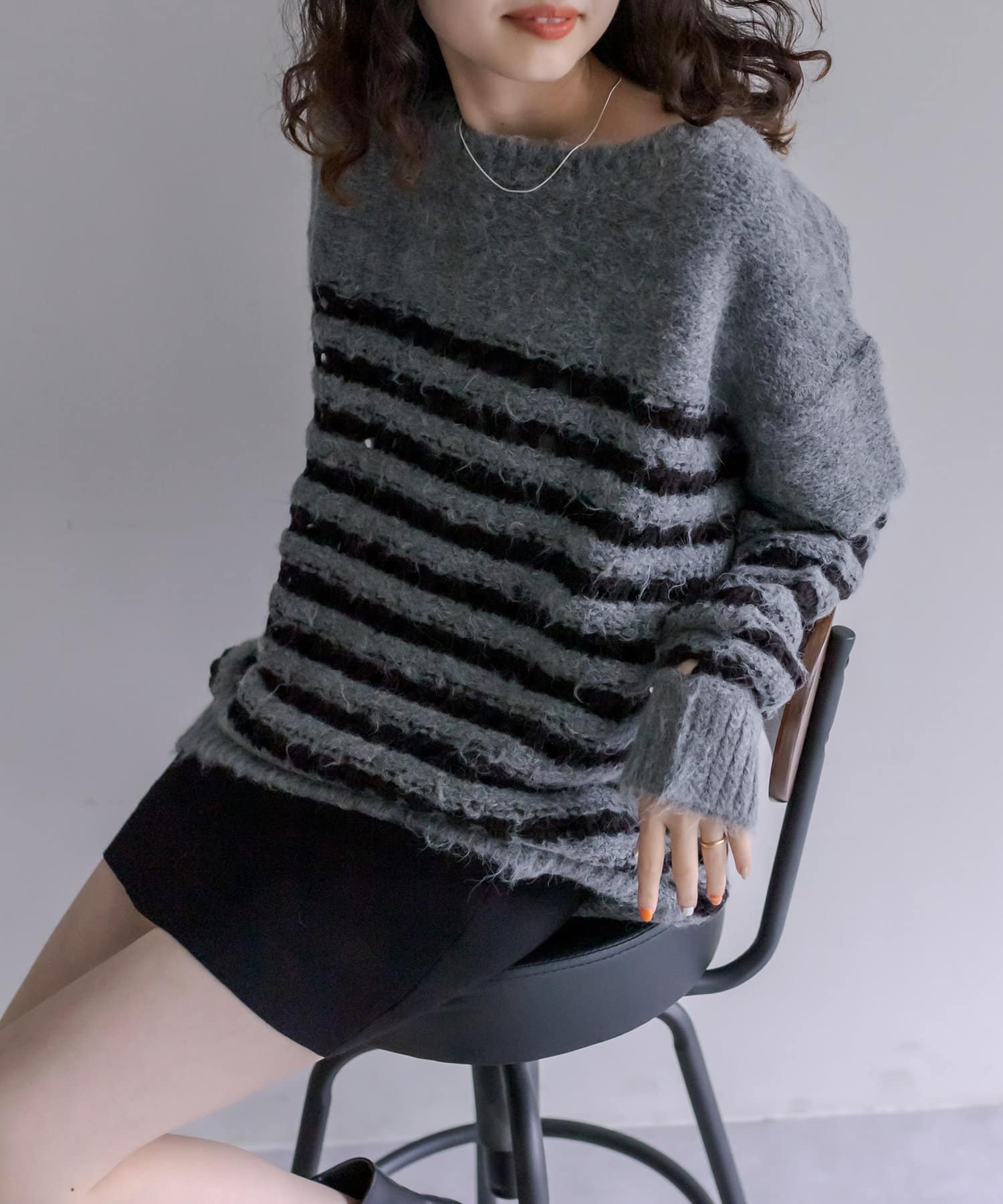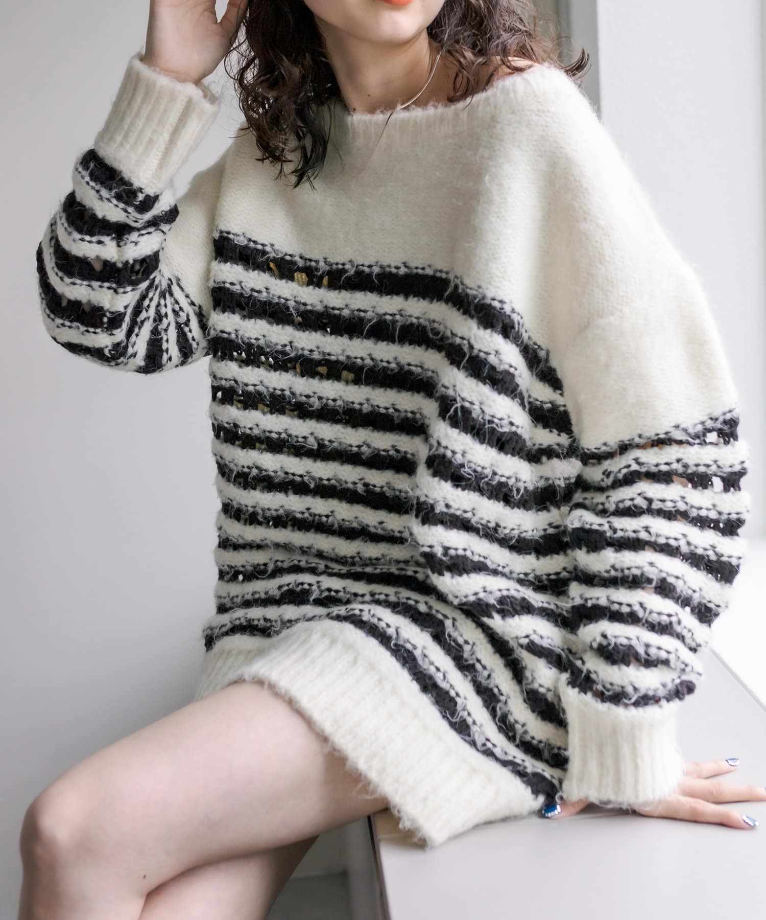 ボーダー柄が目を惹くゆるっとしたオーバーニットが登場!