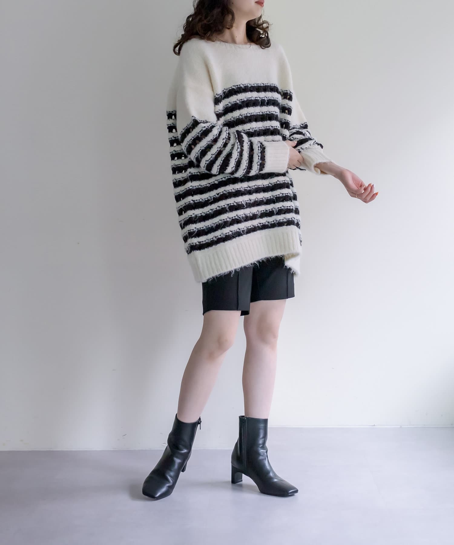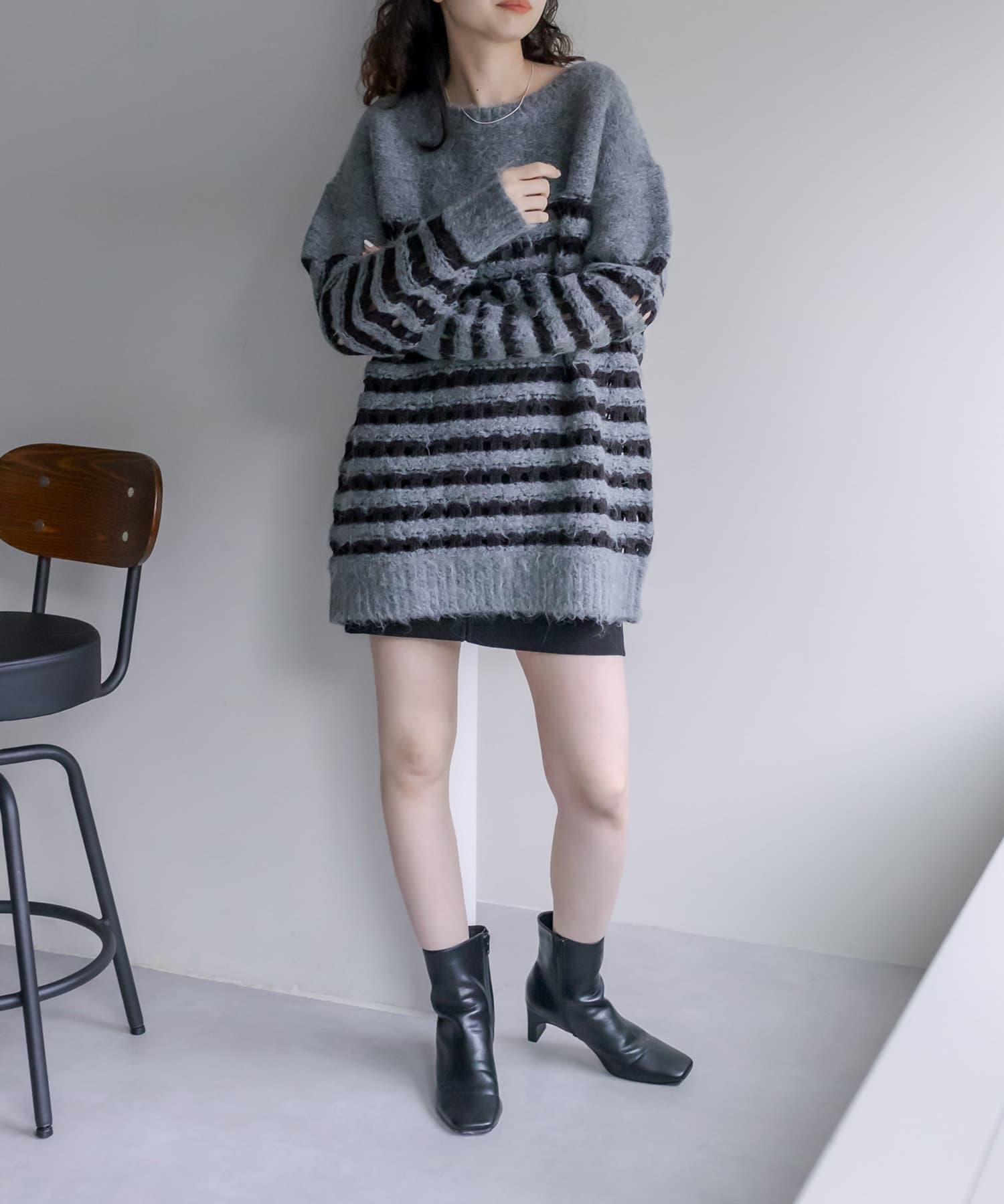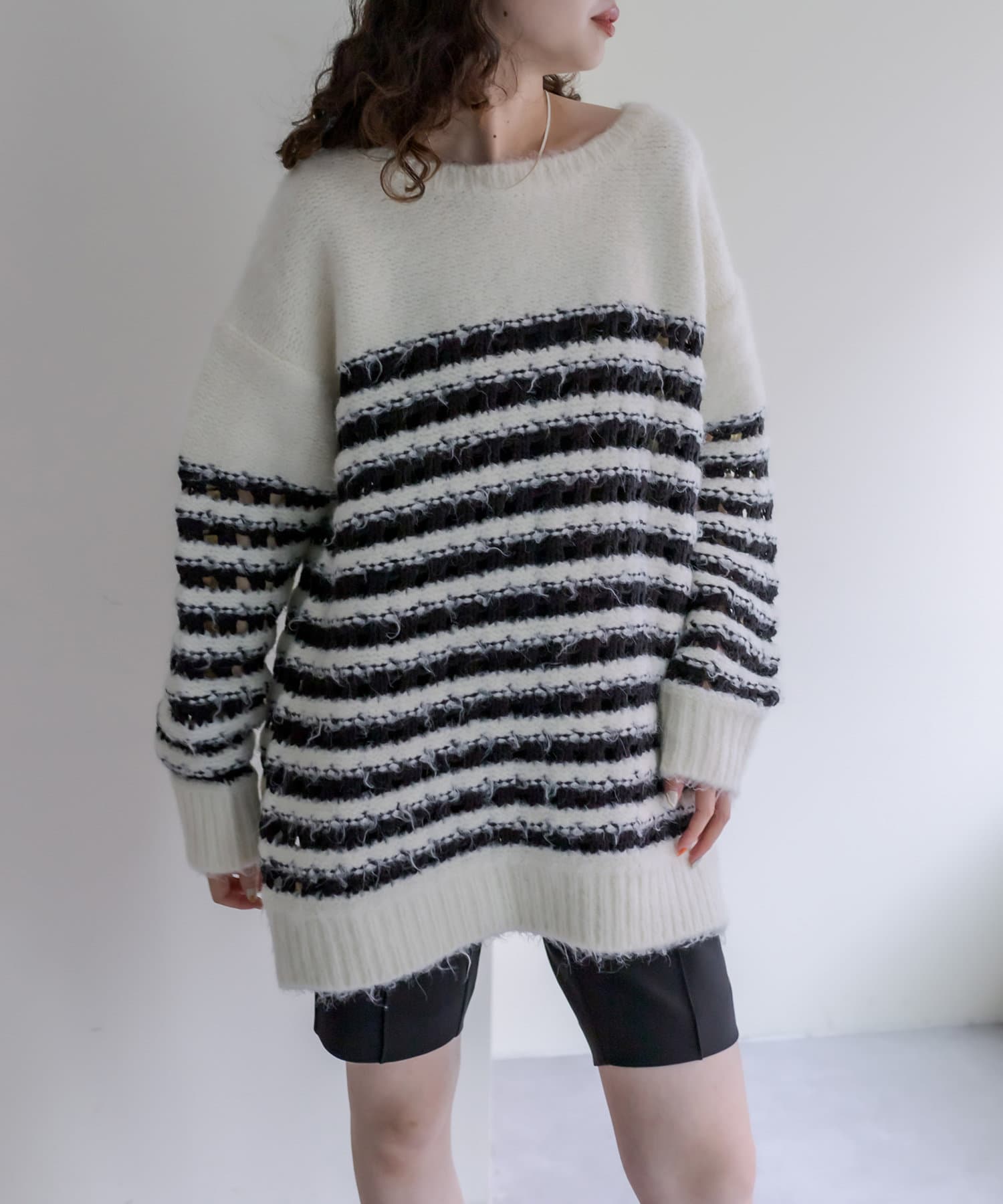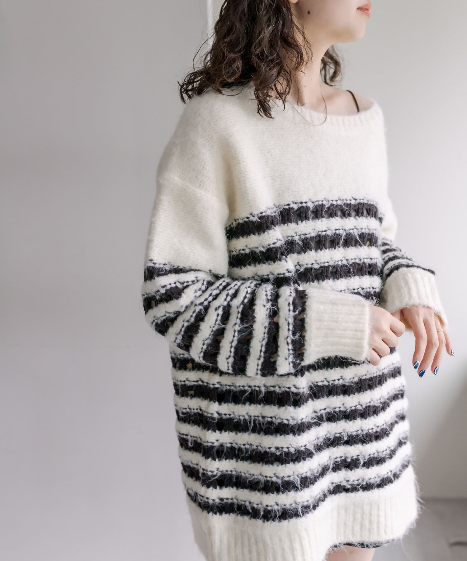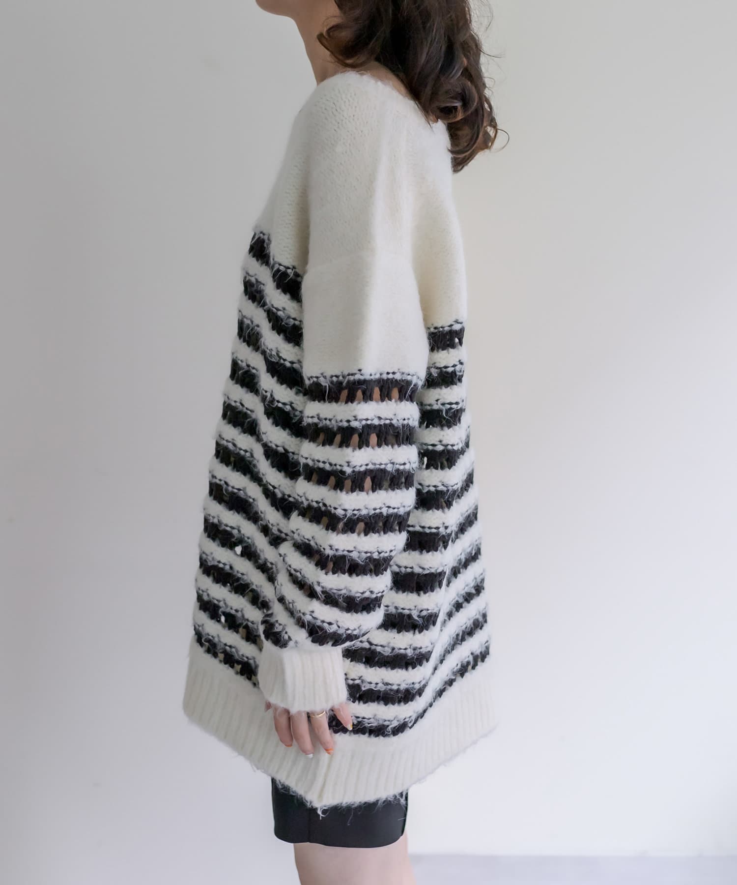 ボーダー柄が目を惹くゆるっとしたオーバーニットが登場!