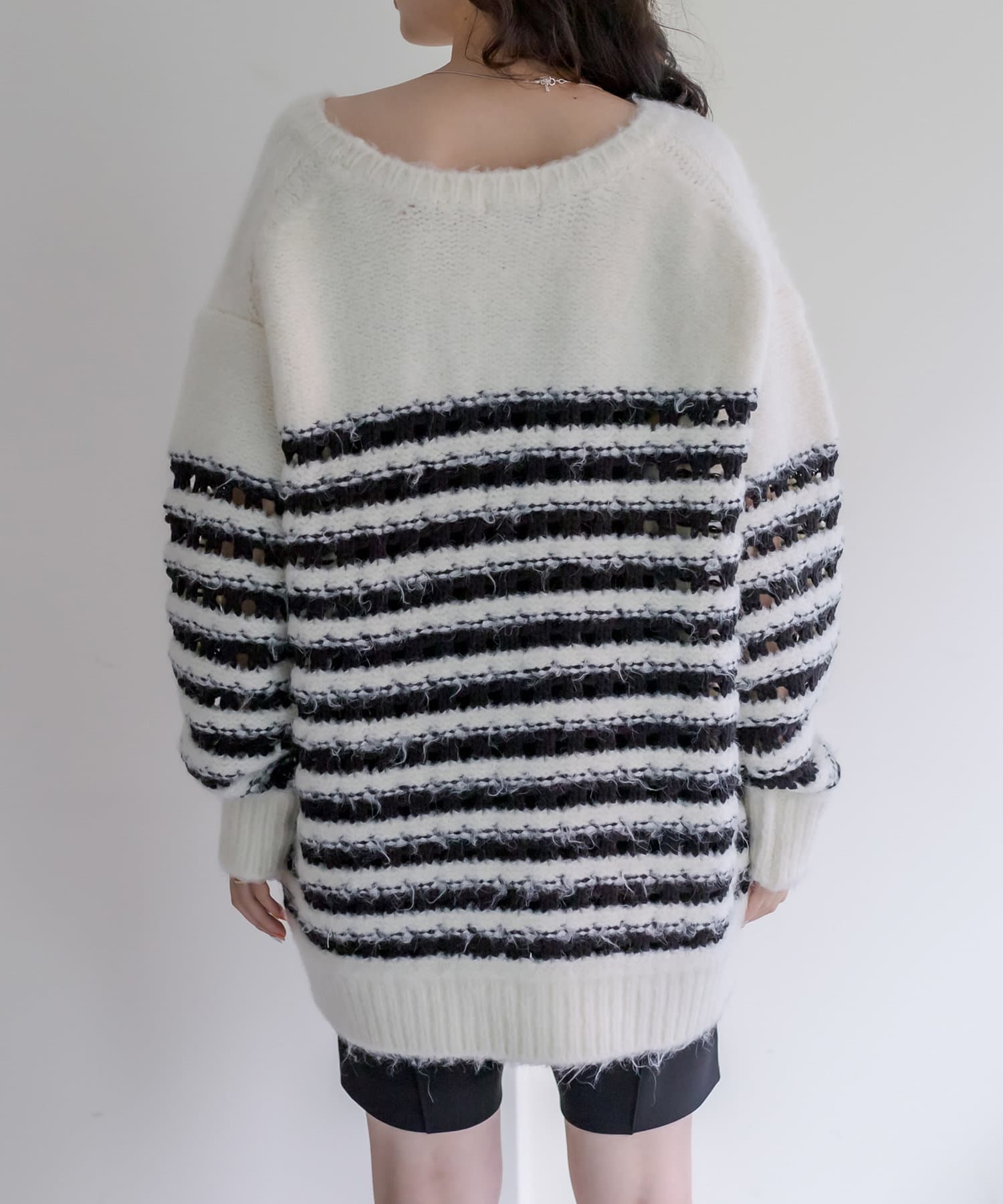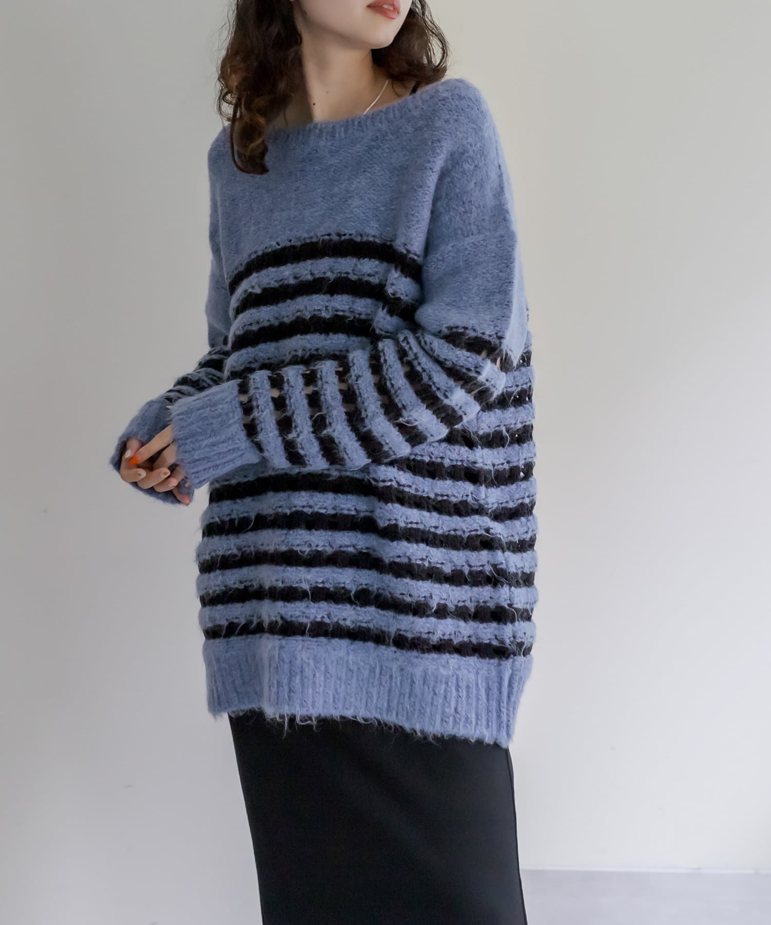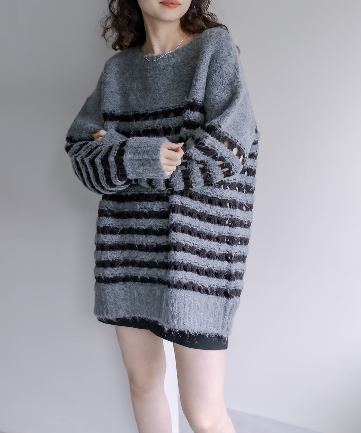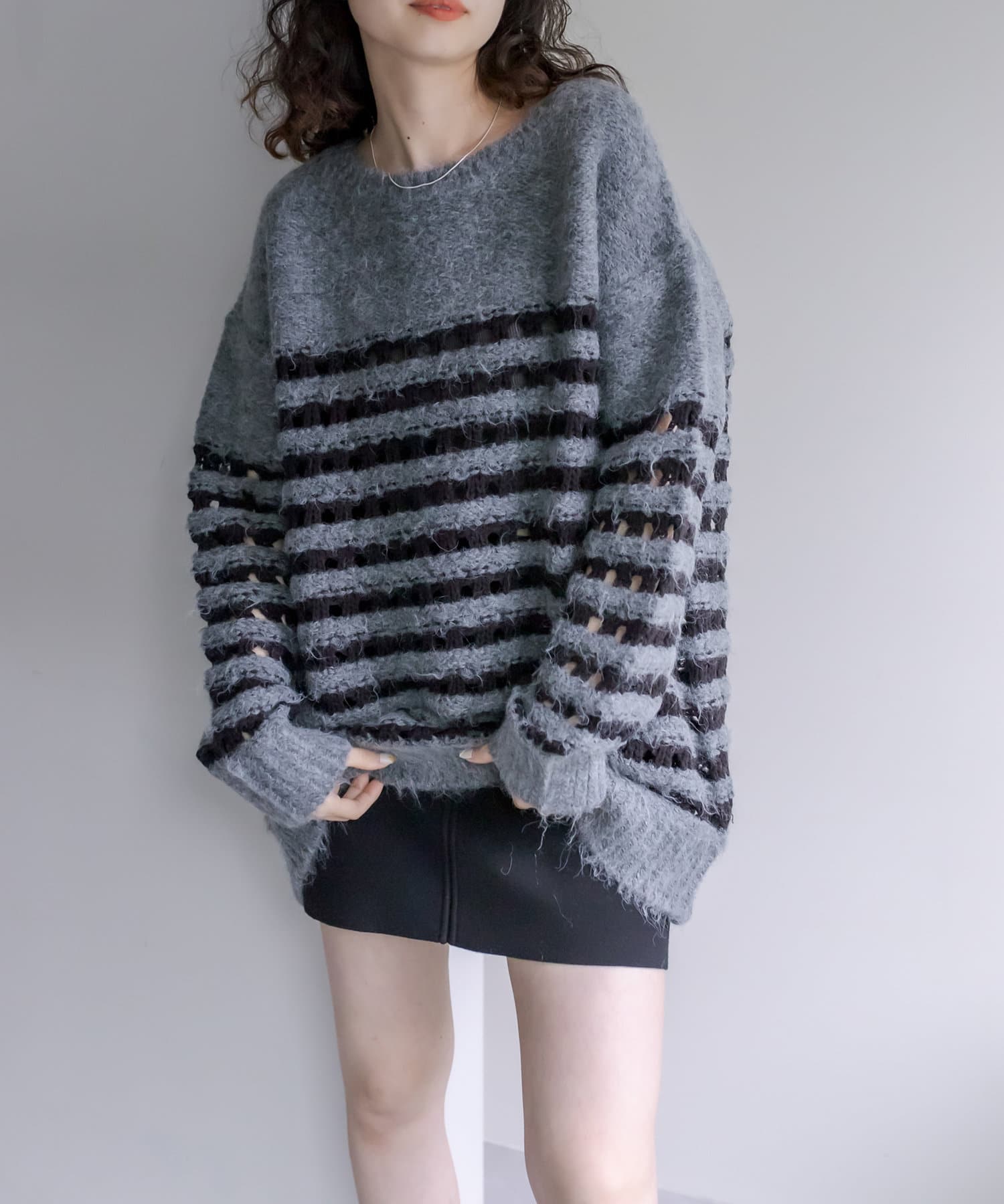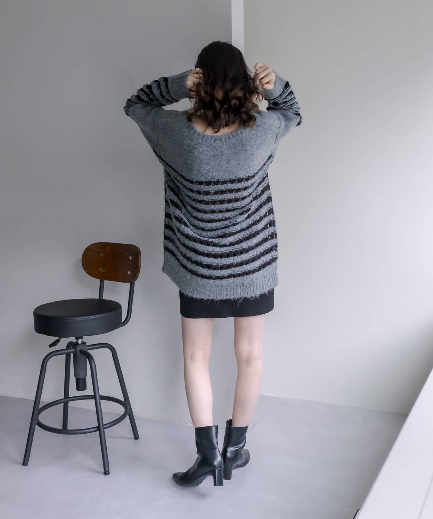 ボーダー柄が目を惹くゆるっとしたオーバーニットが登場!