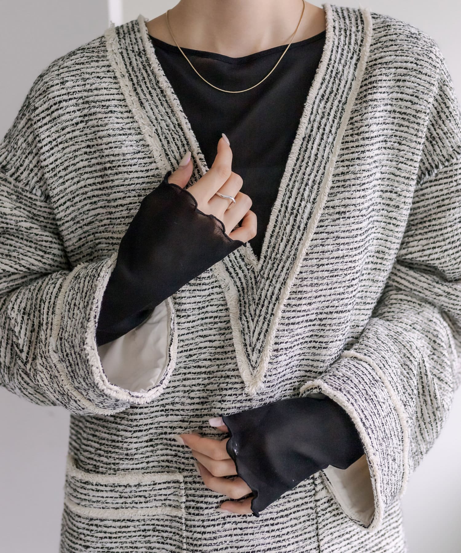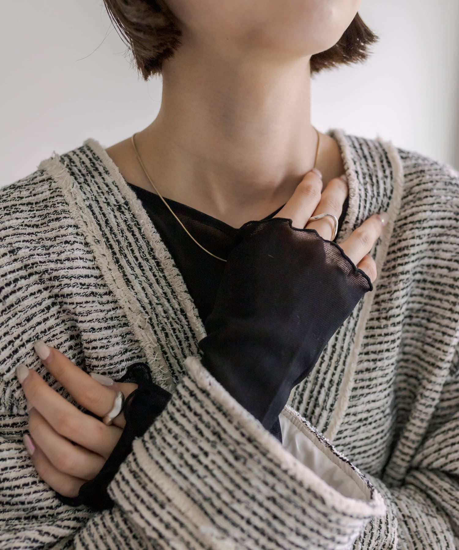 ・透け感のあるトップスなのでカップ付きのインナーと合わせていただくのがおすすめです。