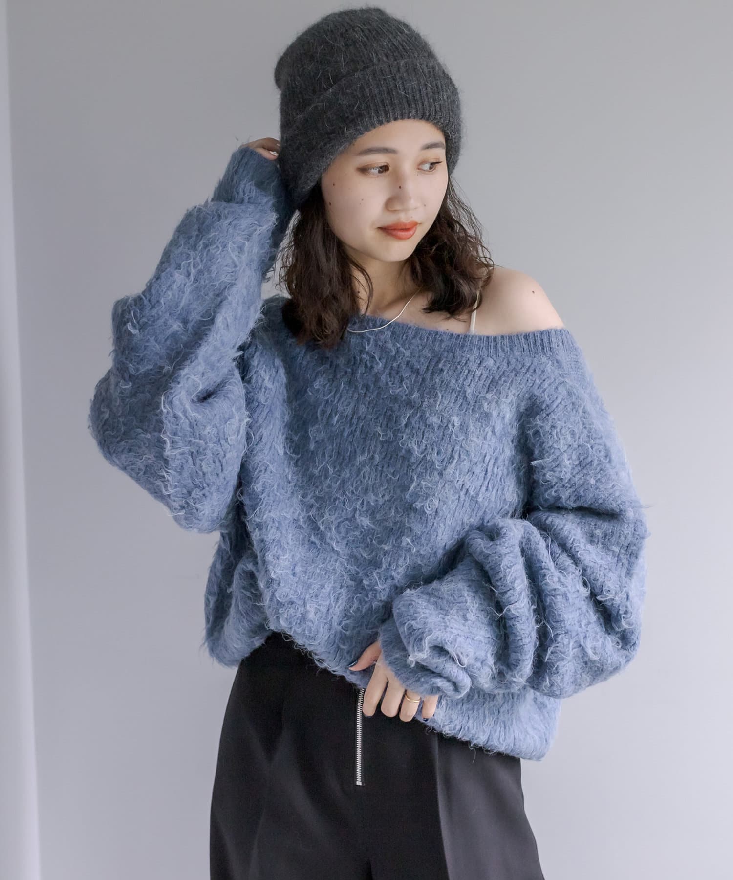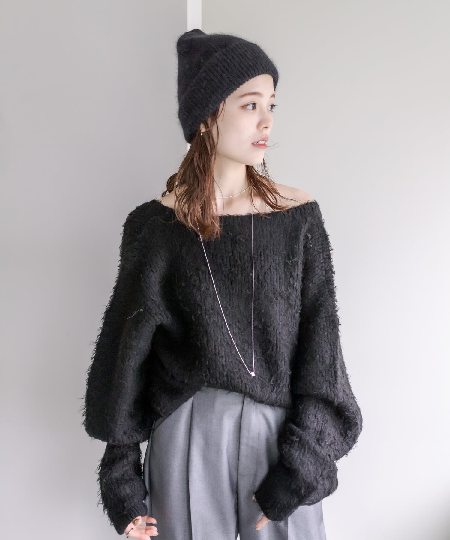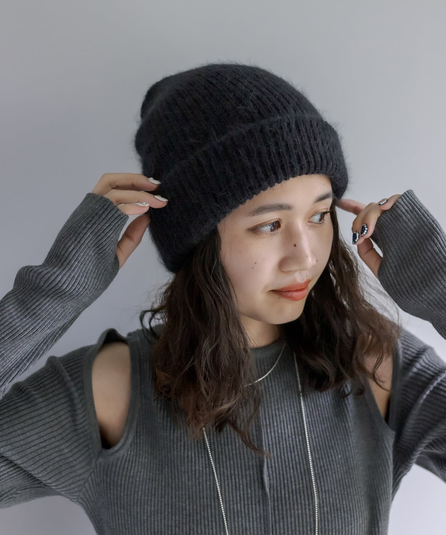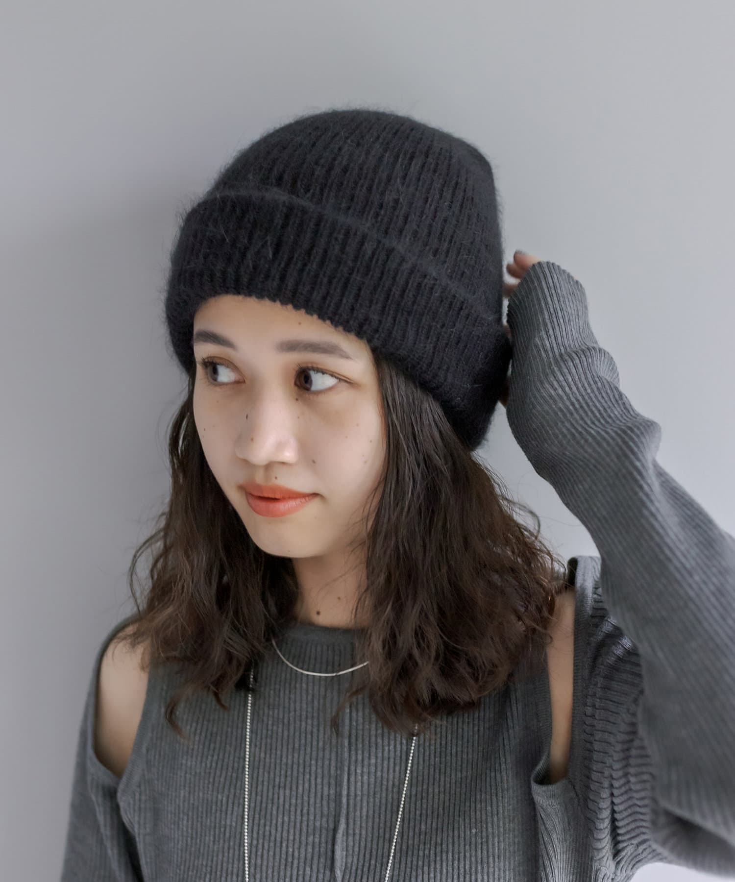 ・フワフワ素材でランダムな長さの毛並みが他にはないポイントのニット帽。
