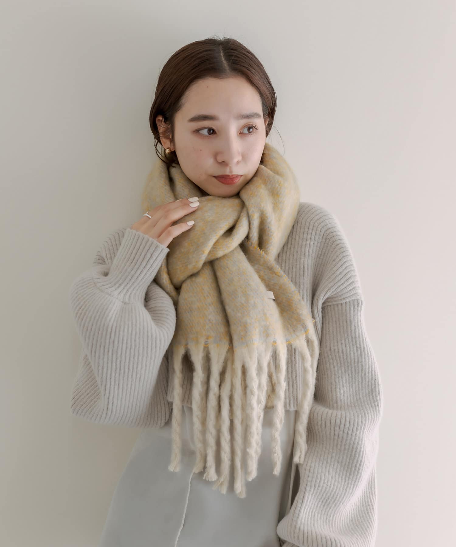 ミックス生地がポイントのストールが登場