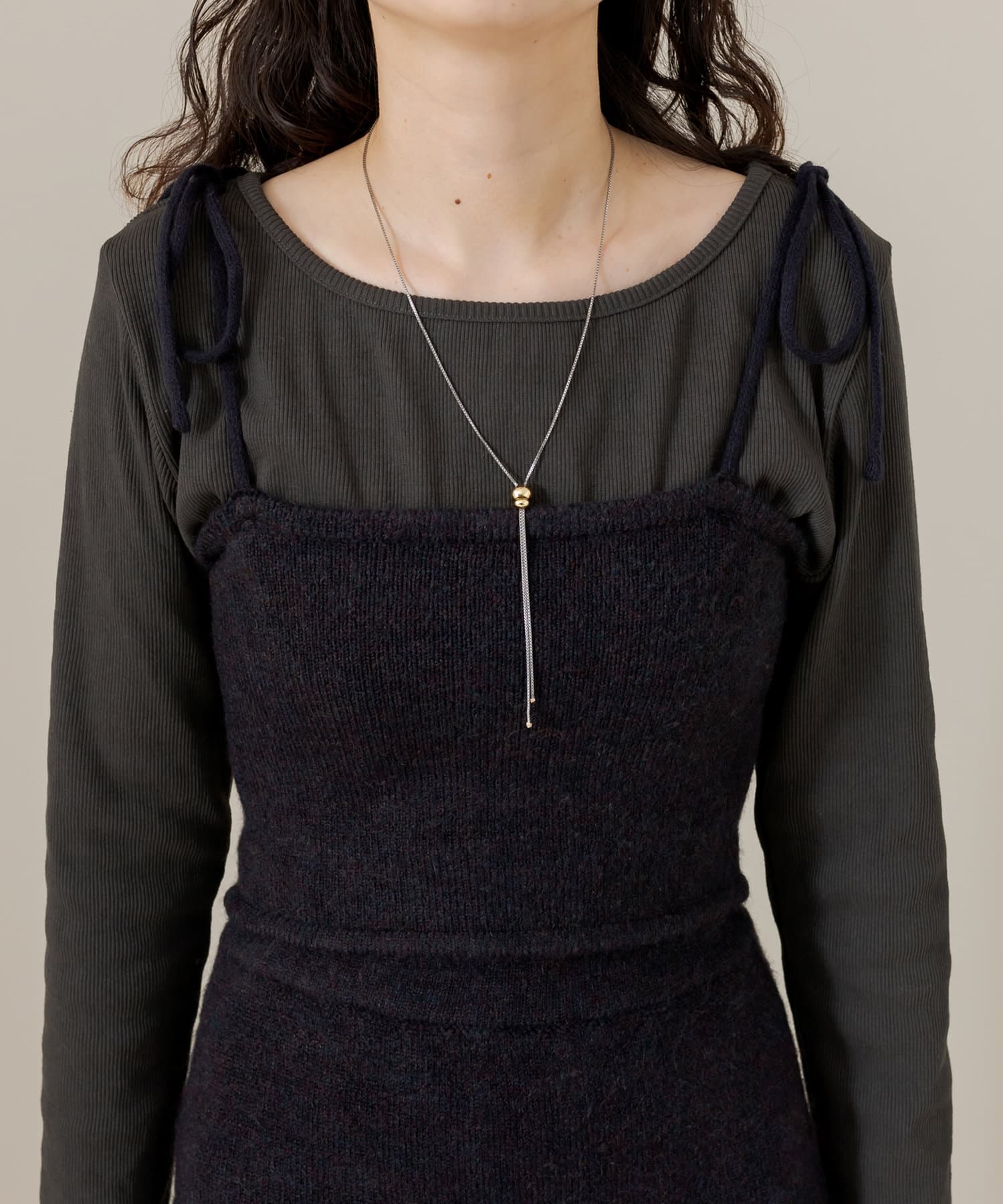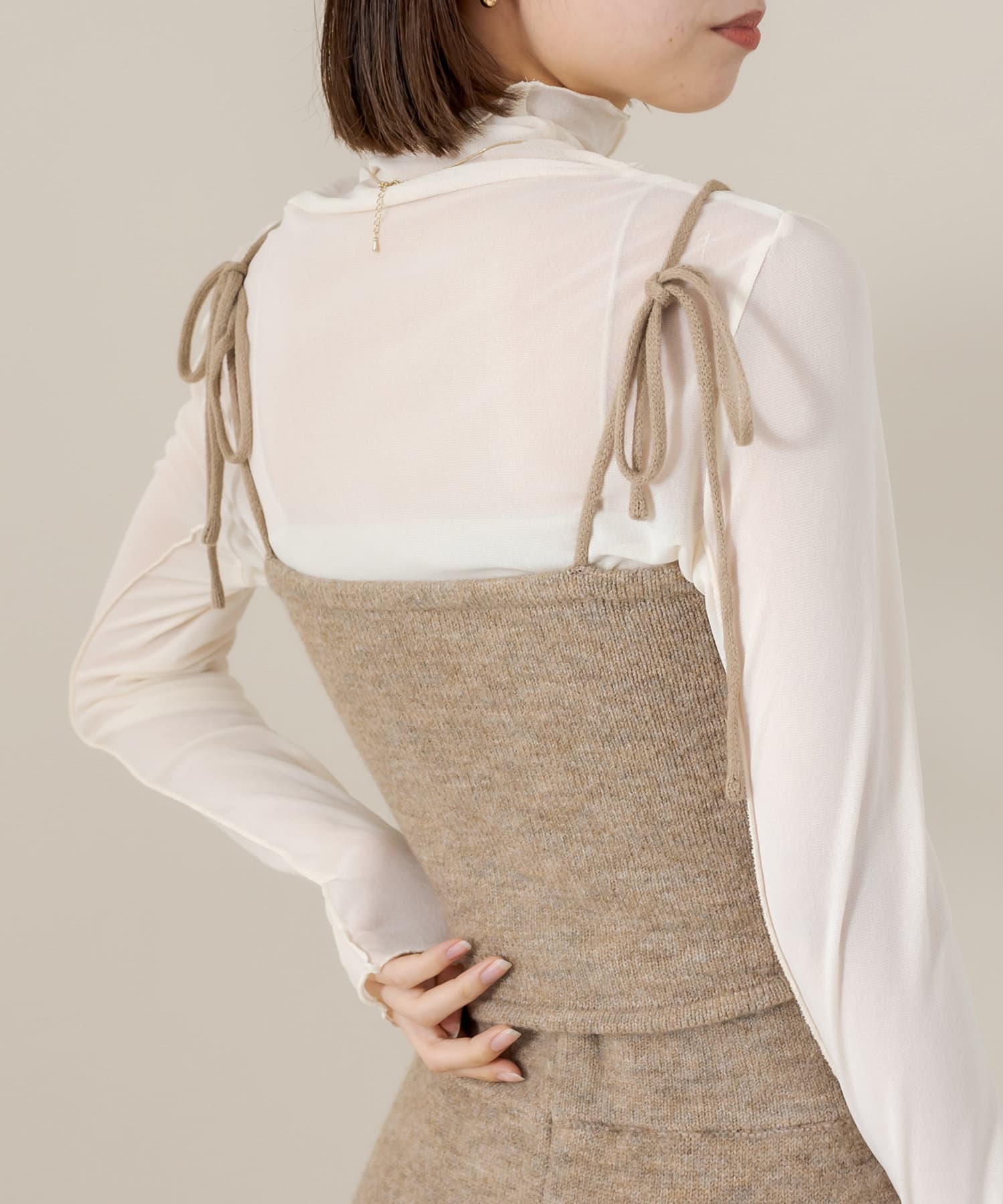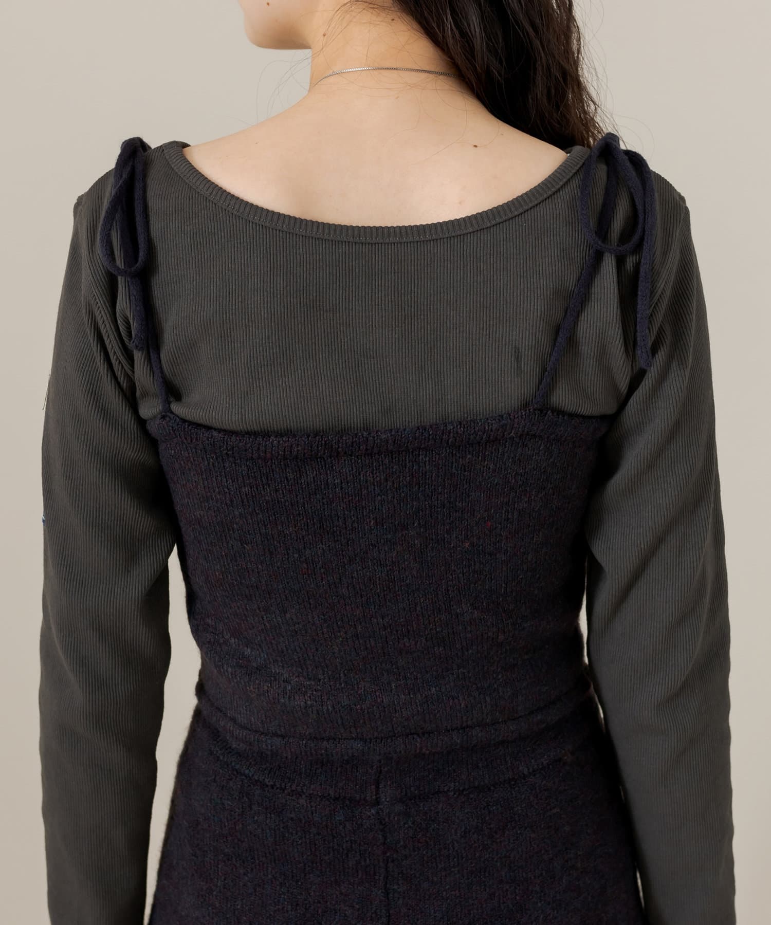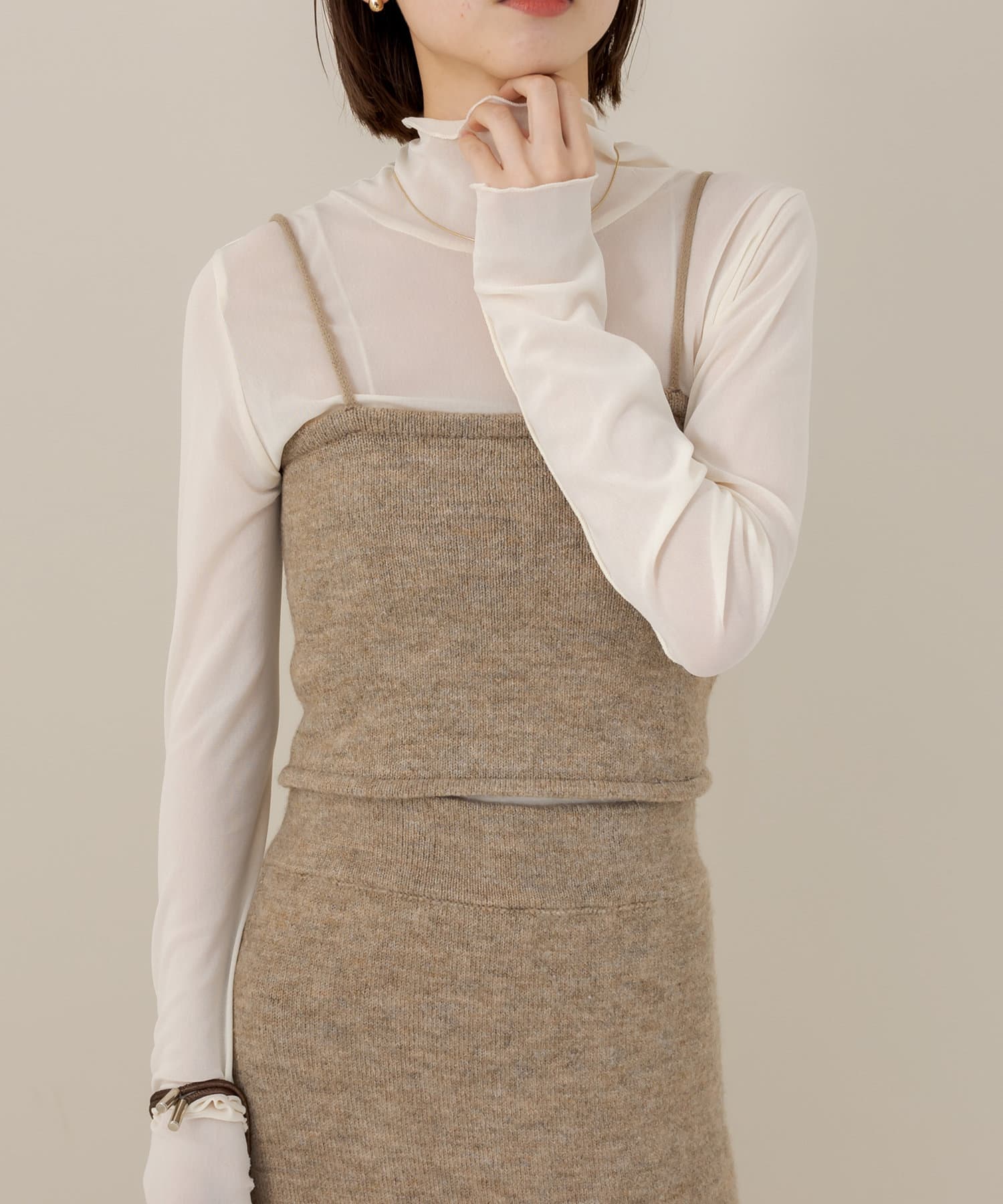 ・ニットビスチェは、タイトめなトップスやシャツと合わせていただくのもおすすめです。