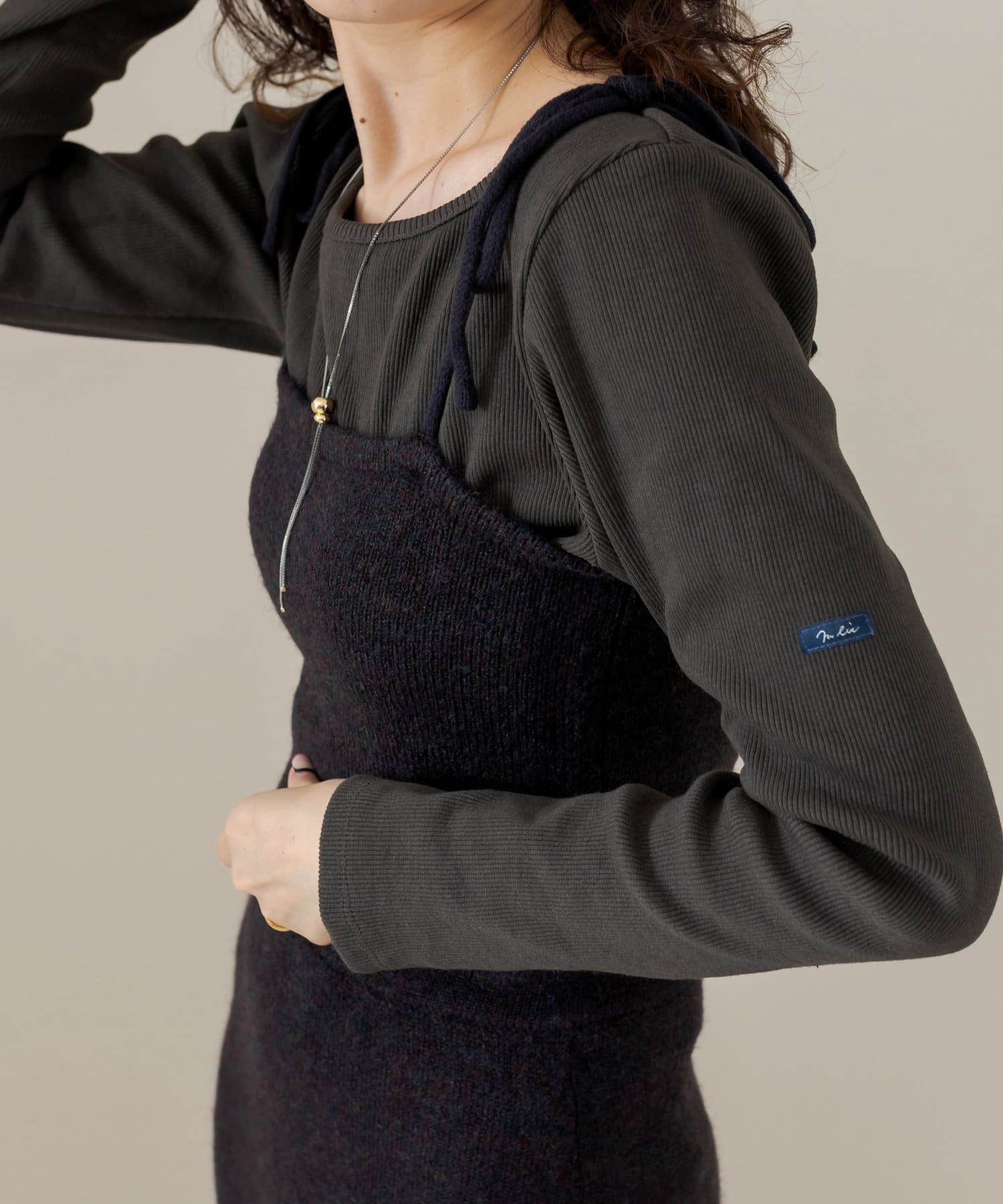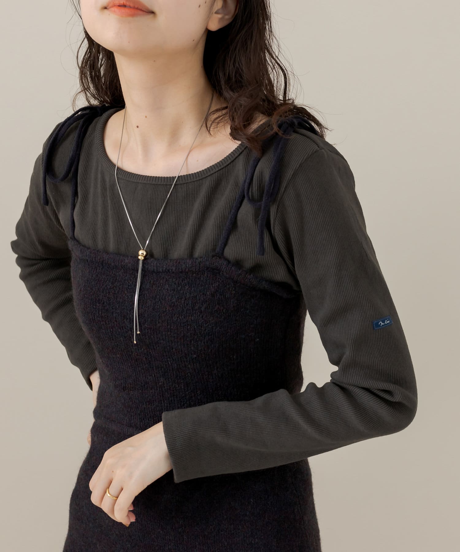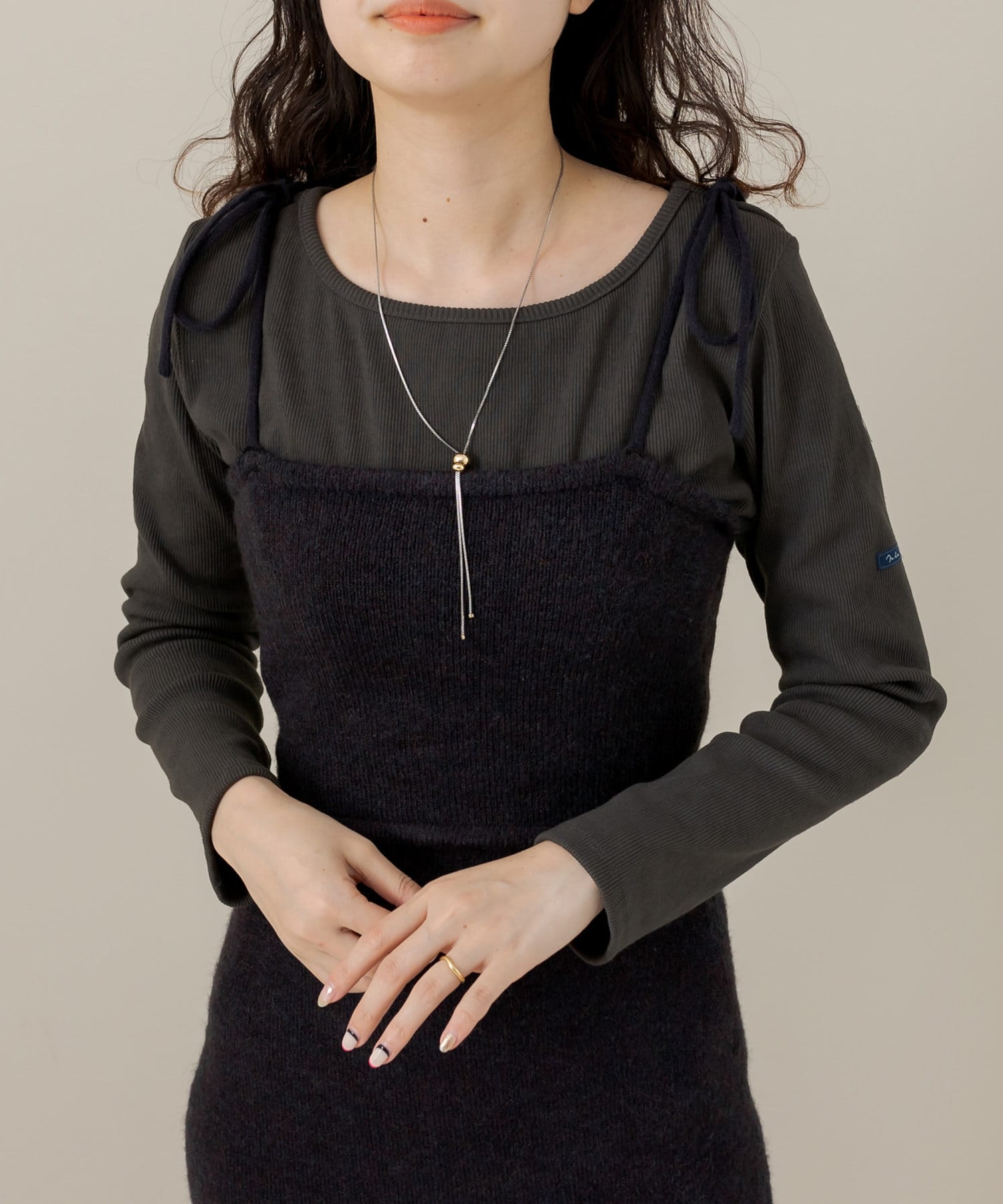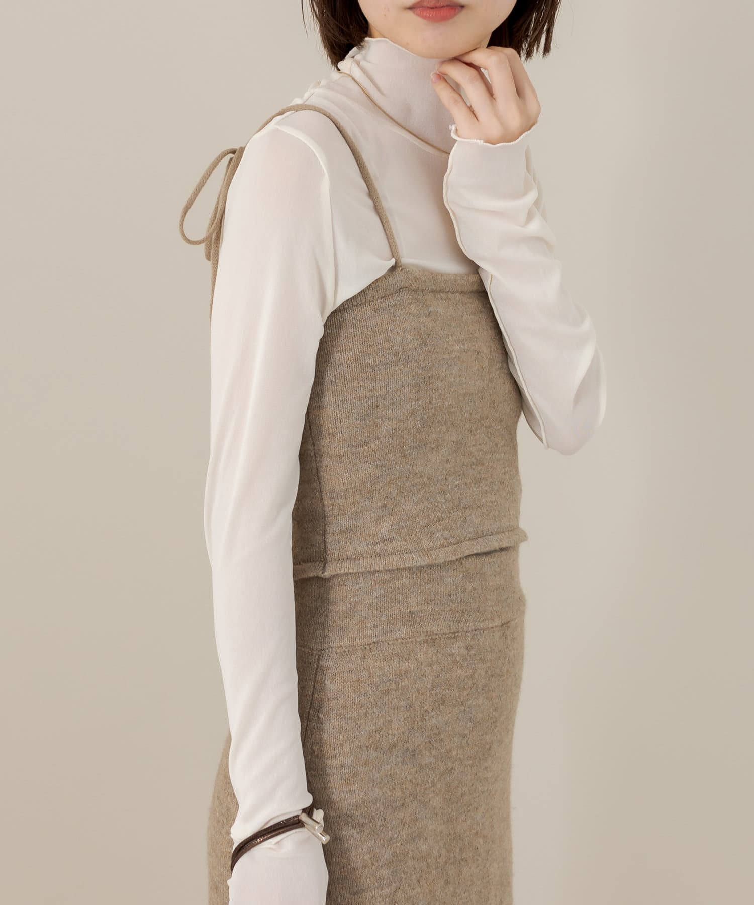・ニットビスチェは、タイトめなトップスやシャツと合わせていただくのもおすすめです。