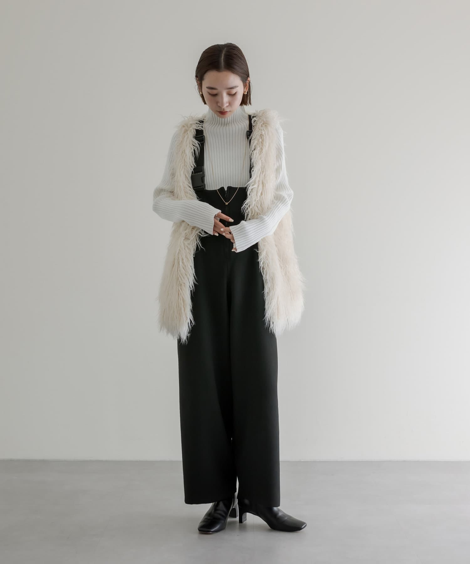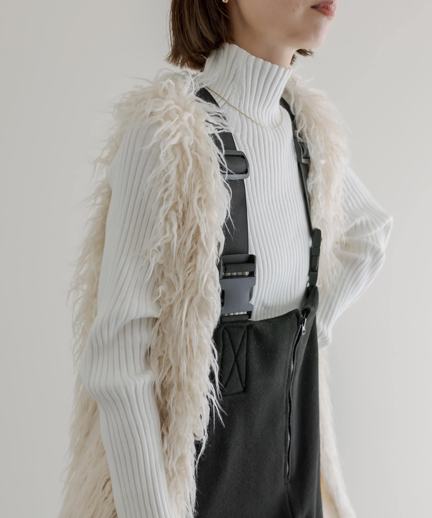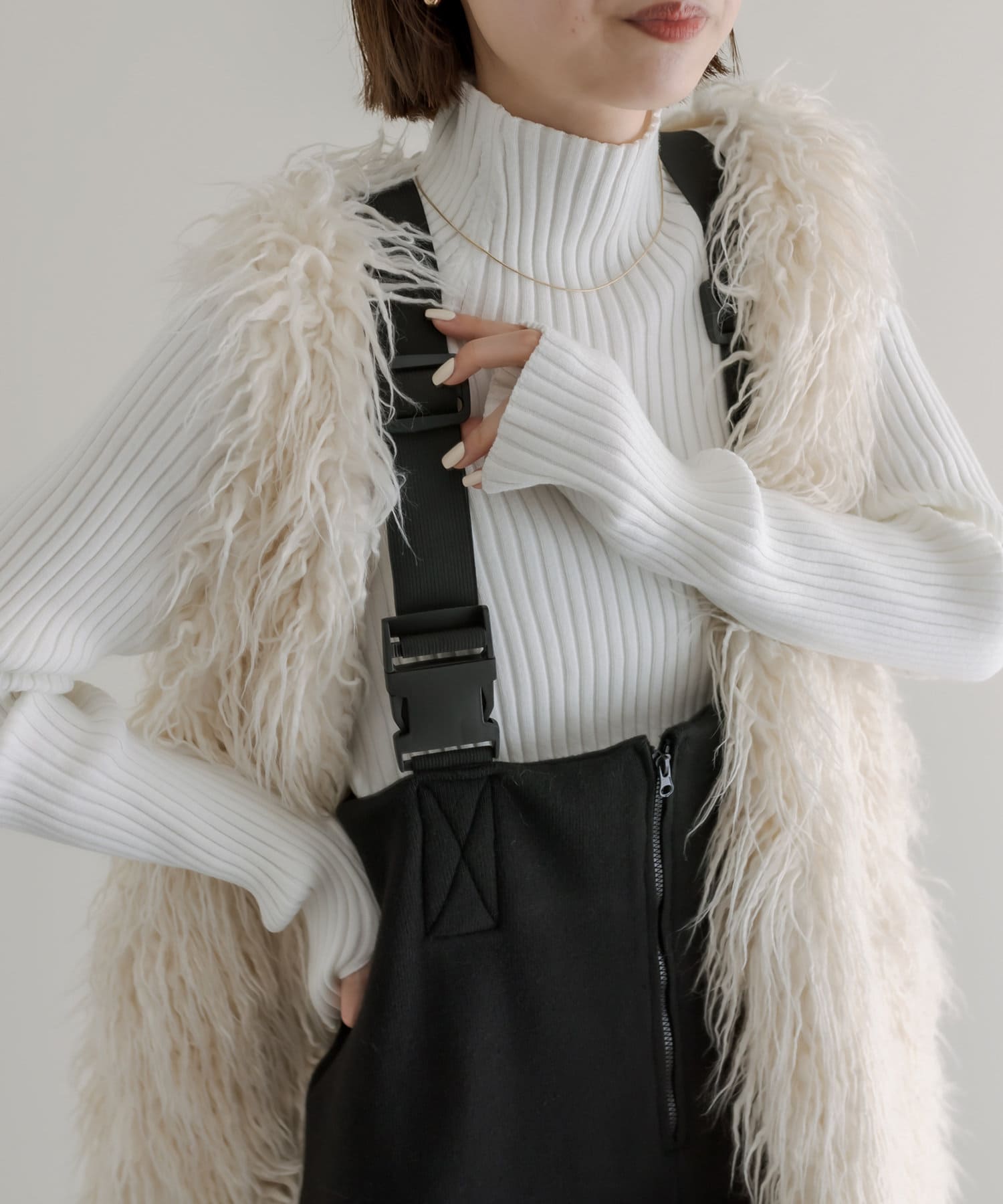 ・ハイネックニットやシアーニット等、様々なトップスとレイヤードしていただけます。