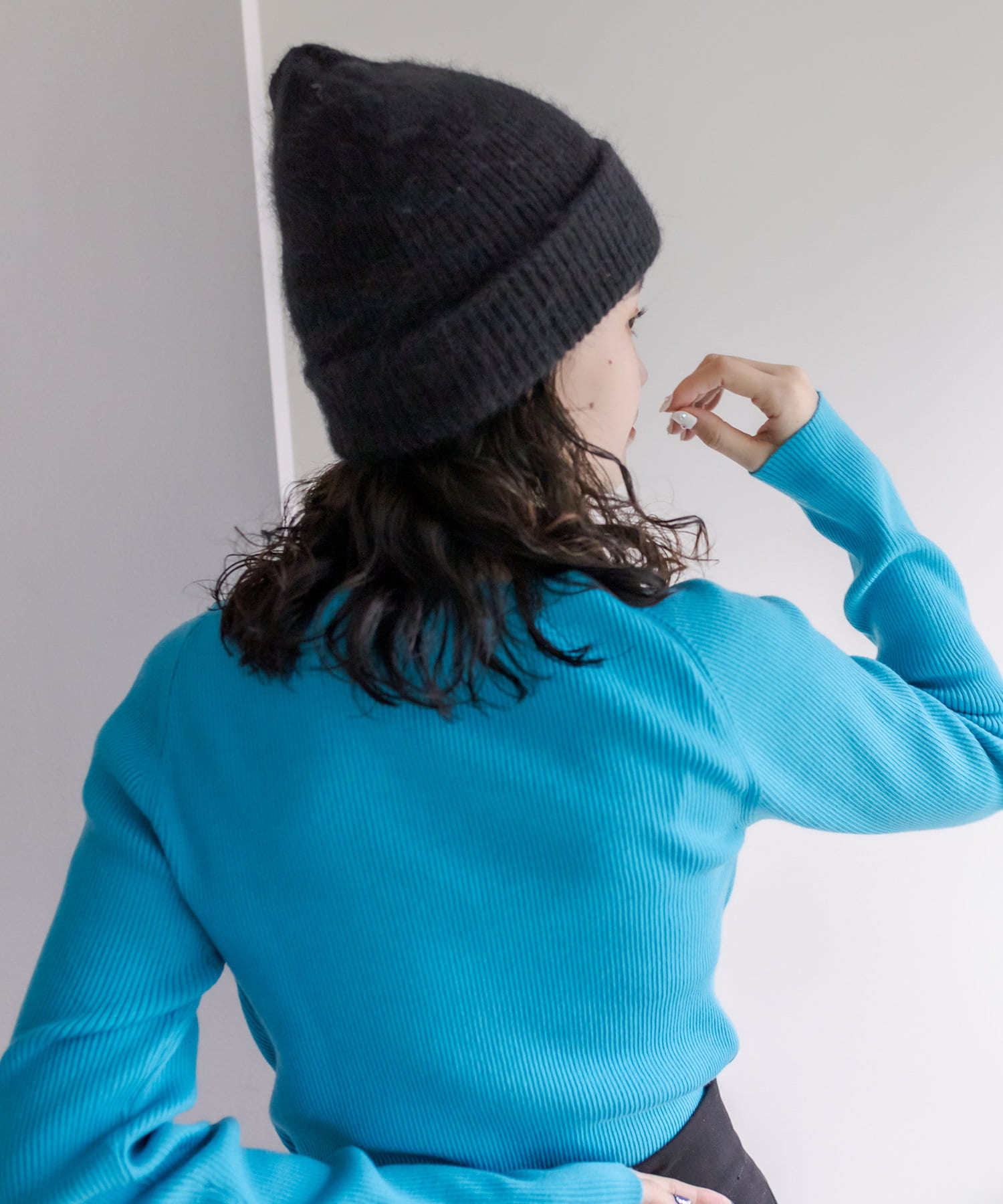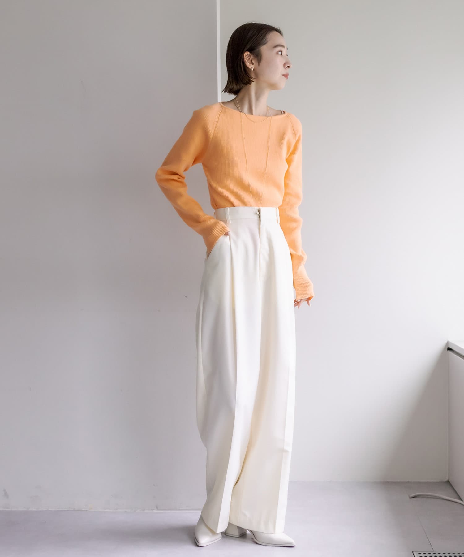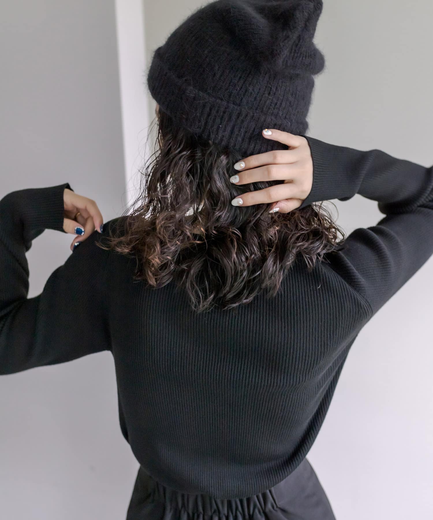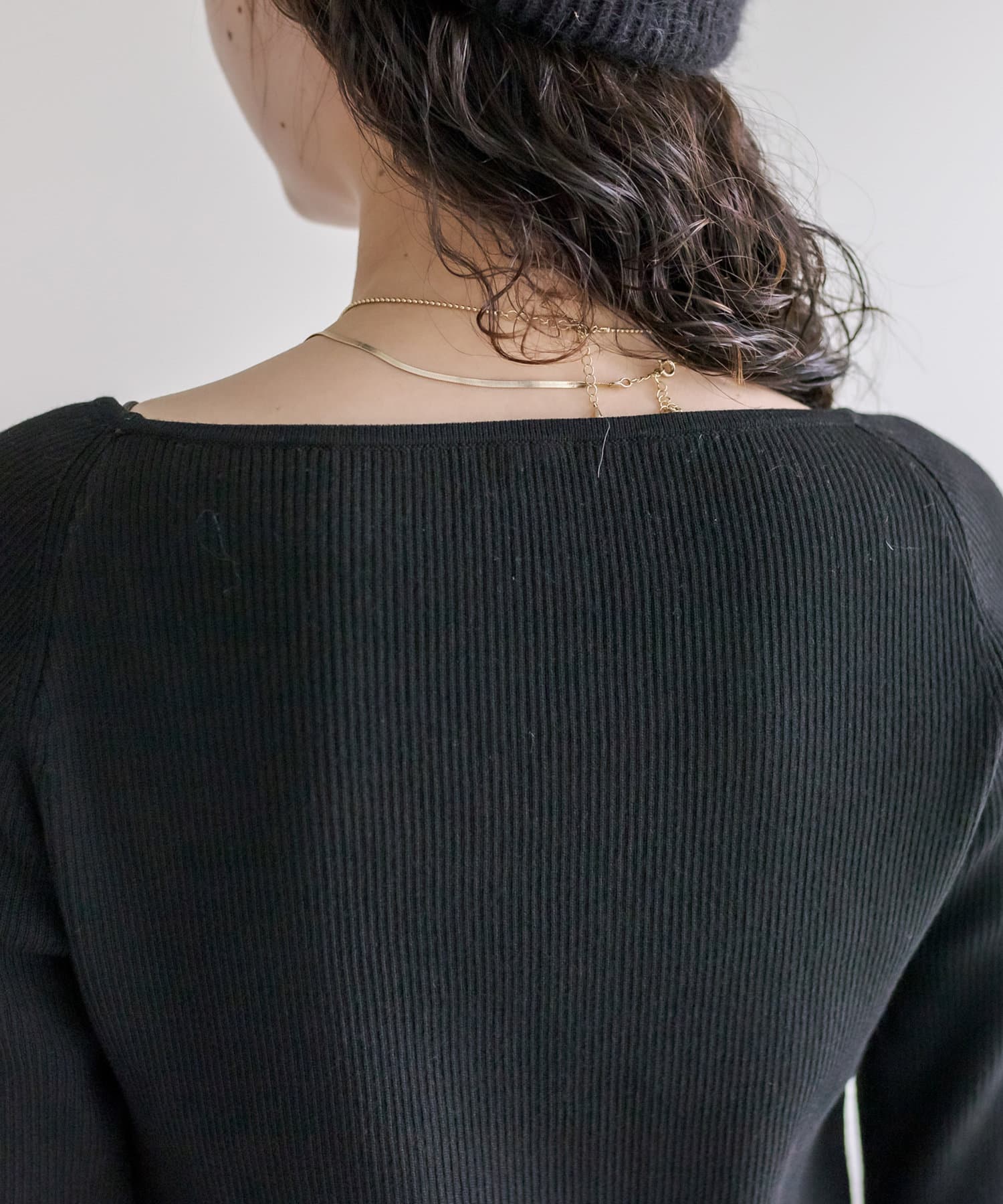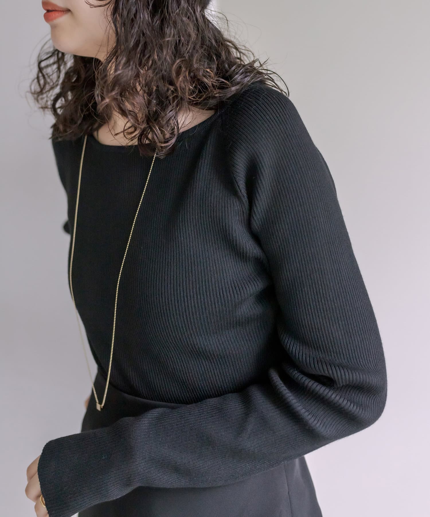 ・細めのリブが縦ラインを強調しボディラインをすっきり見せてくれます。