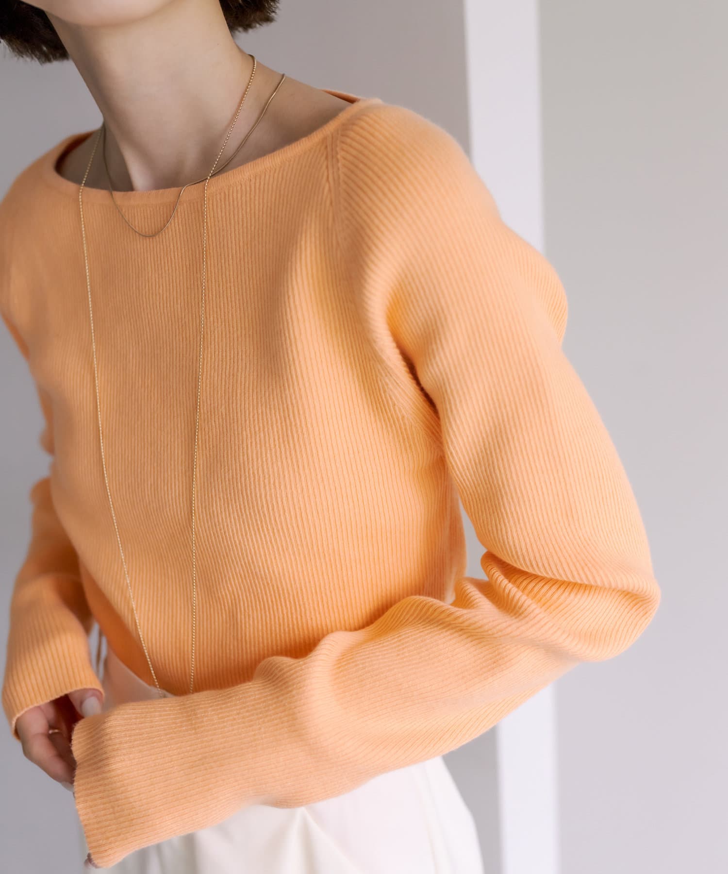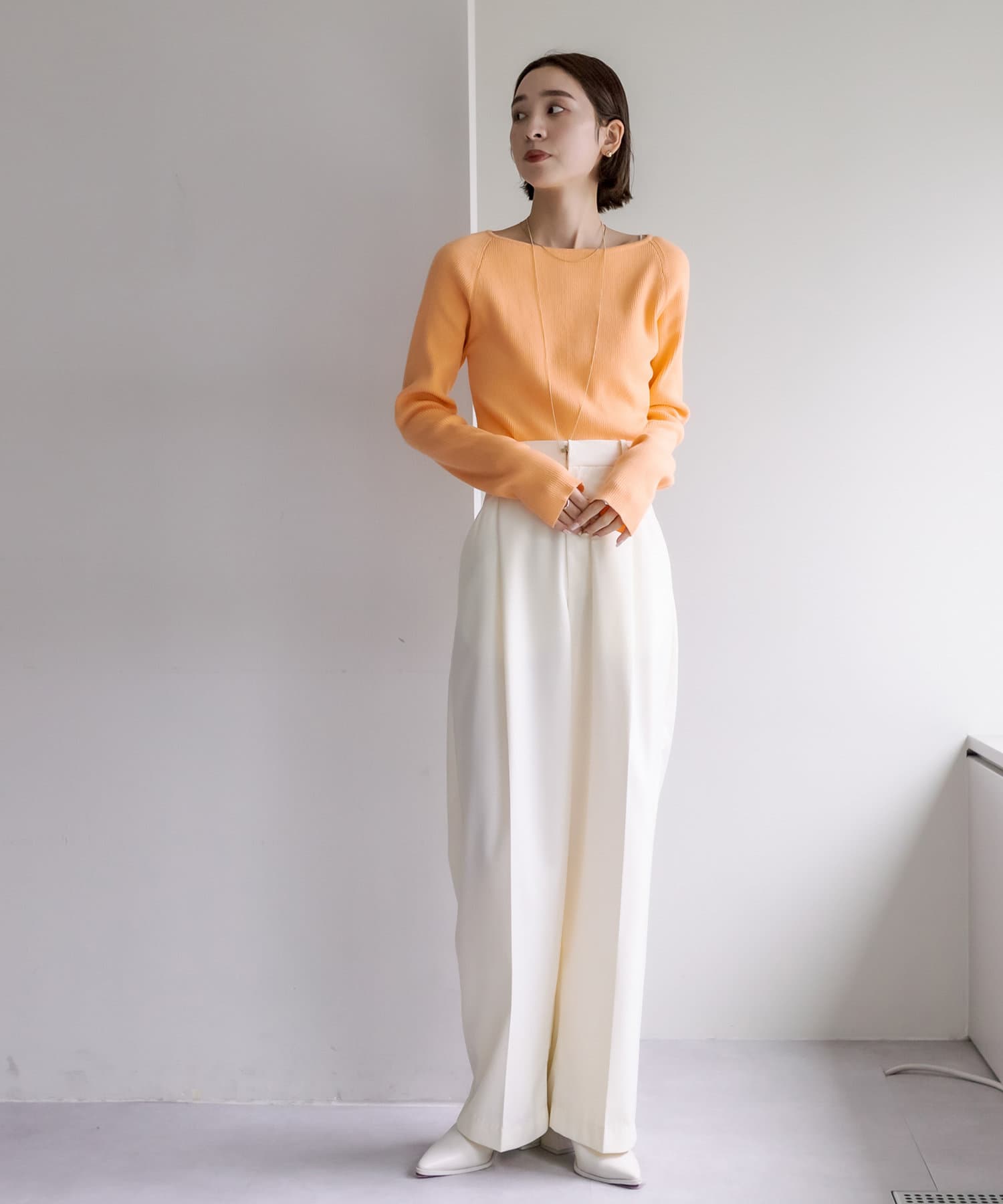 ・デコルテラインが女性らしい印象に決まるクルーネックデザイン。