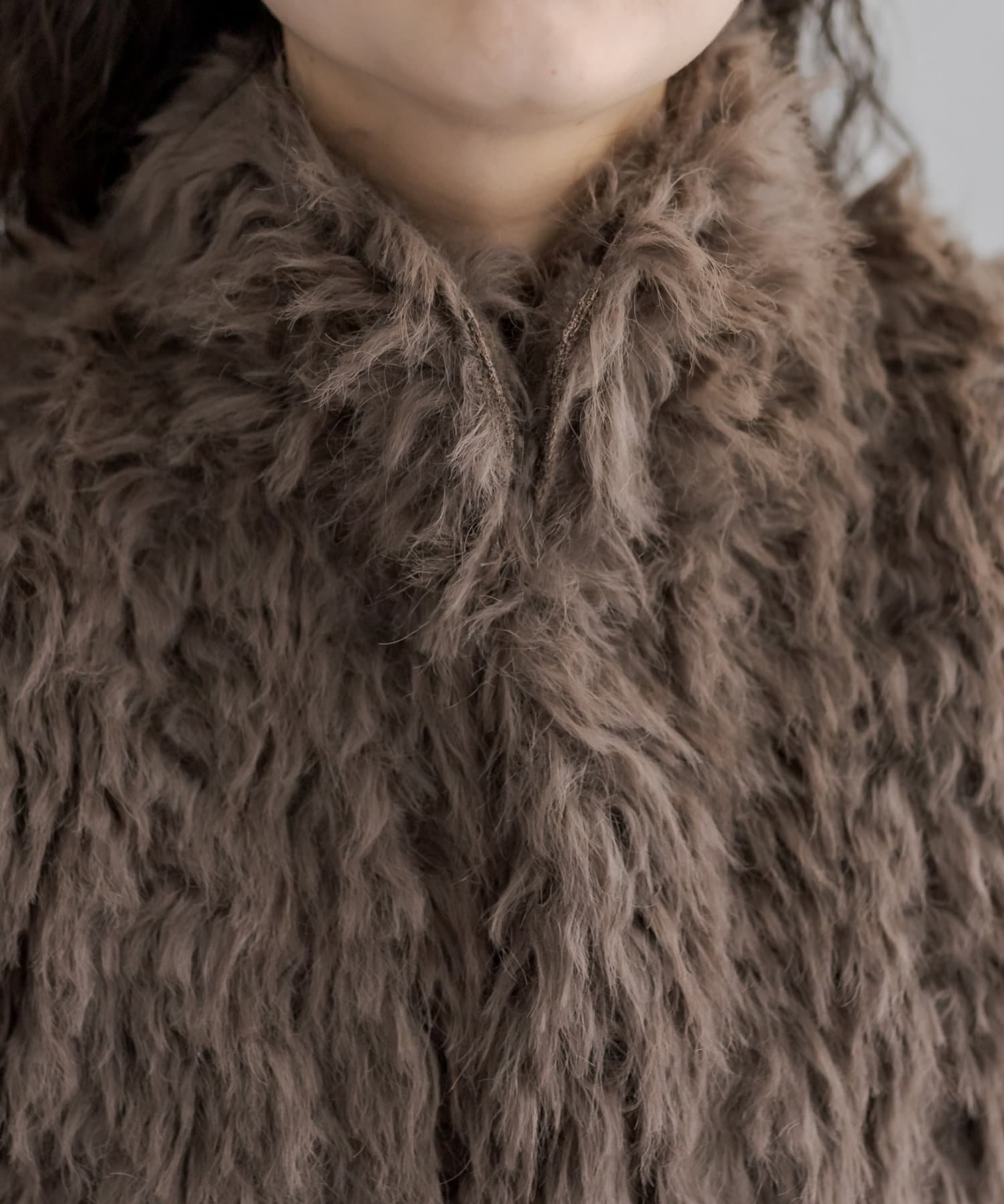 ・ボリューム感のあるファーが目を惹く、ショート丈デザイン。