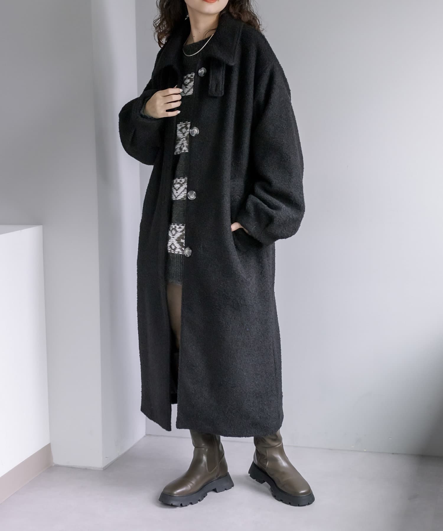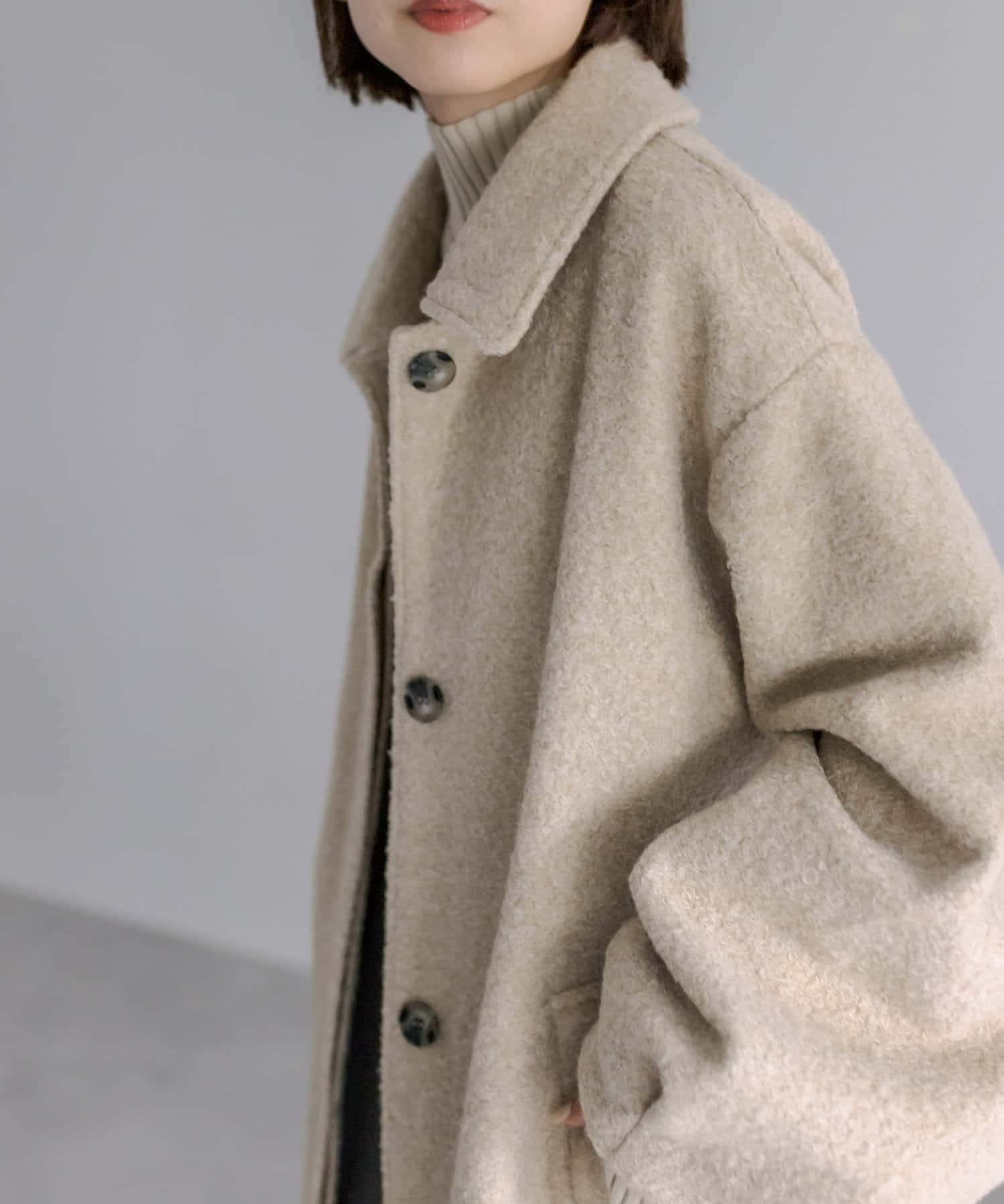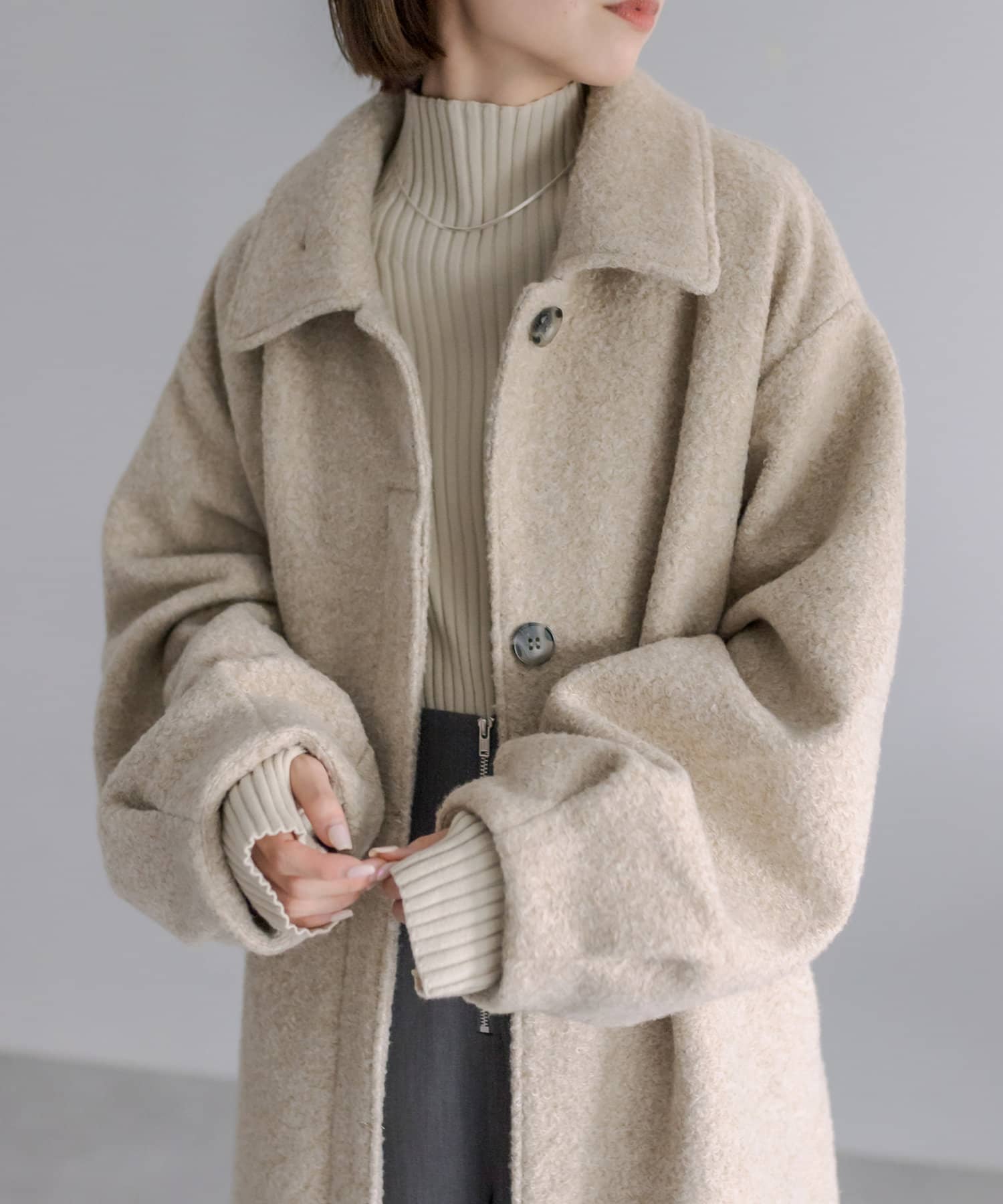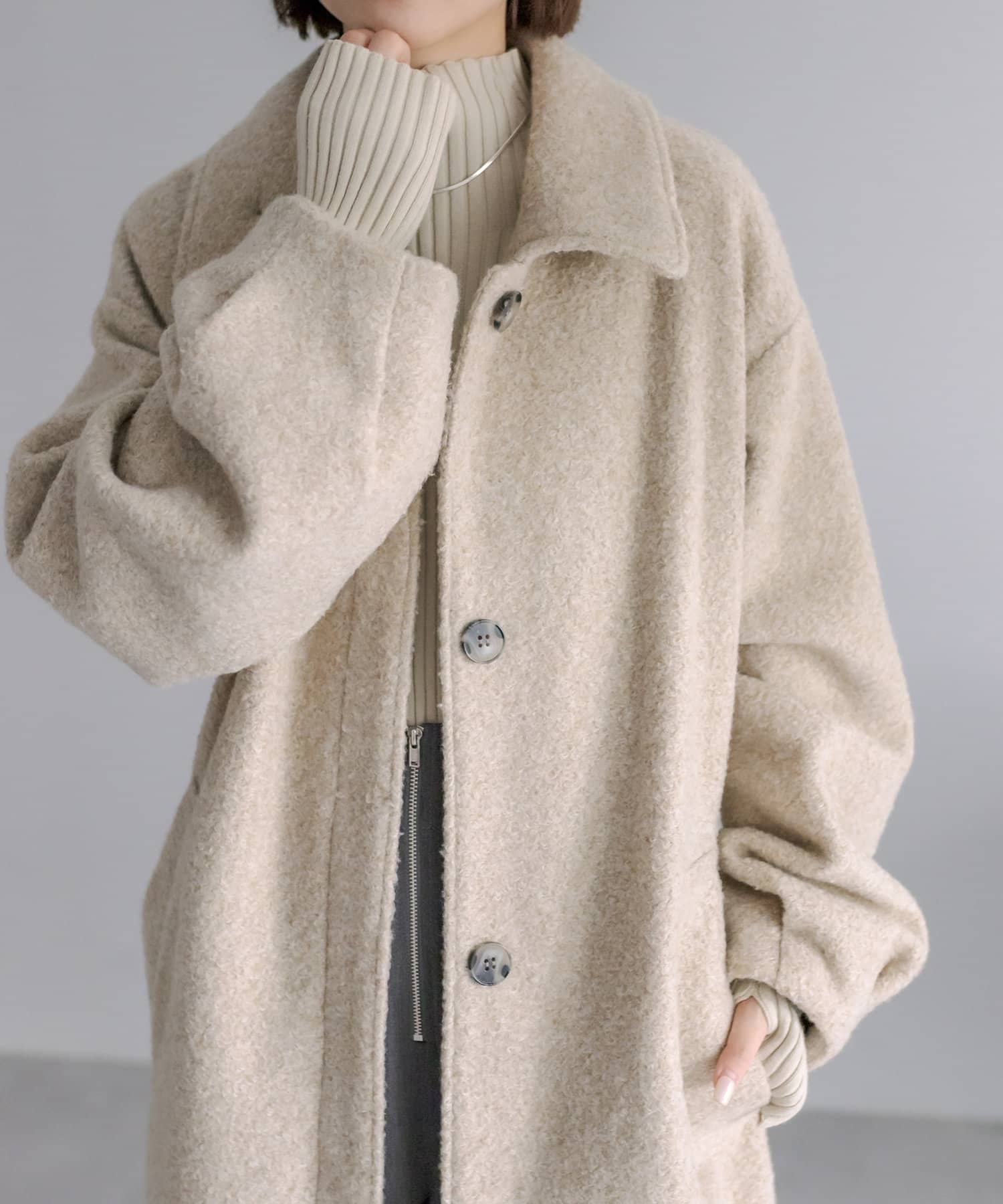・上質な素材感で女性らしく、一枚で華やかに決まるコート。