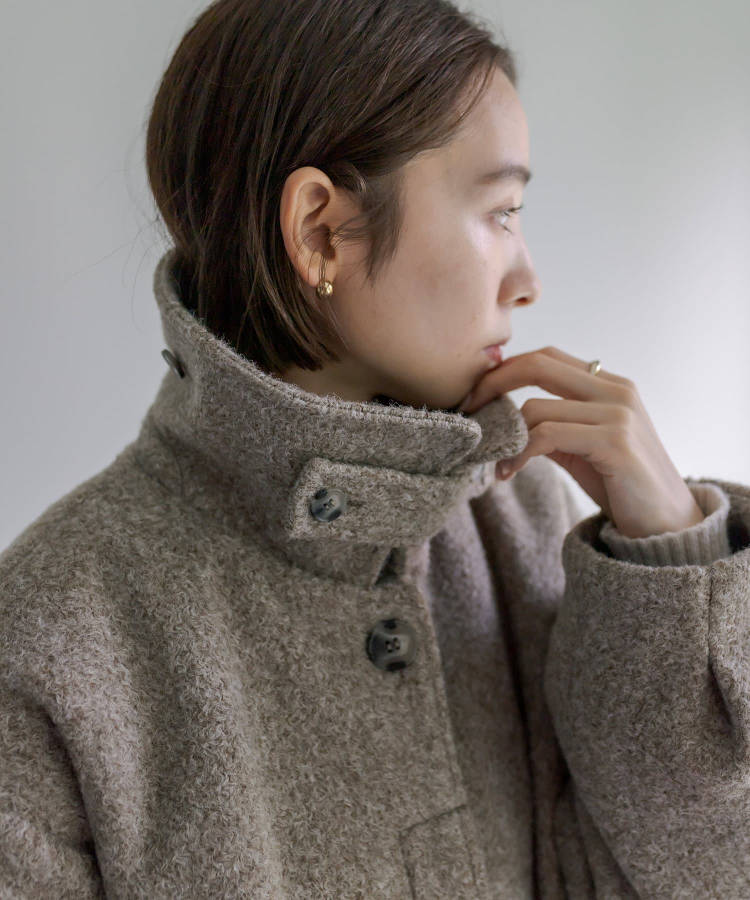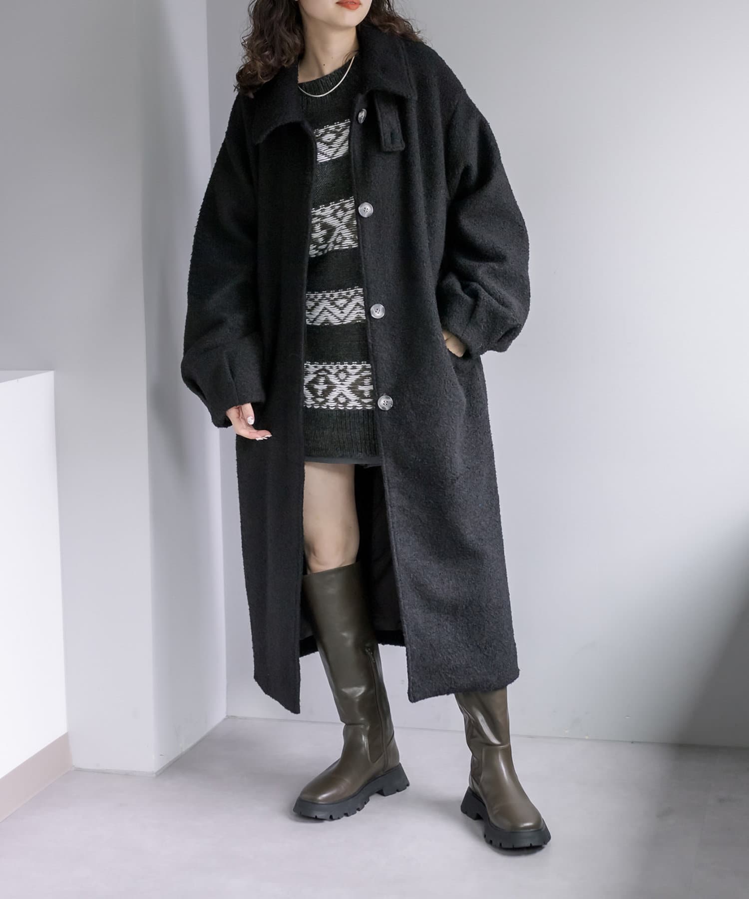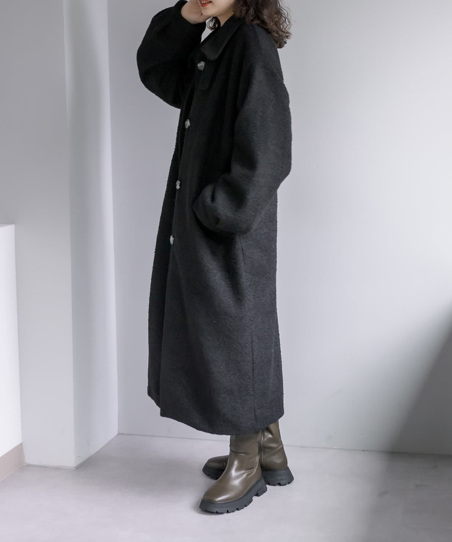・上質な素材感で女性らしく、一枚で華やかに決まるコート。