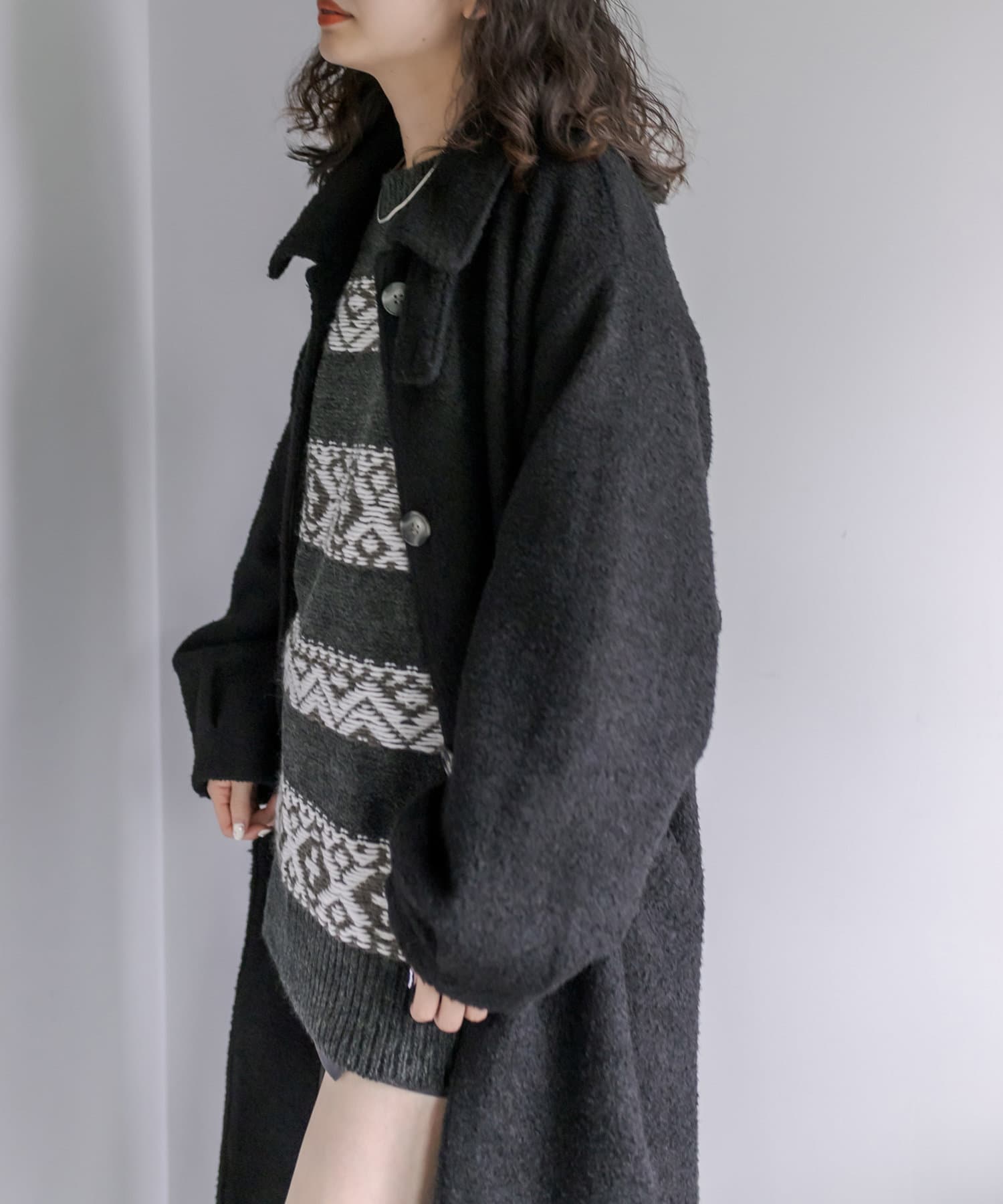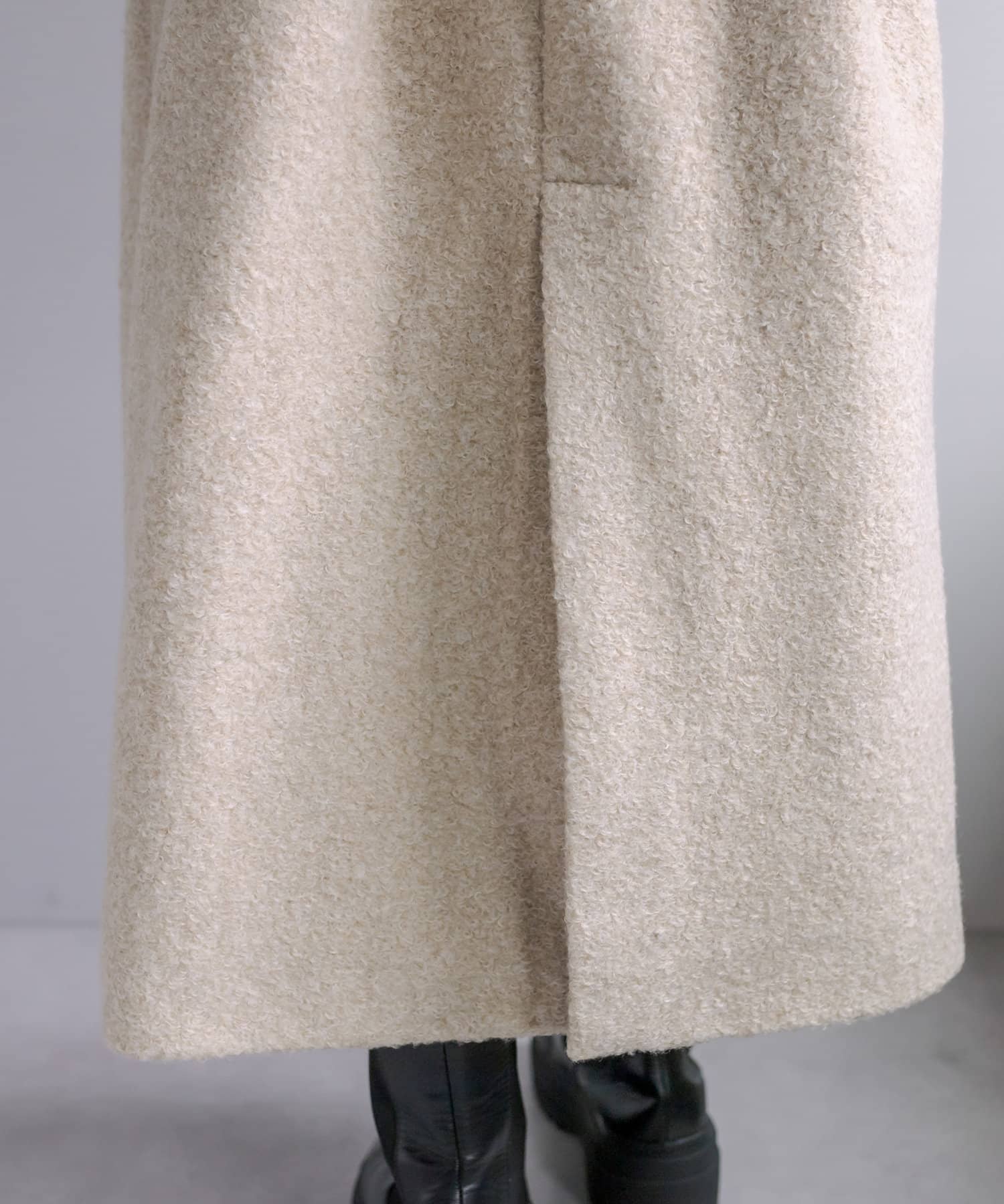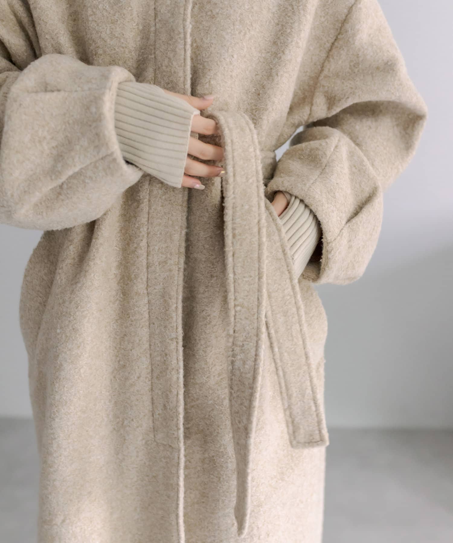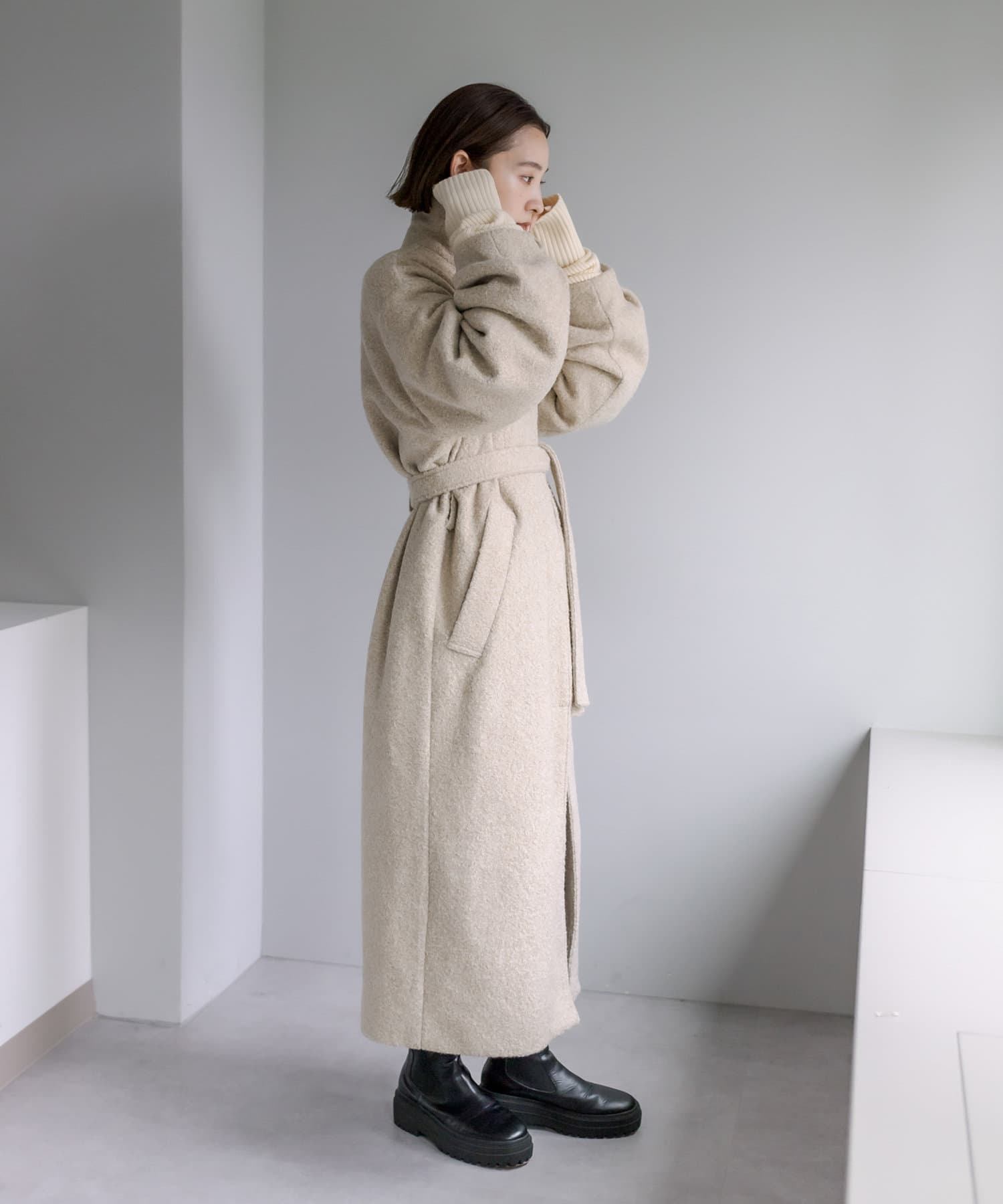 ・上質な素材感で女性らしく、一枚で華やかに決まるコート。