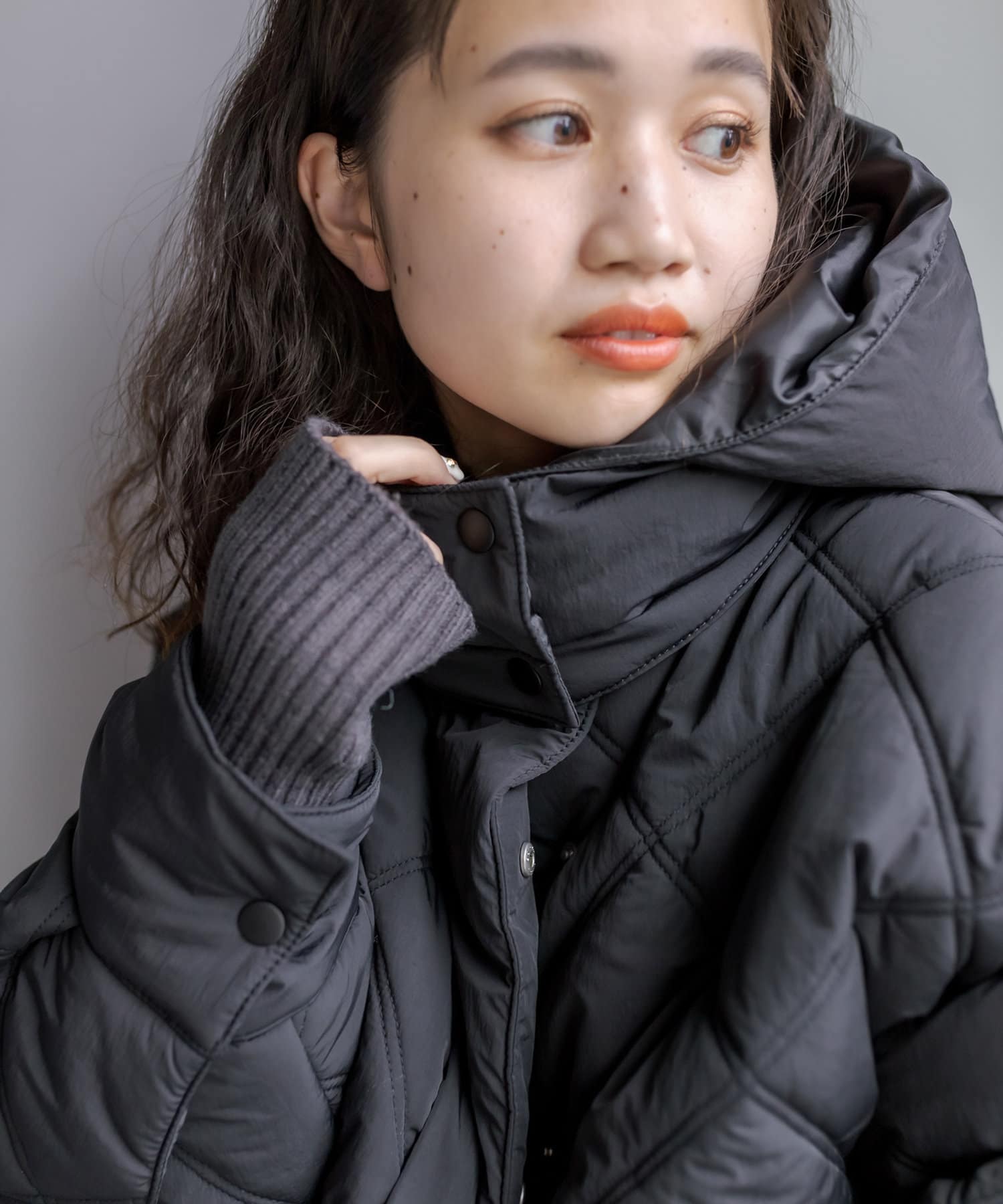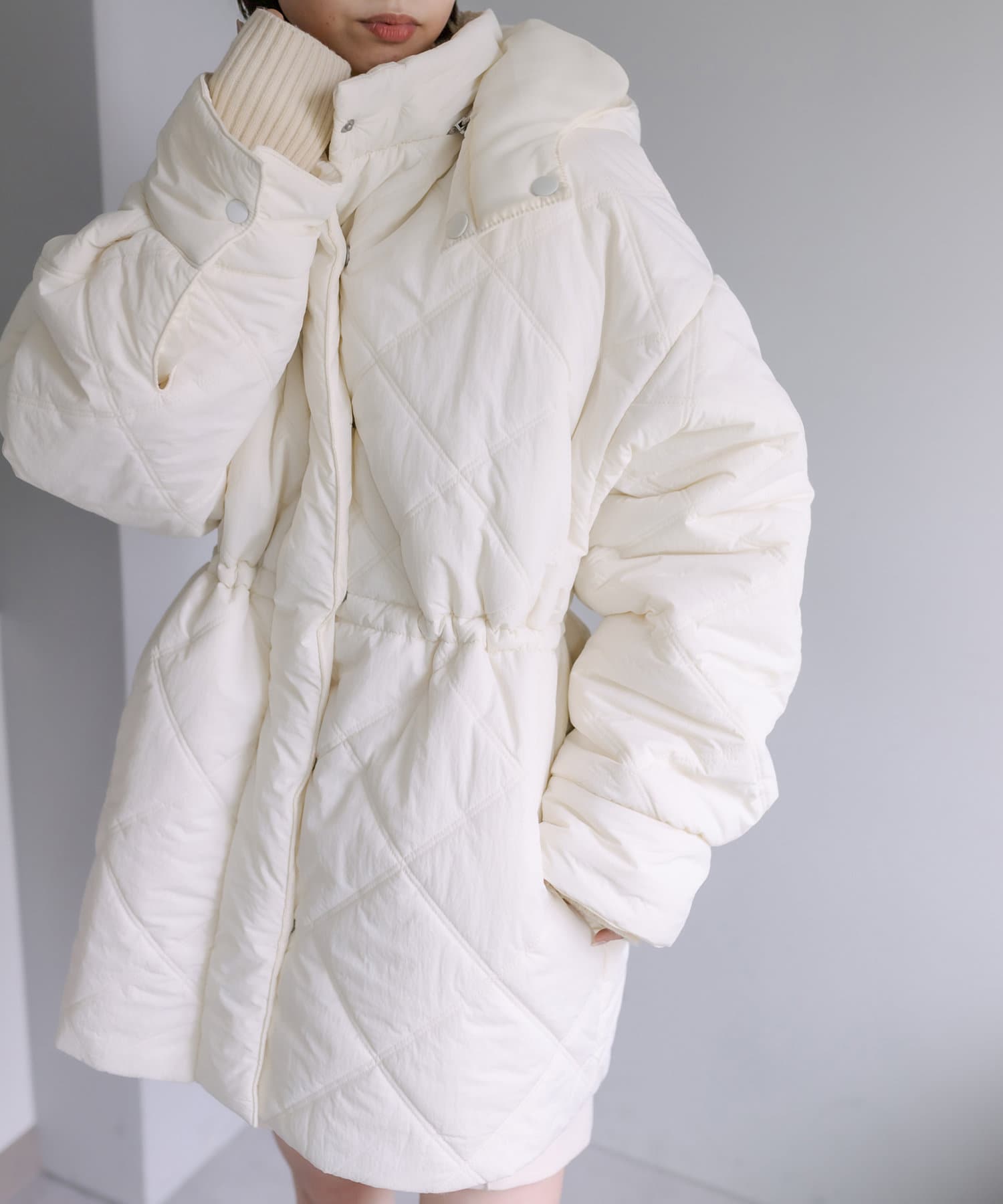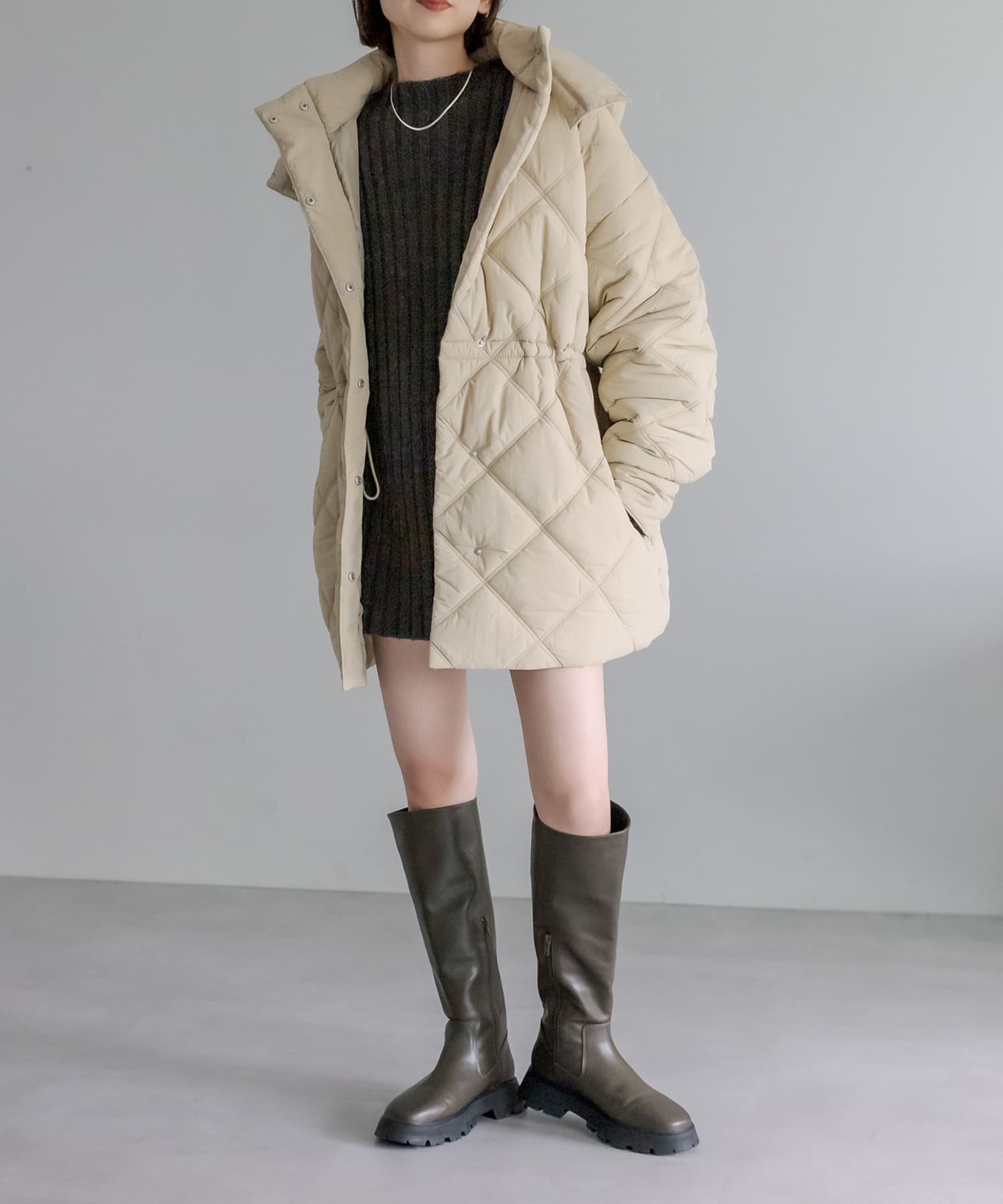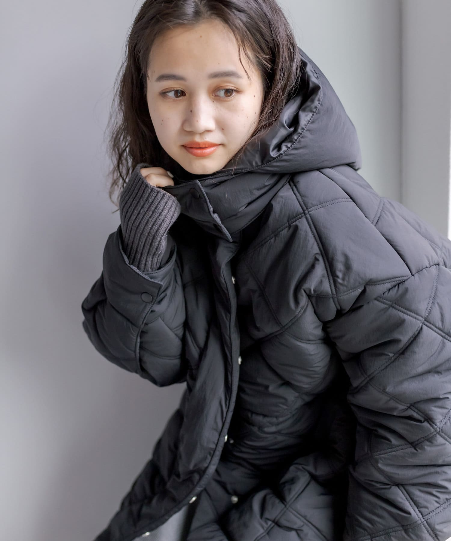 トレンドのキルティング素材が目を惹くミドル丈コートが登場!