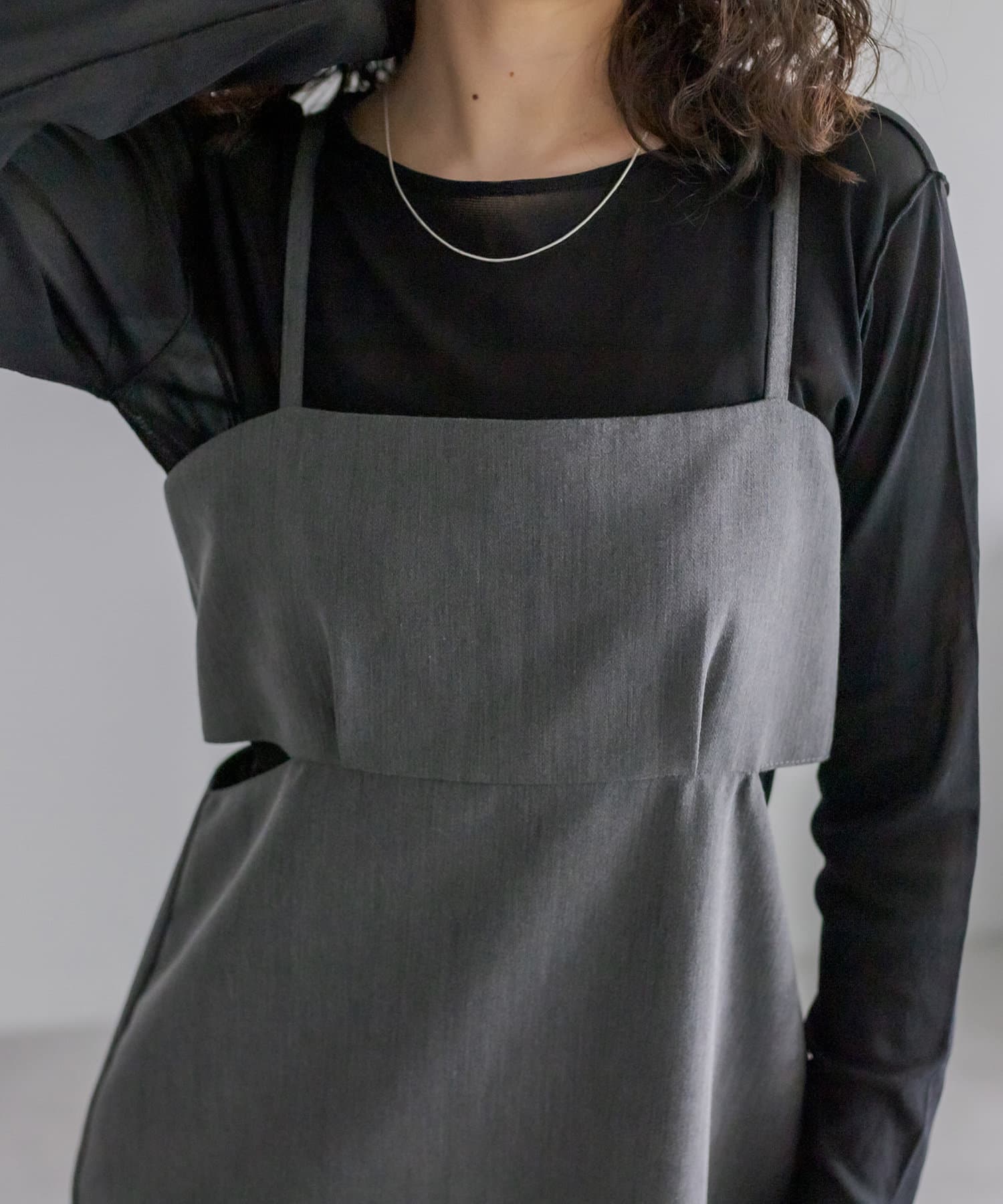 ・肩紐でワンピースの丈感を調節できるので幅広い身長の方に着ていただけます。