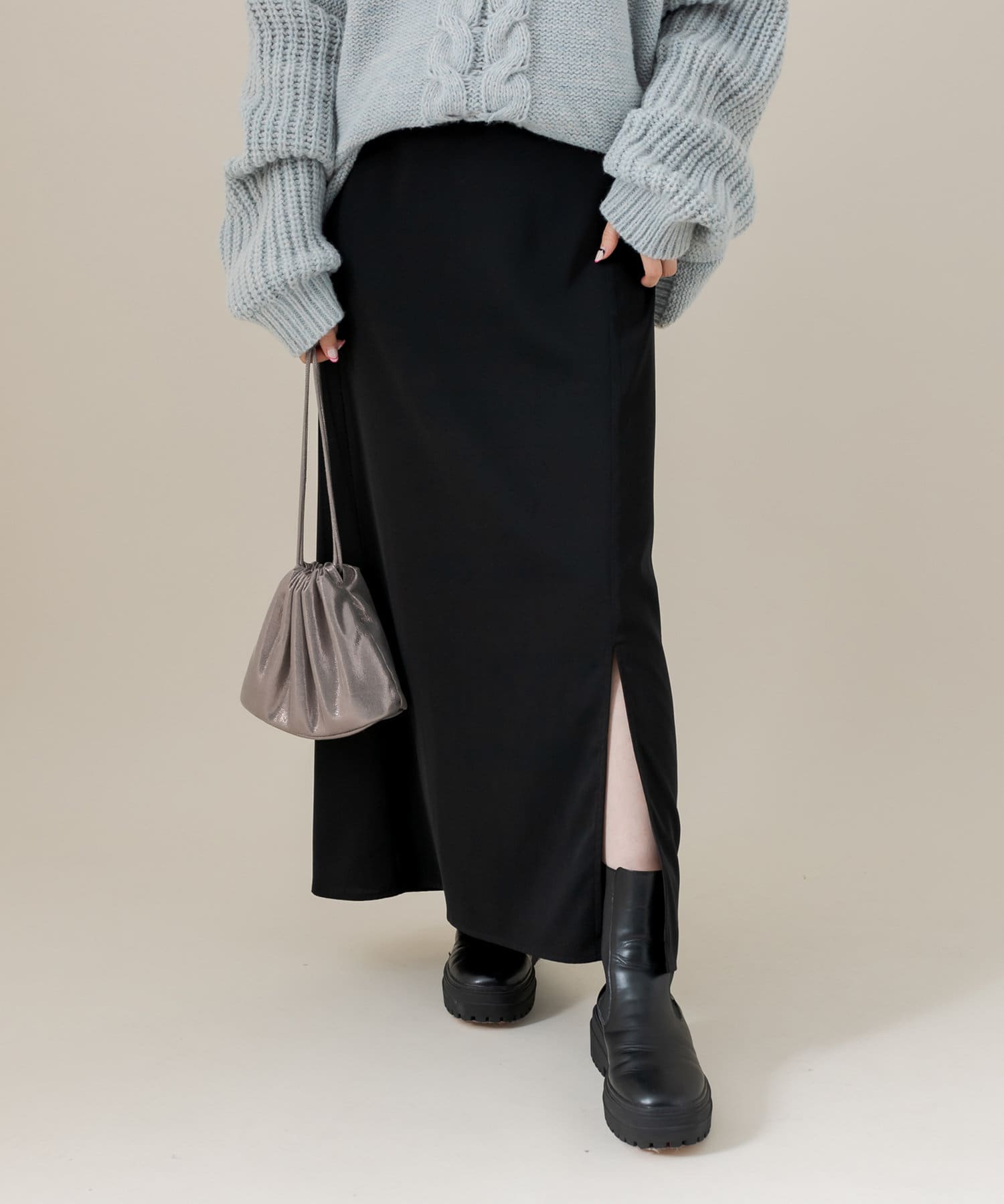 ・Iラインシルエットが華奢見え、サイドのスリットで抜け感をプラスしてくれる一枚