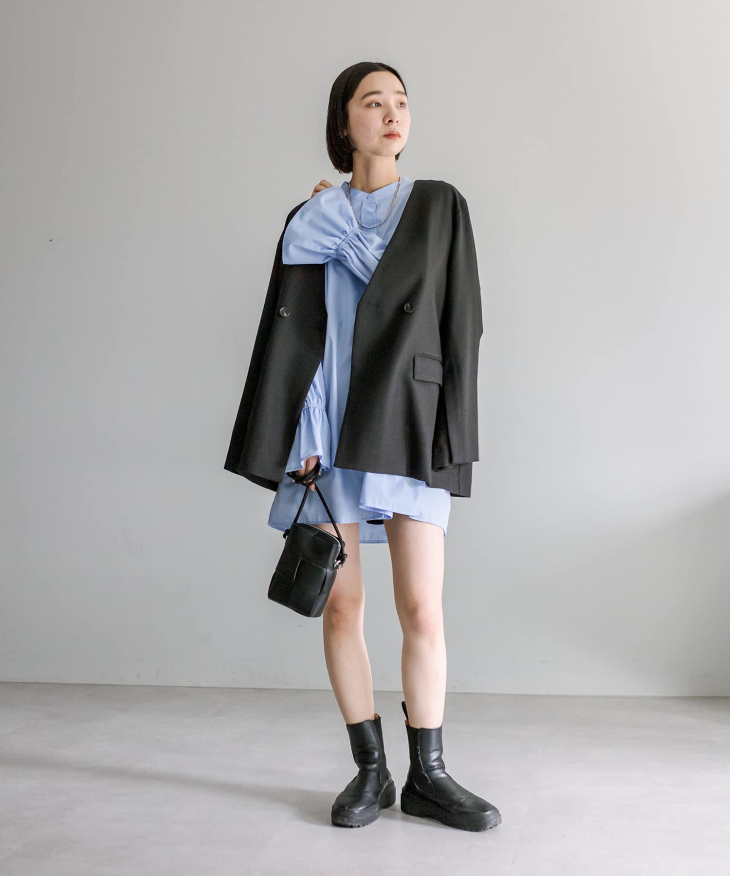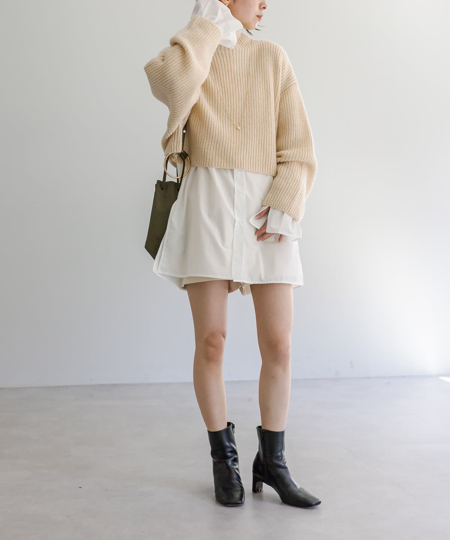 ・ミニ丈ボトムと合わせてミニワンピ風にも着ていただけます。