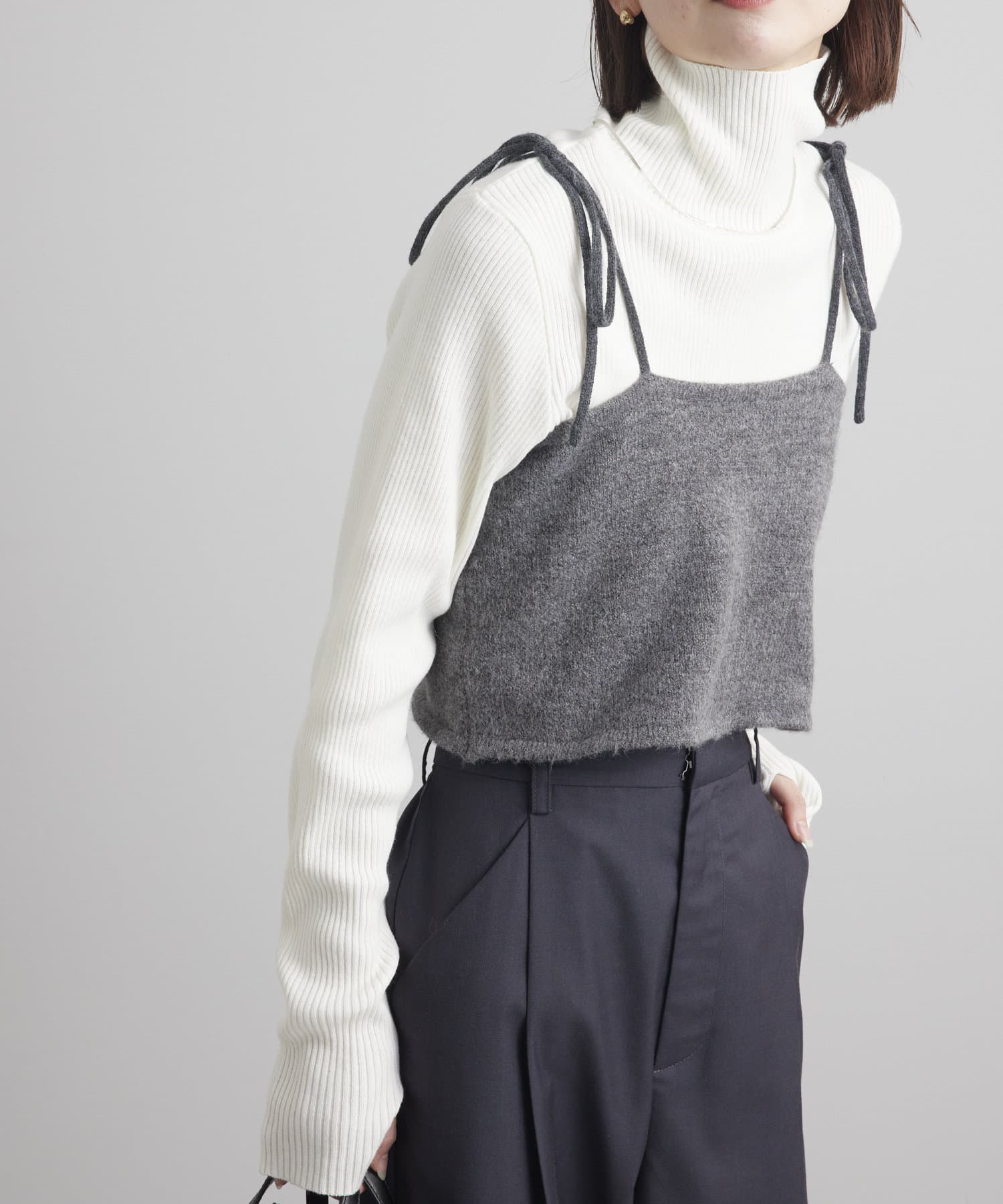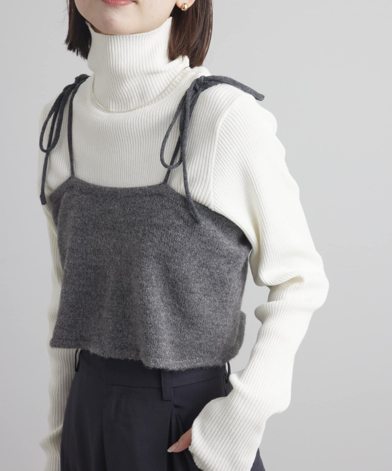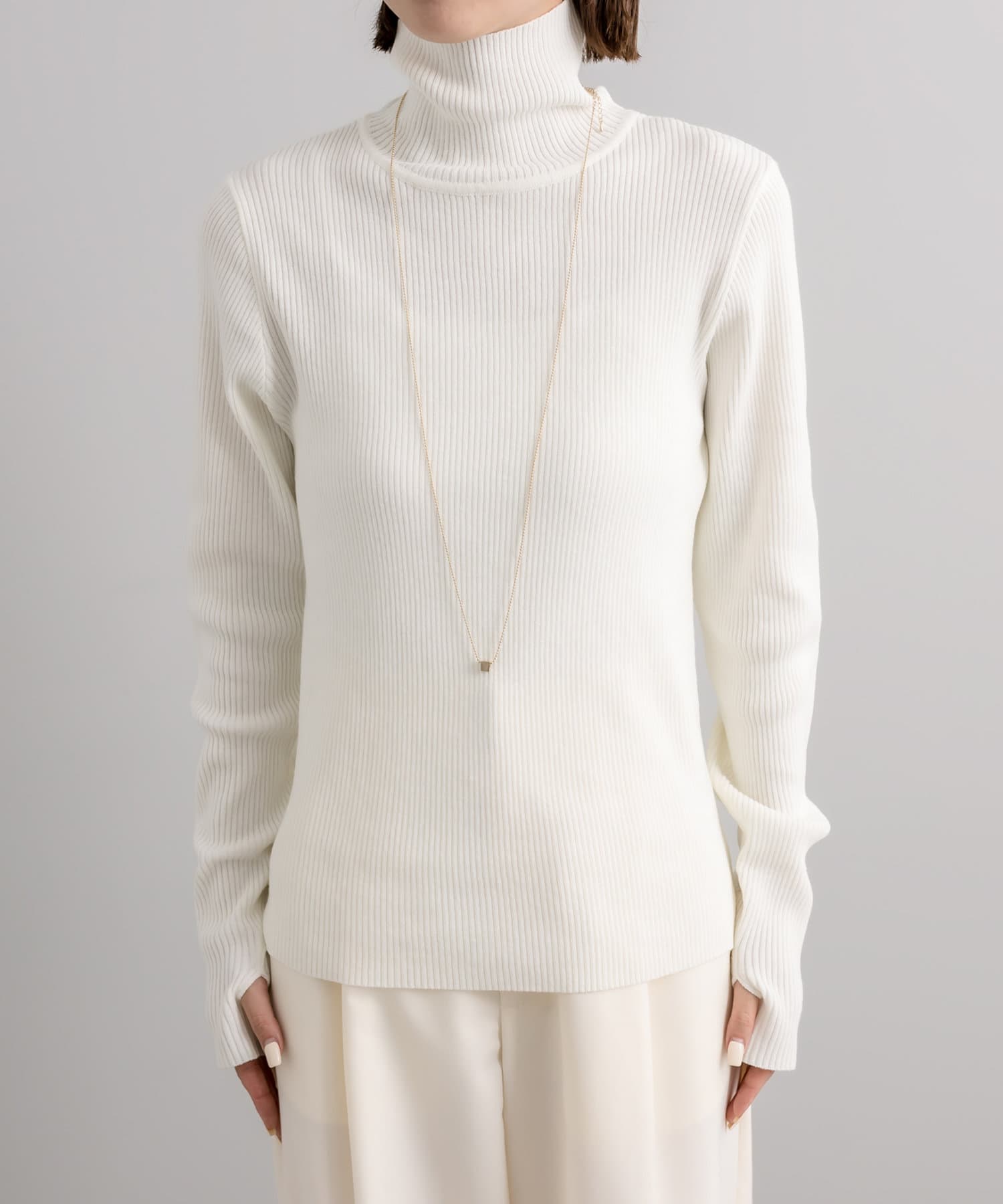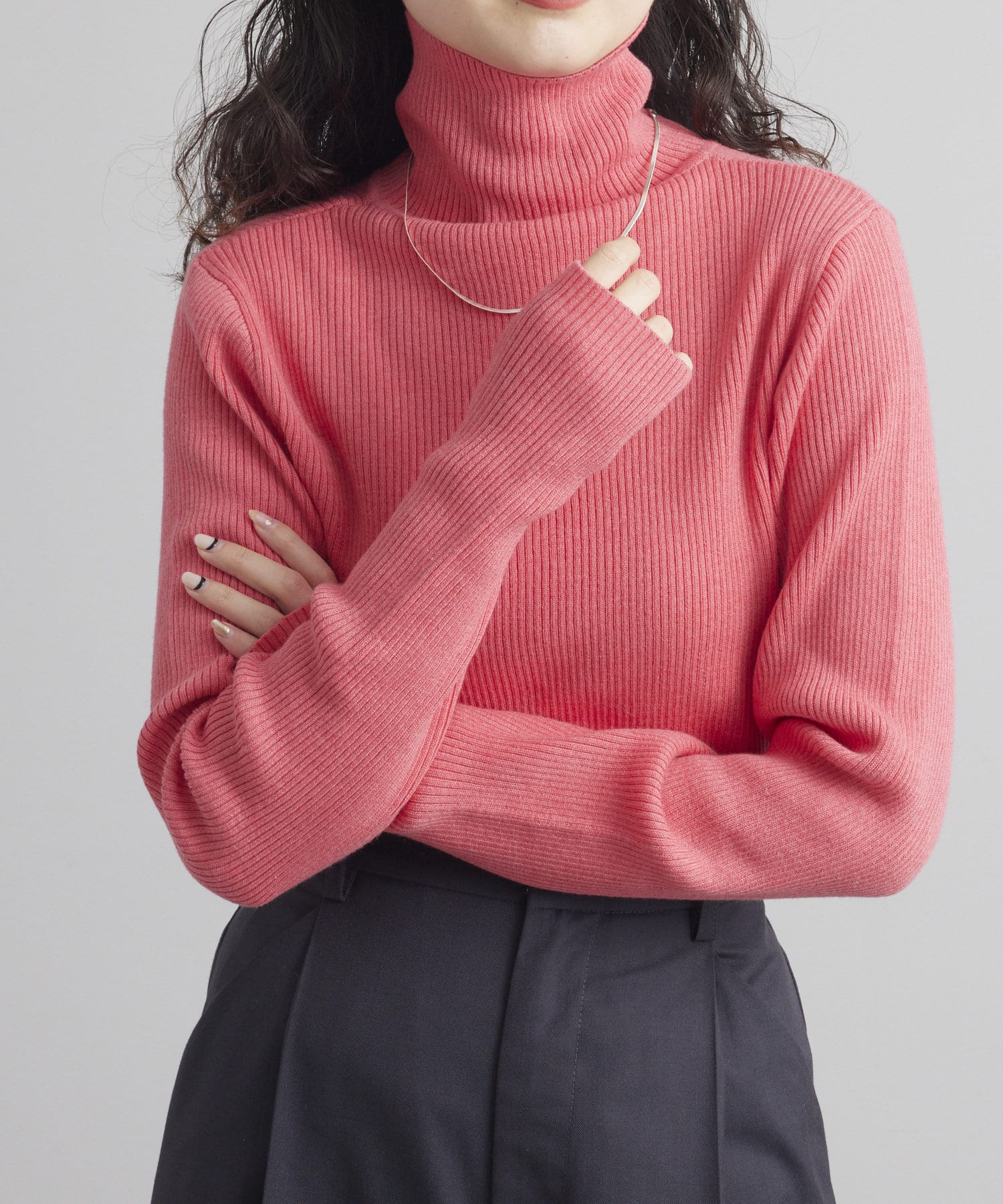 ・細身のリブニットはボディラインを華奢に見せてくれます。