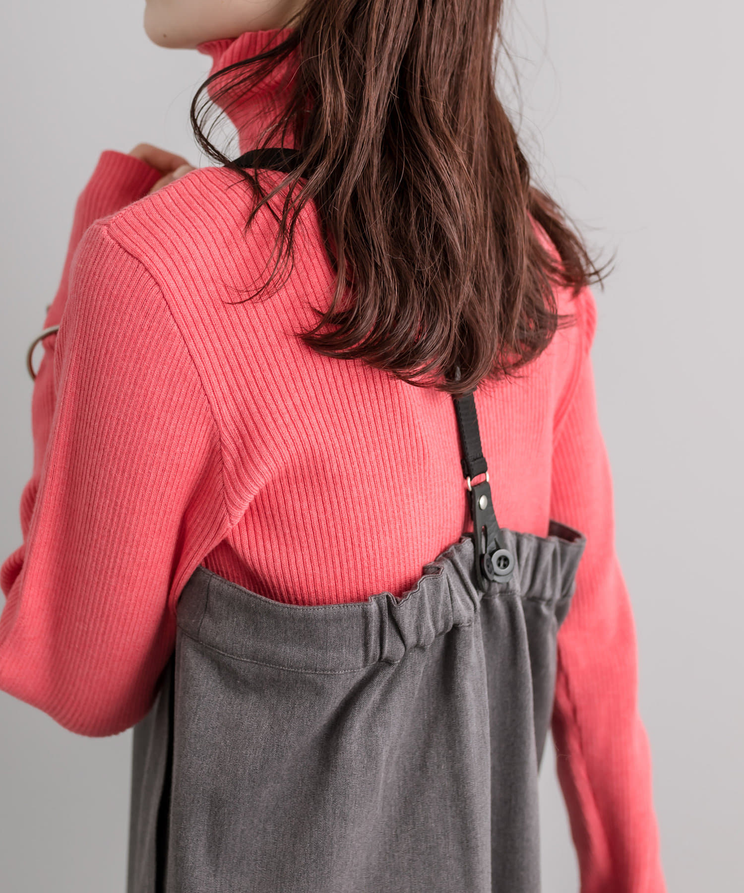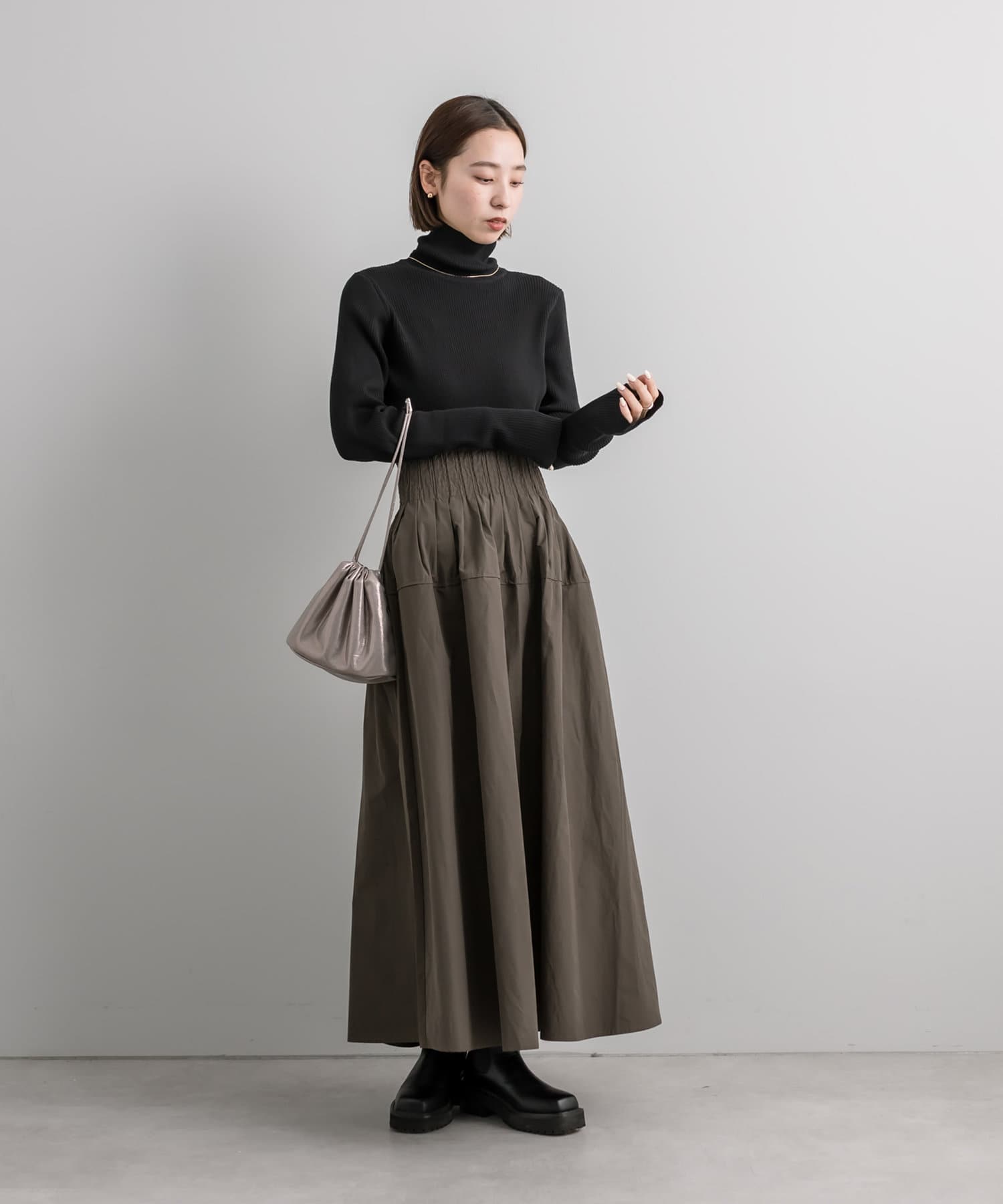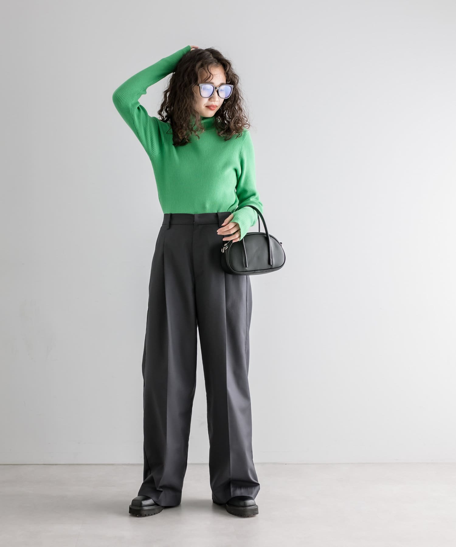 ・細身のリブニットはボディラインを華奢に見せてくれます。
