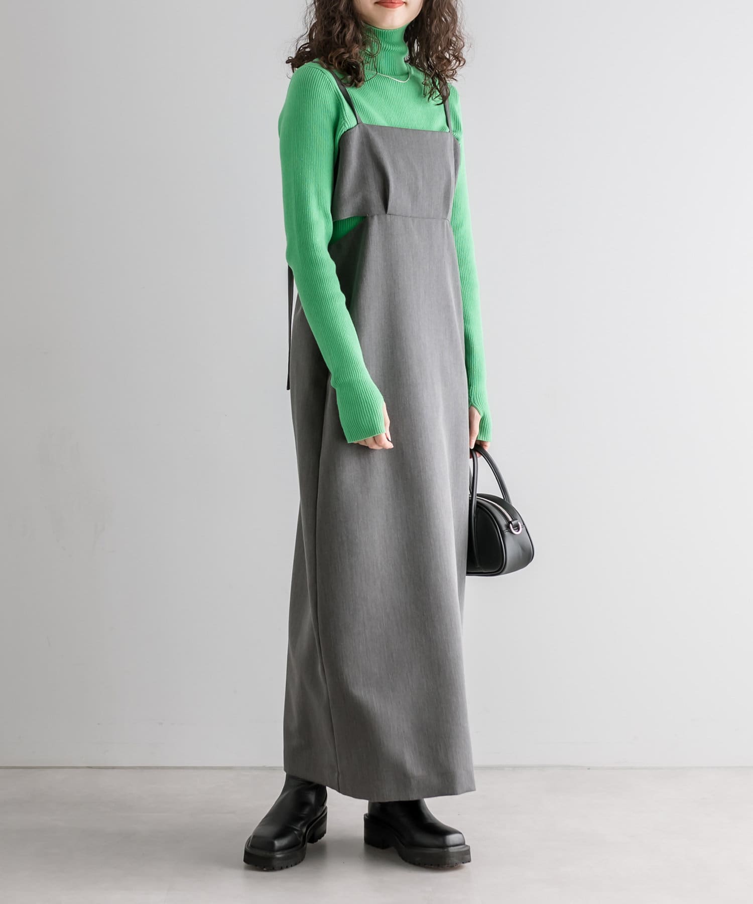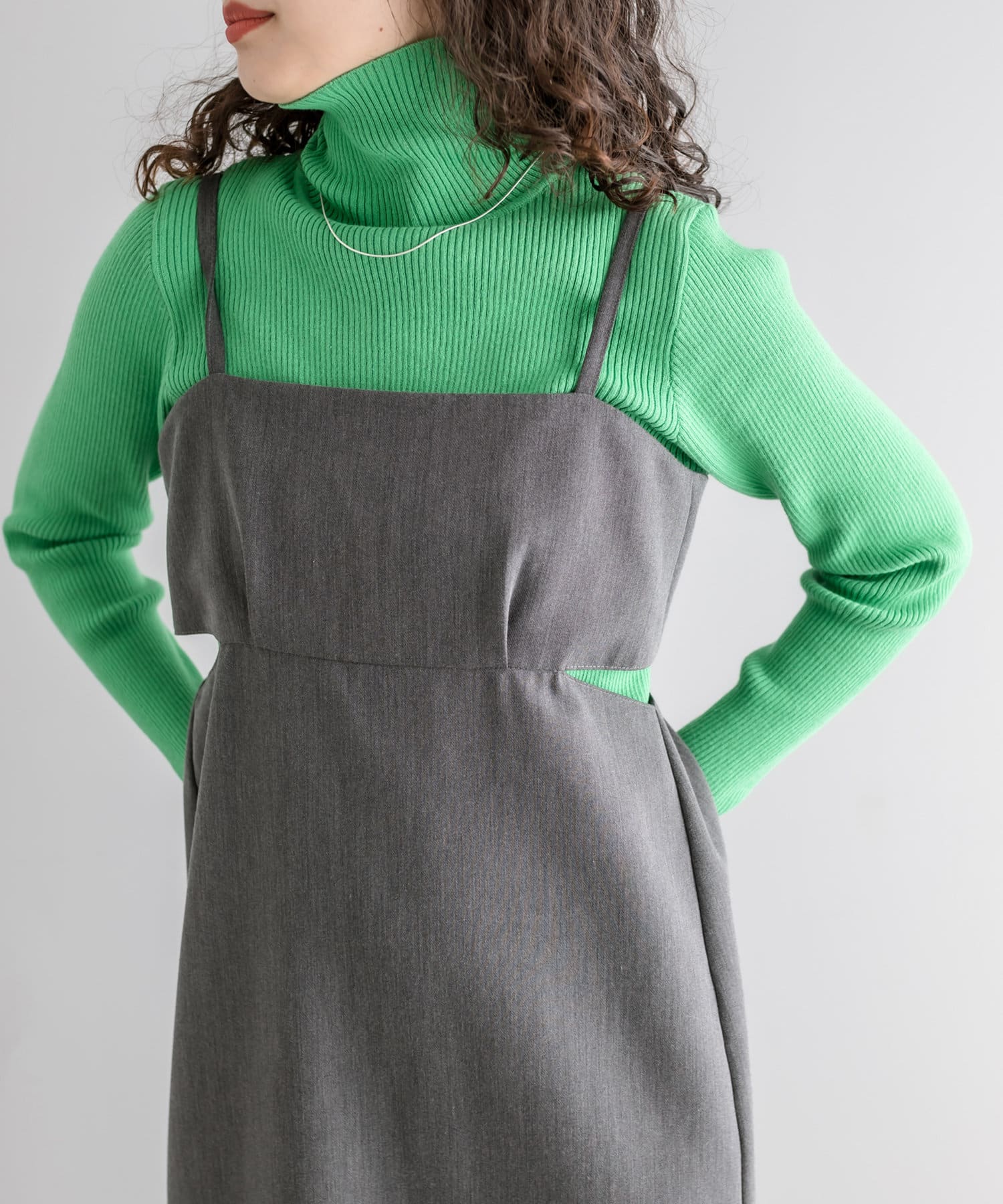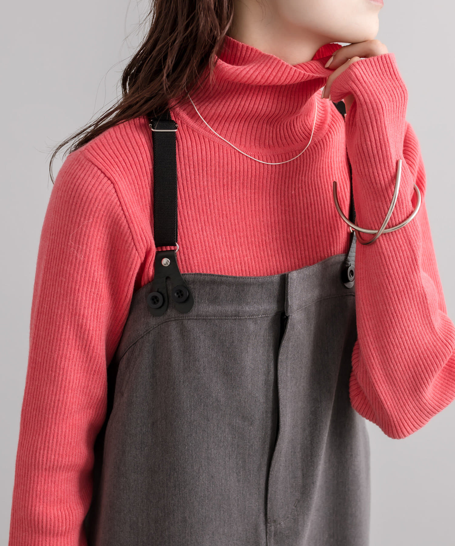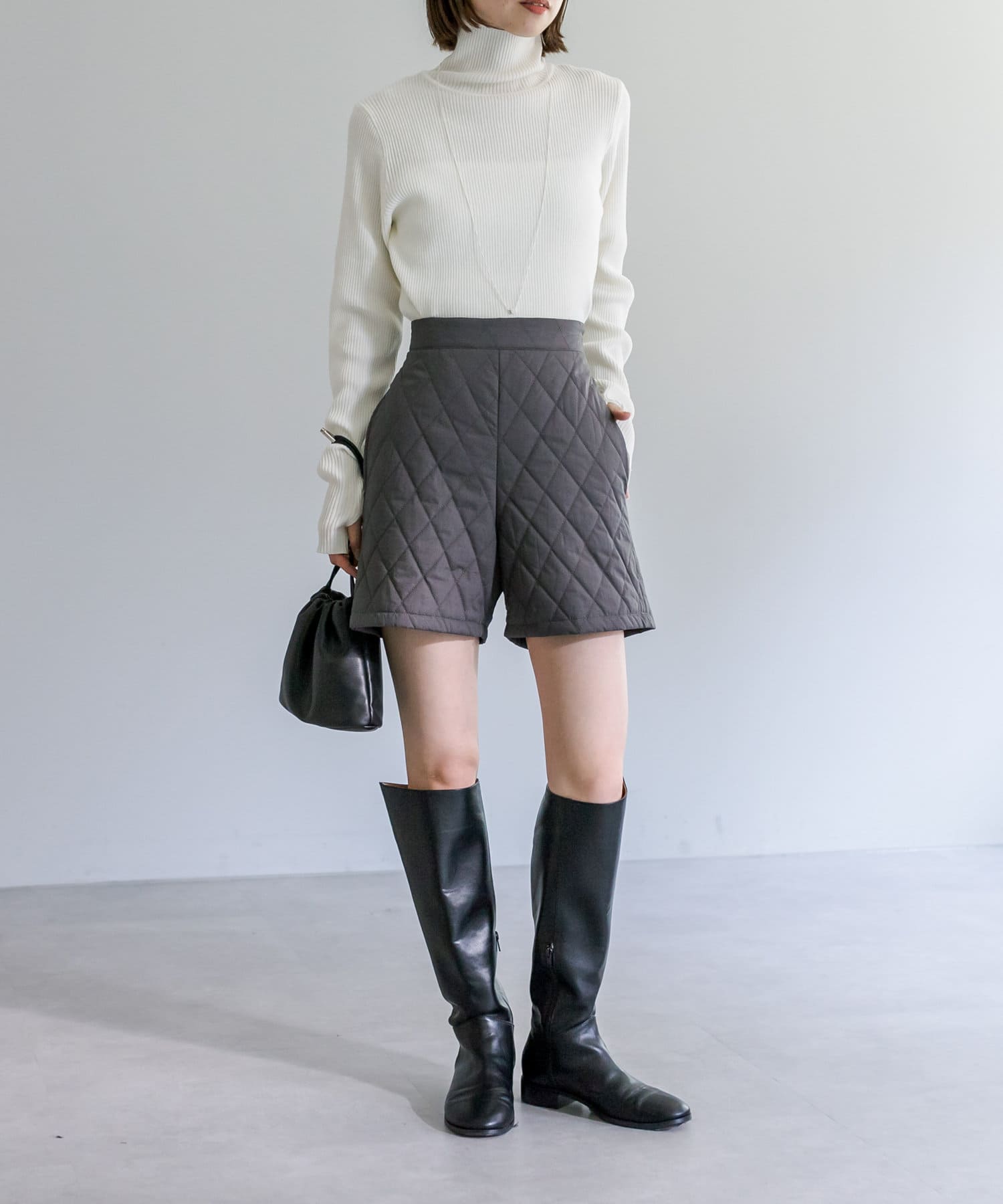 ・細身のリブニットはボディラインを華奢に見せてくれます。
