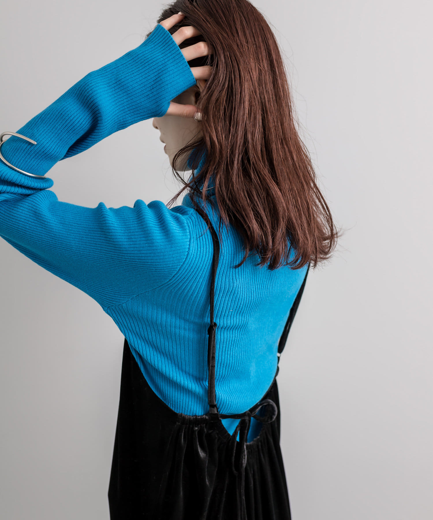 サイズ感タイトゆったり軽さ重い軽い厚み薄い厚いやわらかさかたいやわらかい伸縮性伸びない伸びる透け感透けない透ける鮮やかな青が映える高見えニット