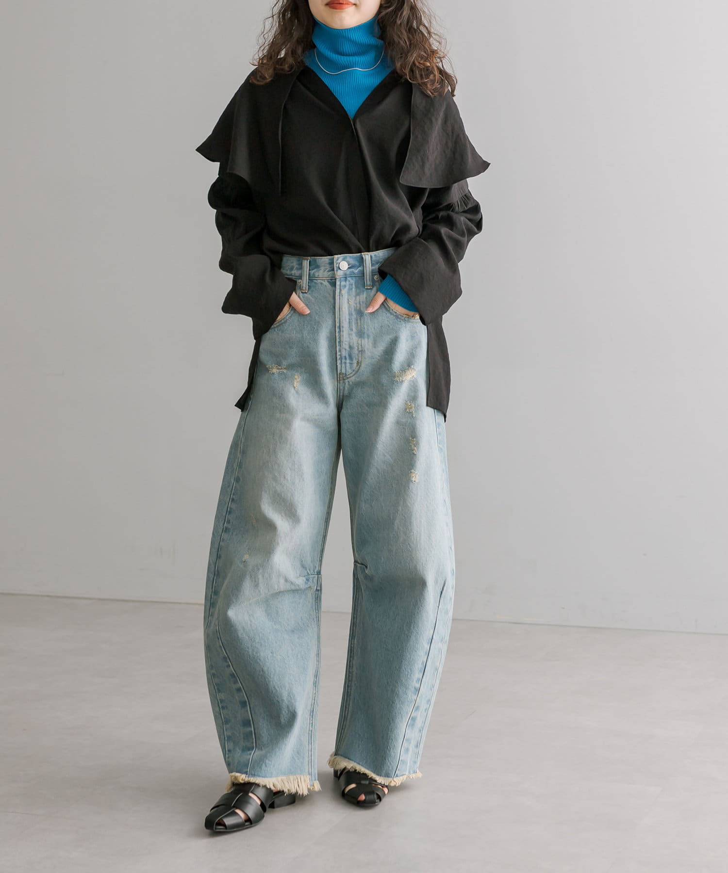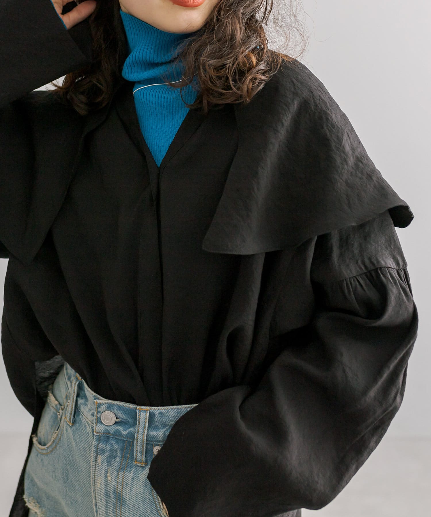 イエベでも着れるブルーですし、丸顔首短いでタートルは苦手ですがしっかり折れるので問題なく着れました◎