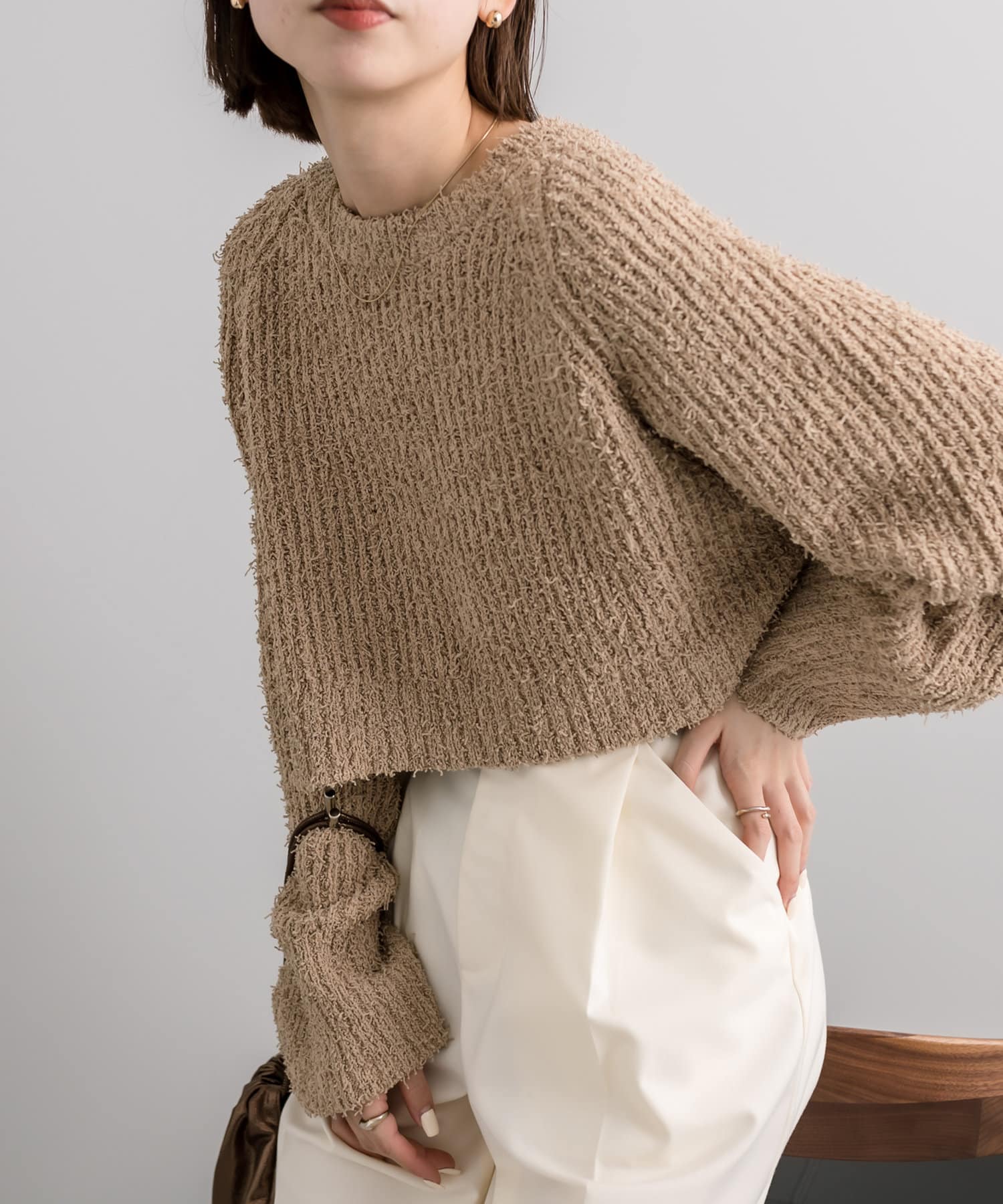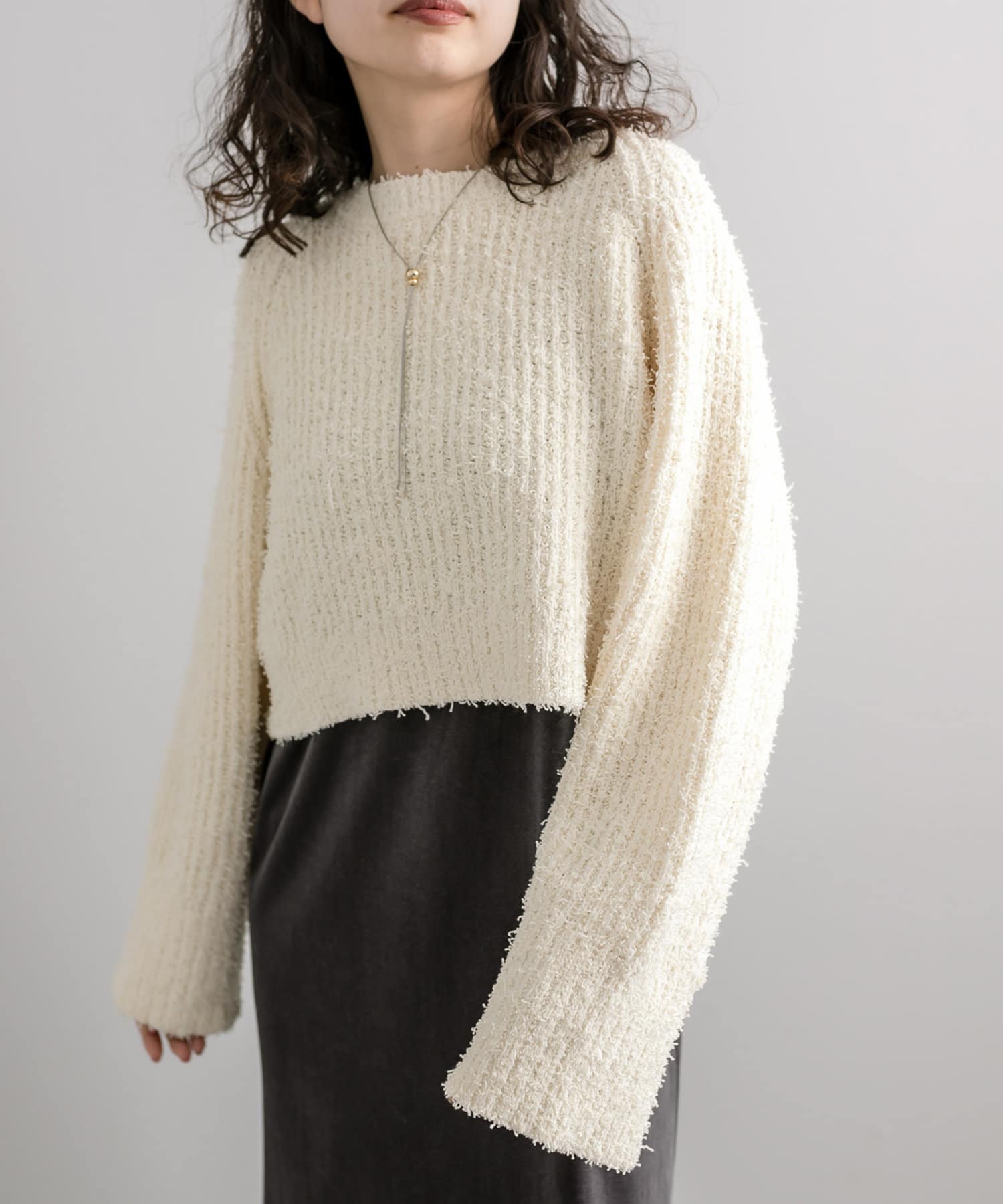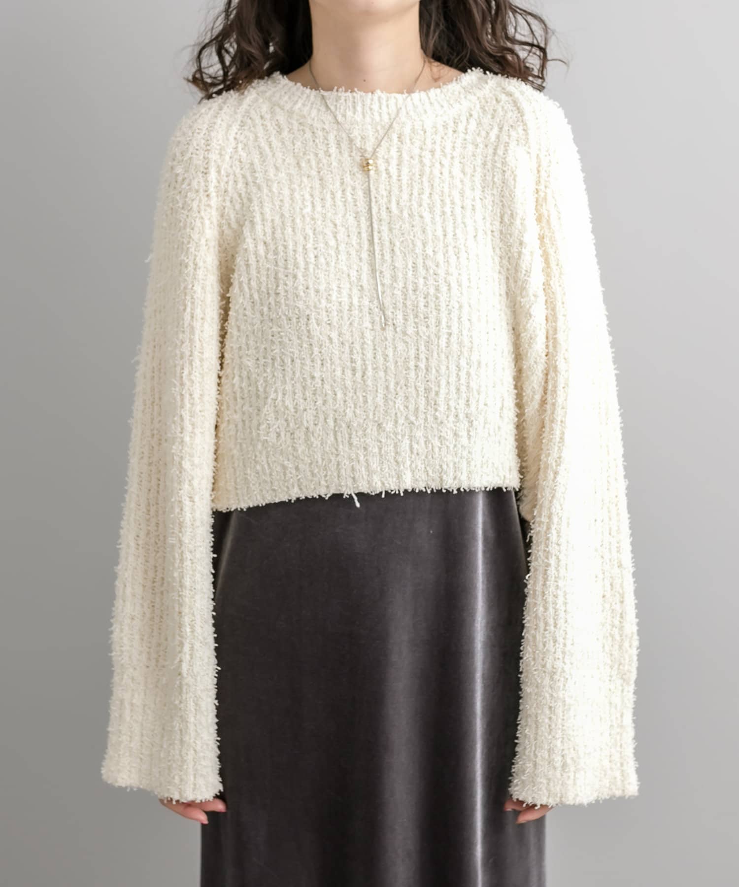 ノットヤーンがこなれ感を演出。ショートニットが登場