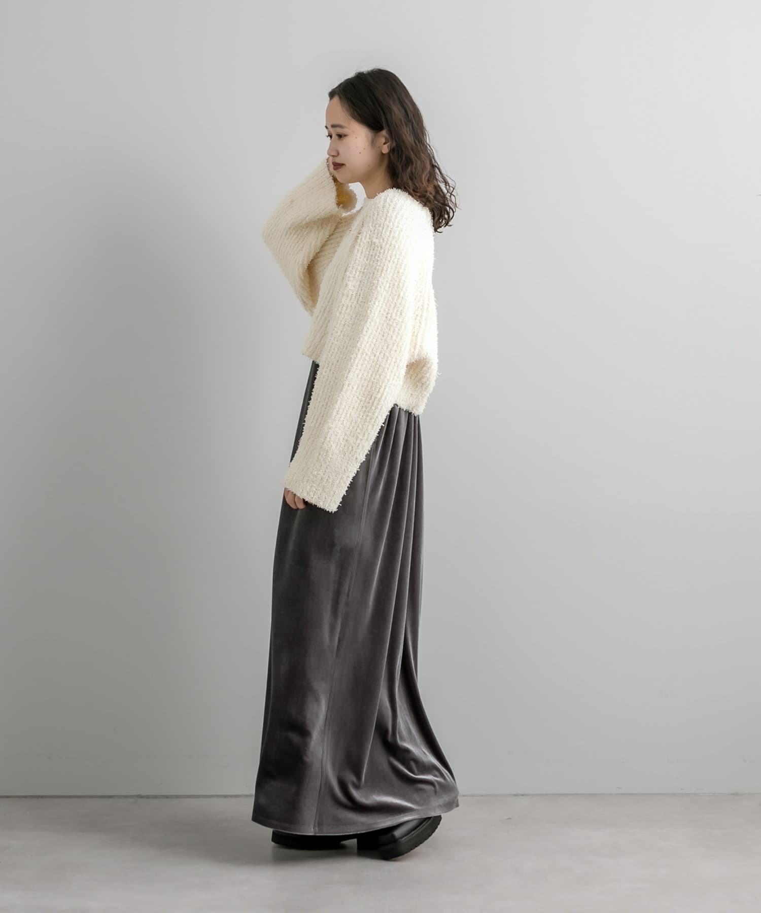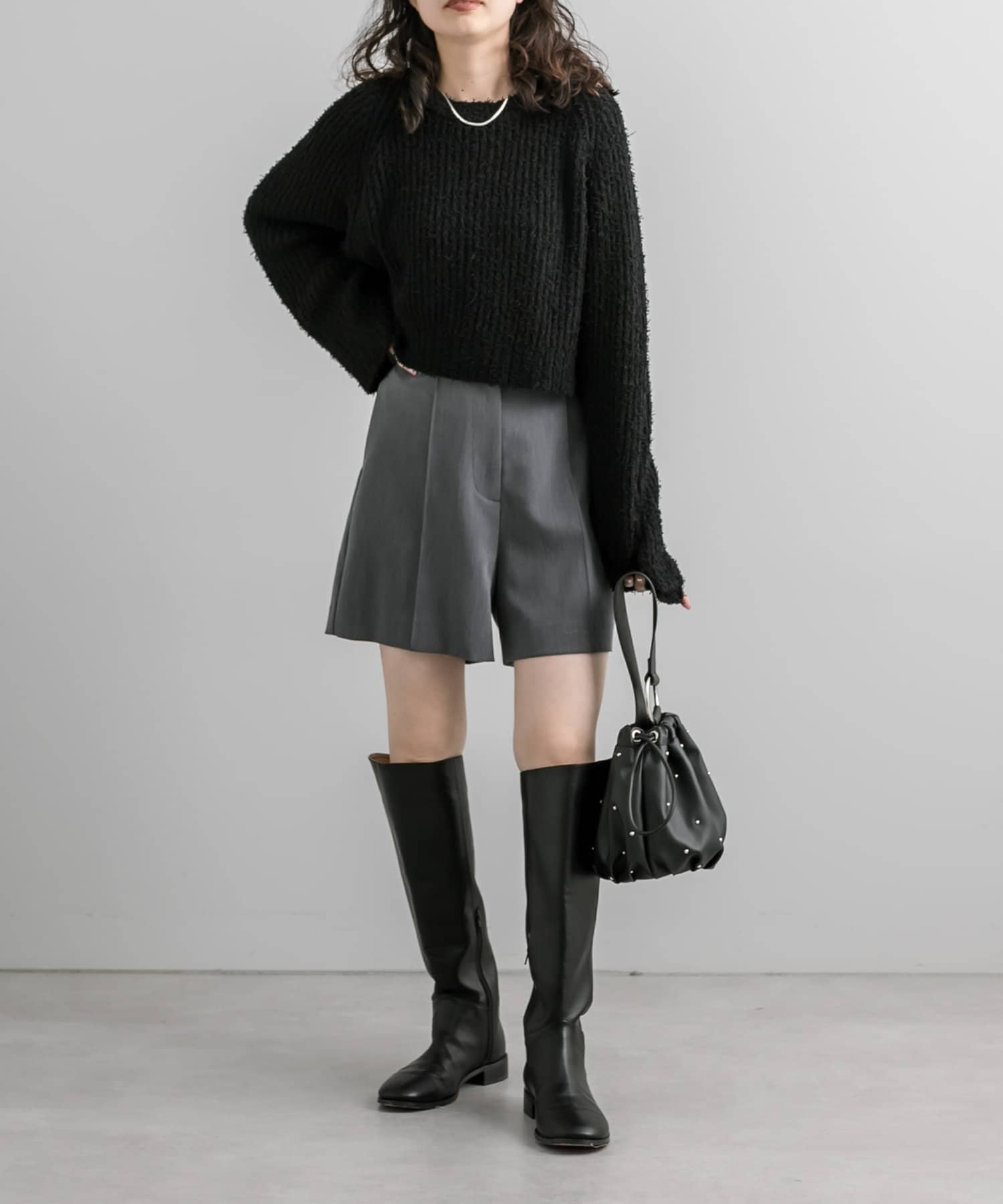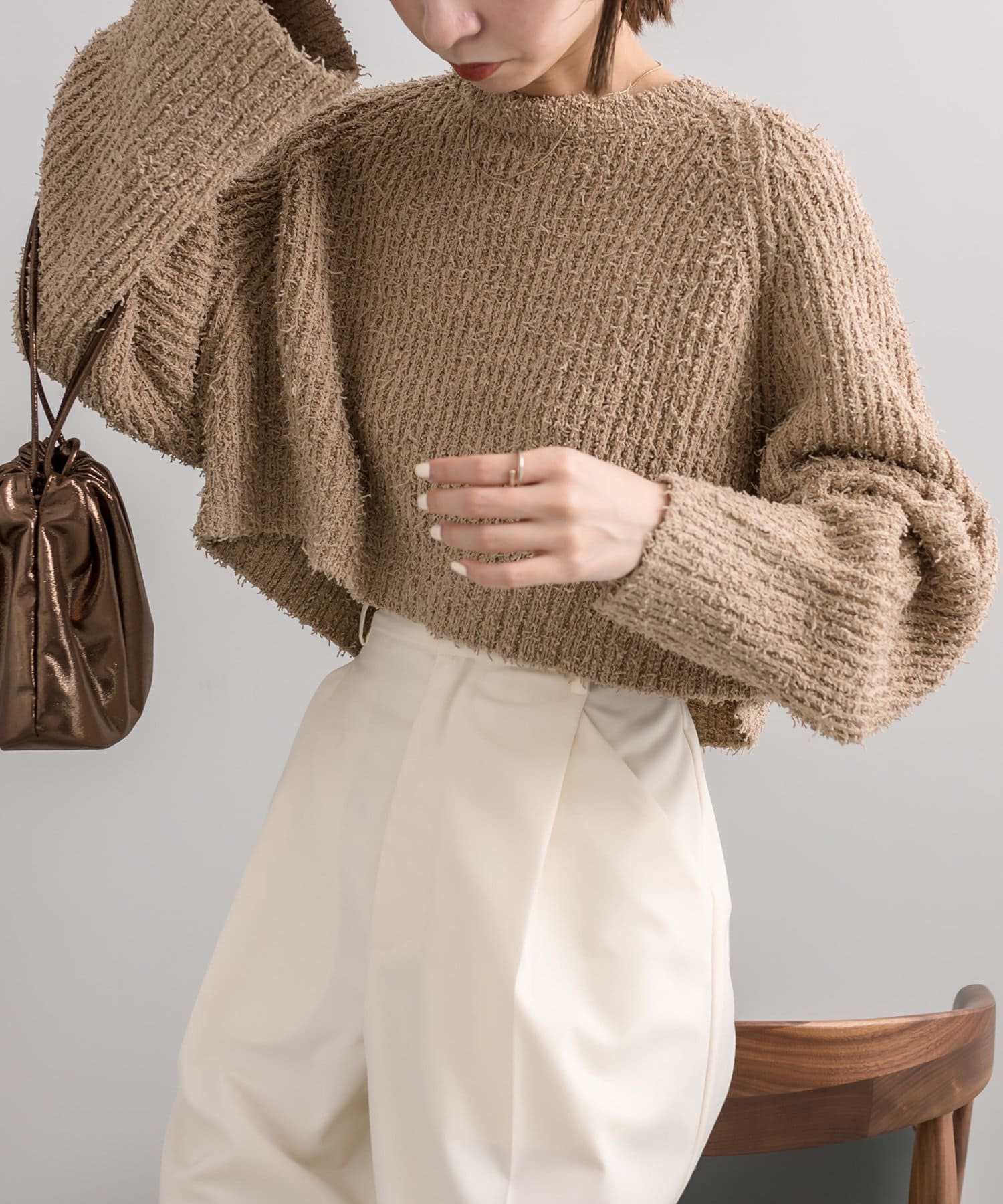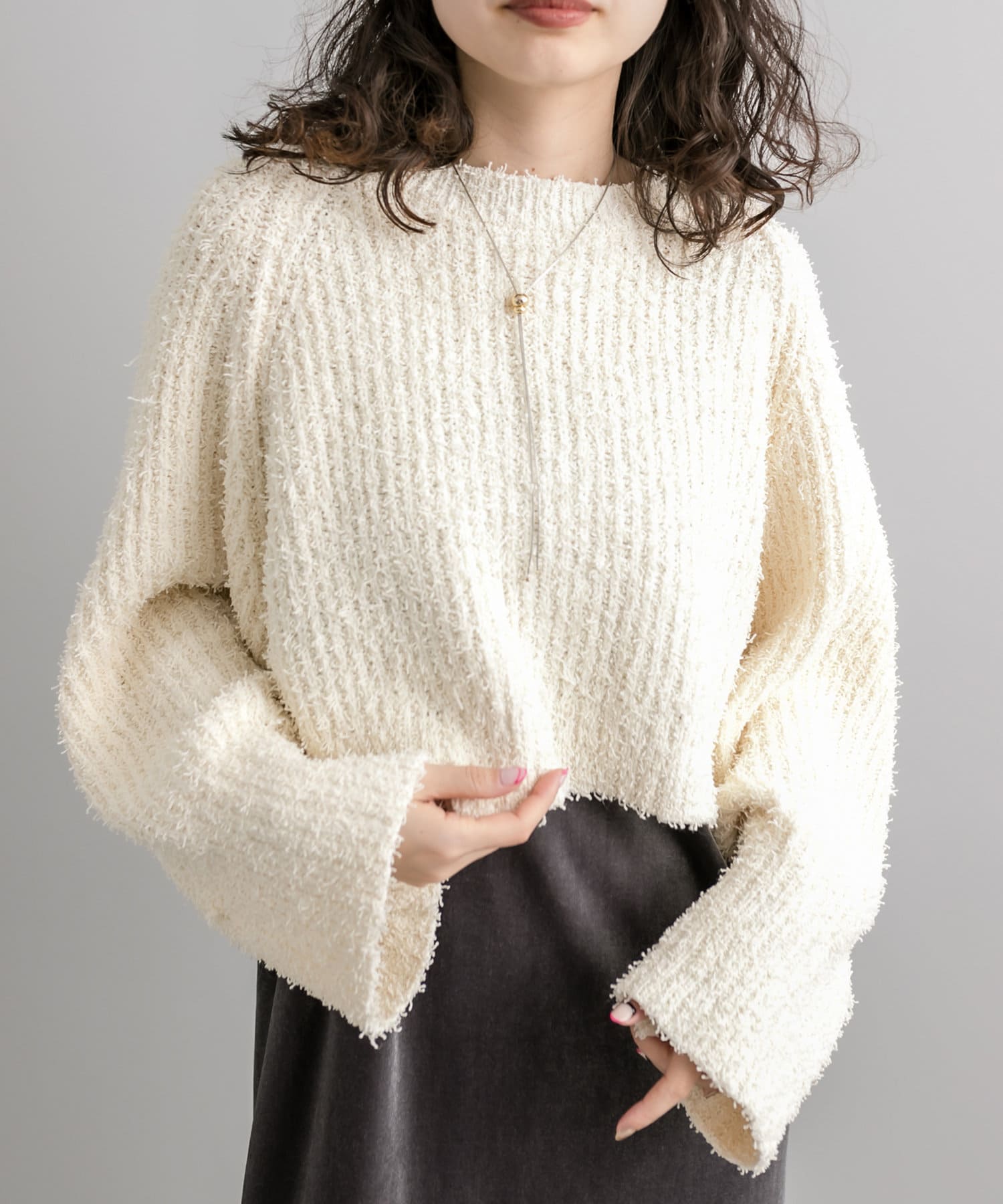 ノットヤーンがこなれ感を演出。ショートニットが登場