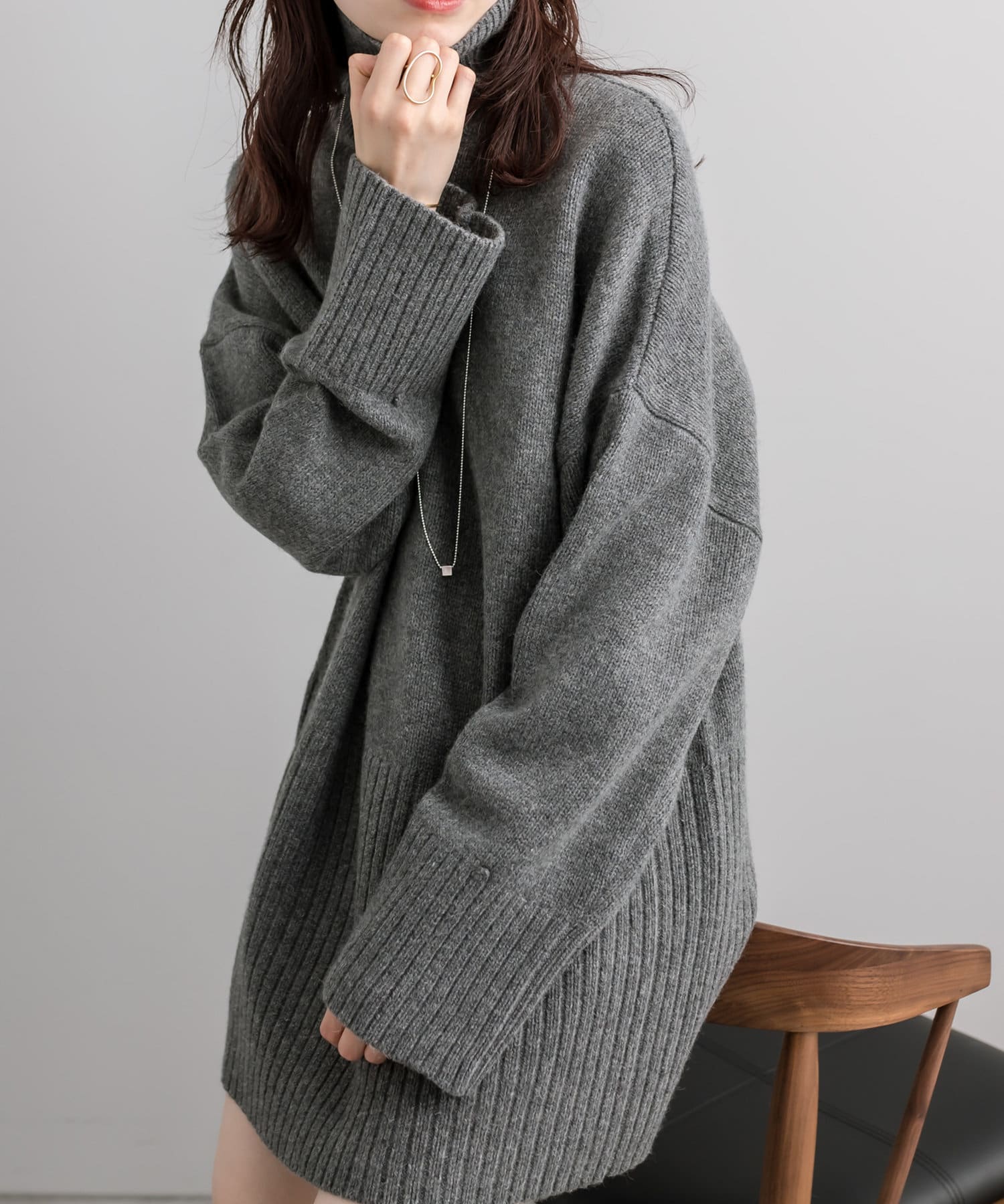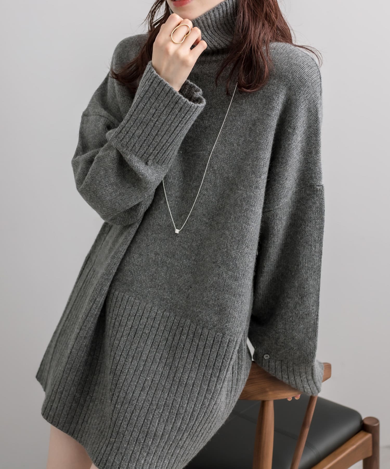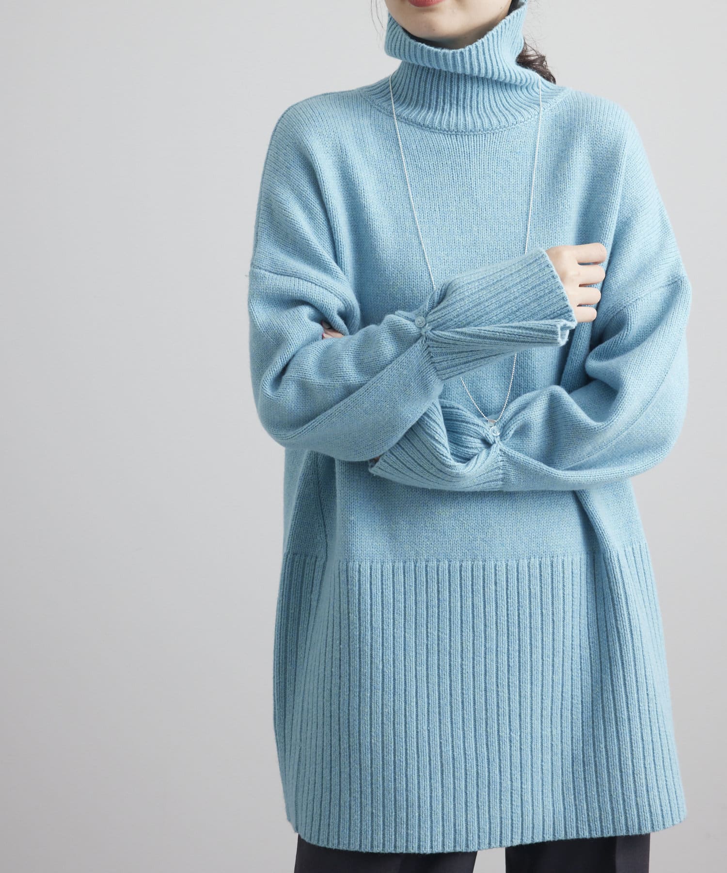 ・首元をすっぽりと覆うタートルネックで冬でも暖かく着ていただけます。