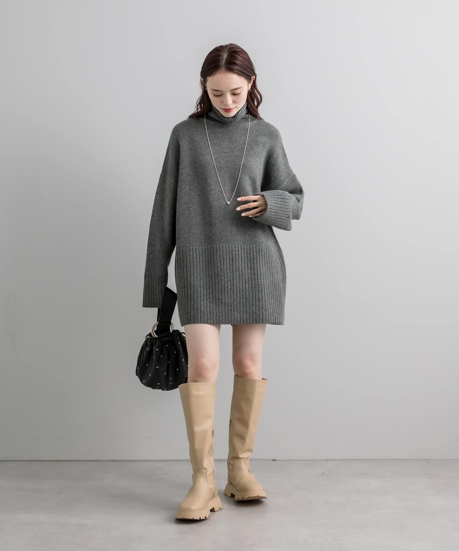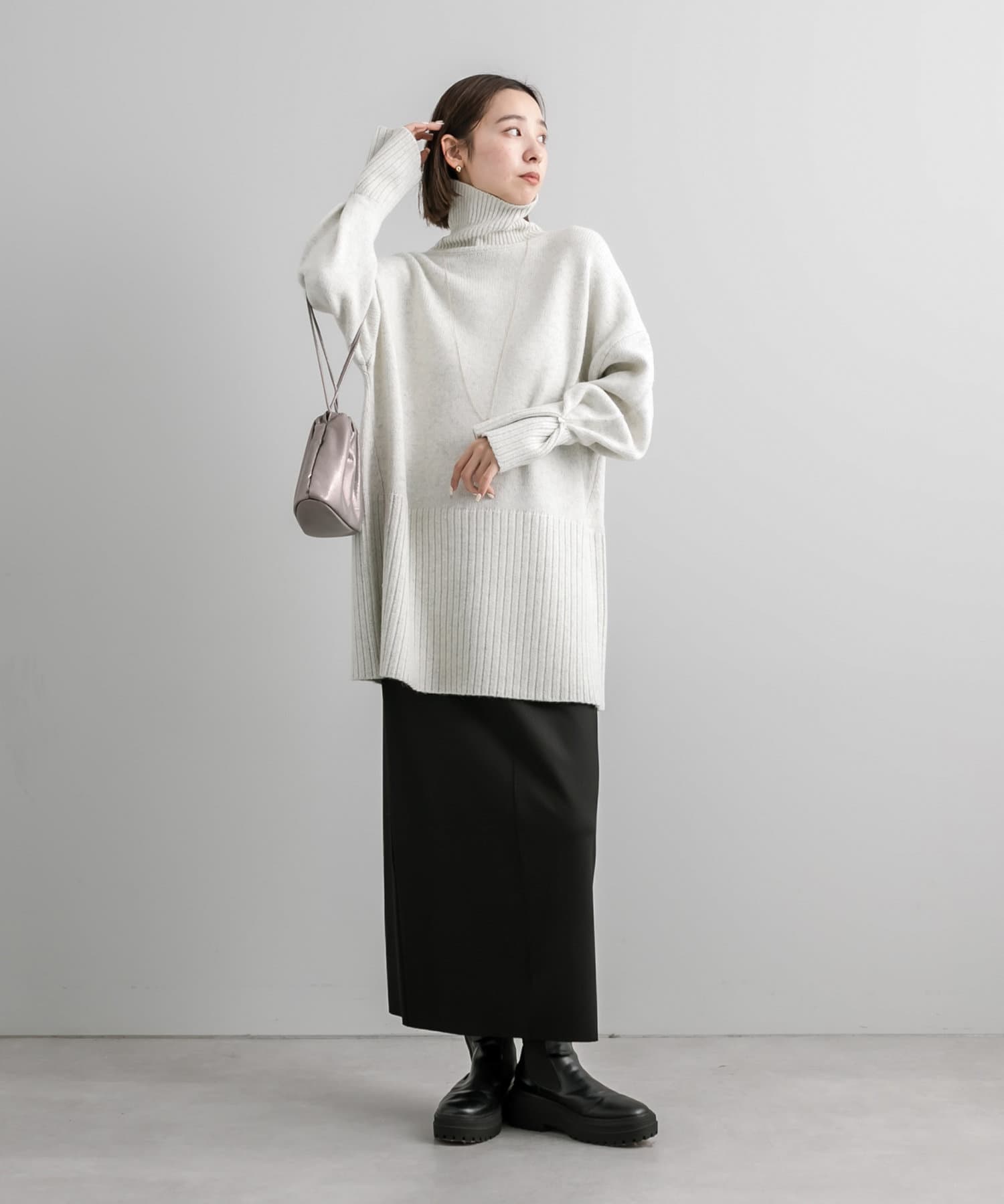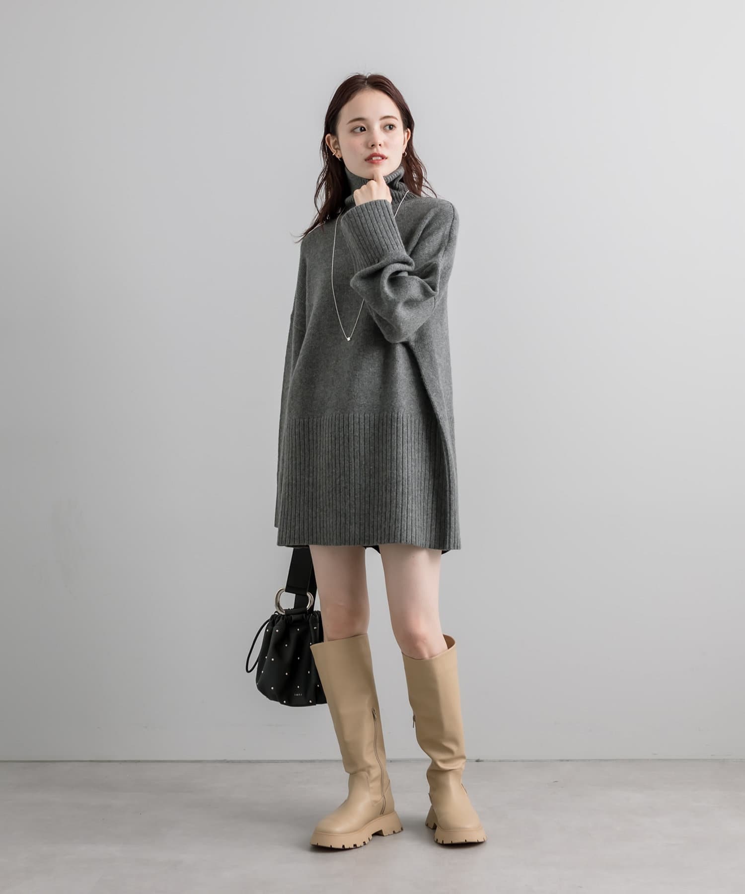 ・首元をすっぽりと覆うタートルネックで冬でも暖かく着ていただけます。