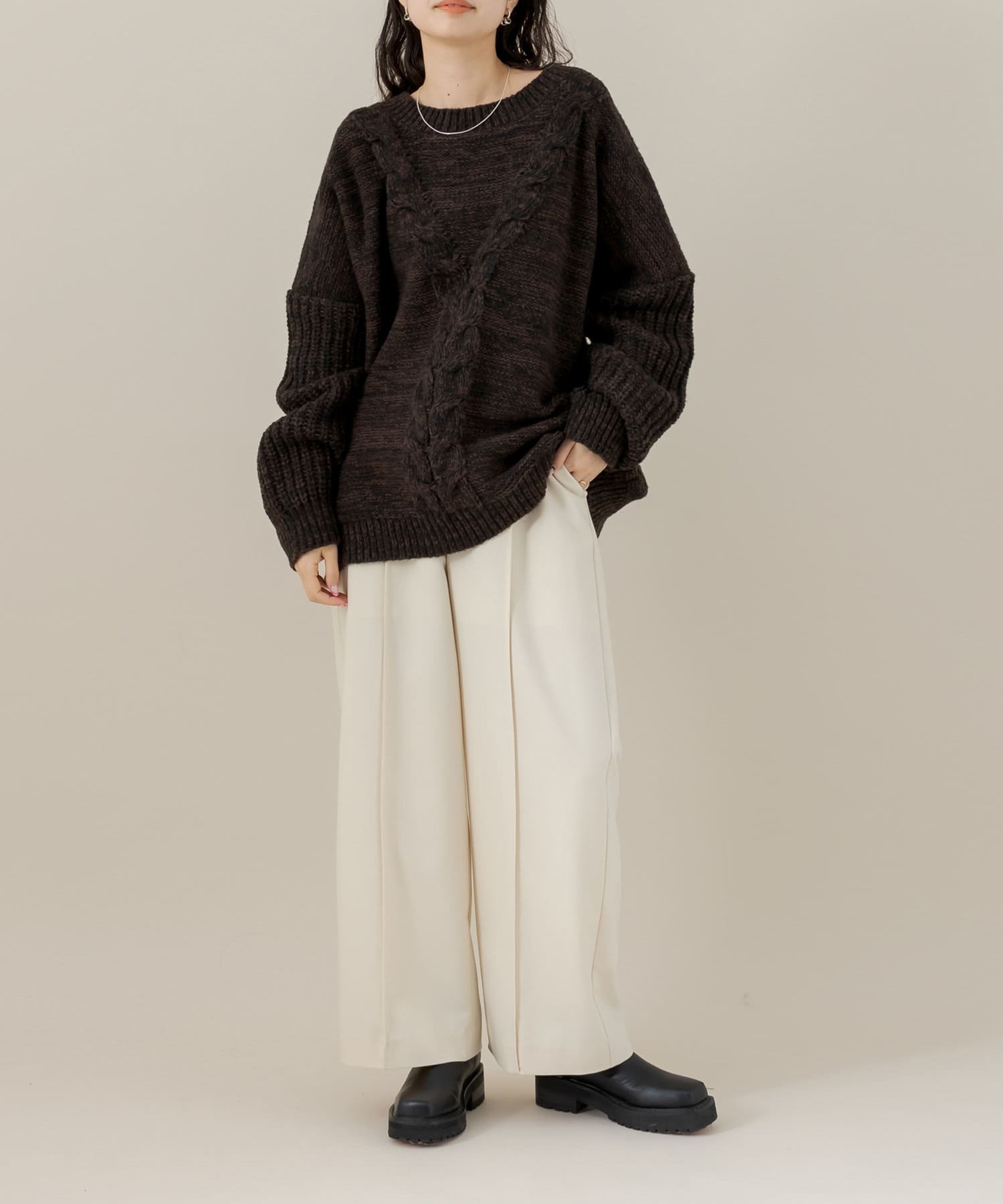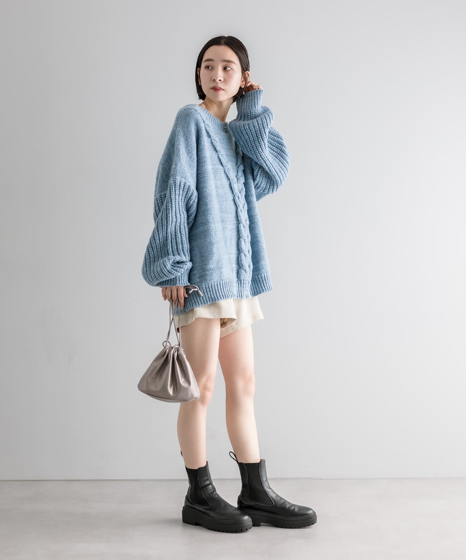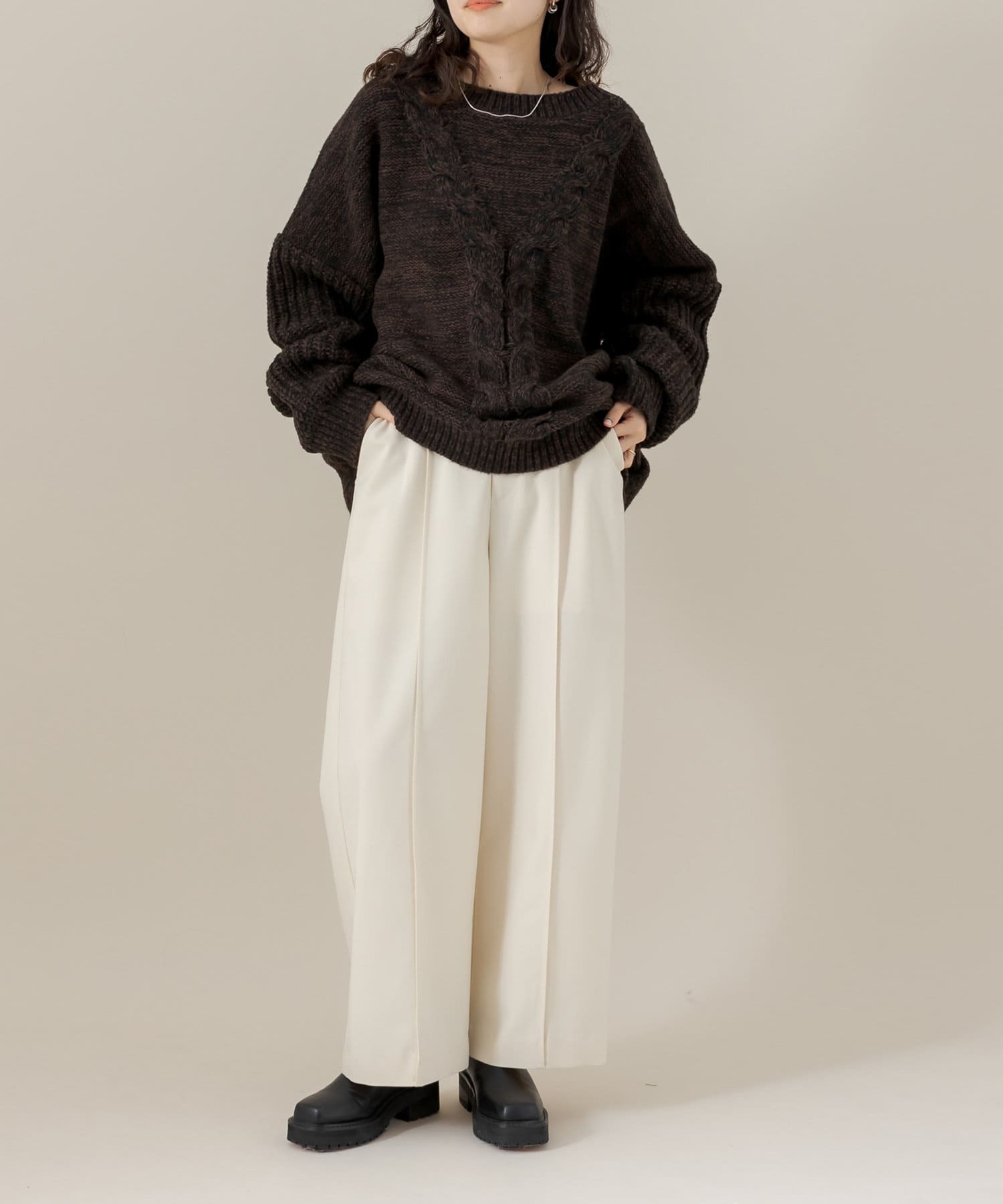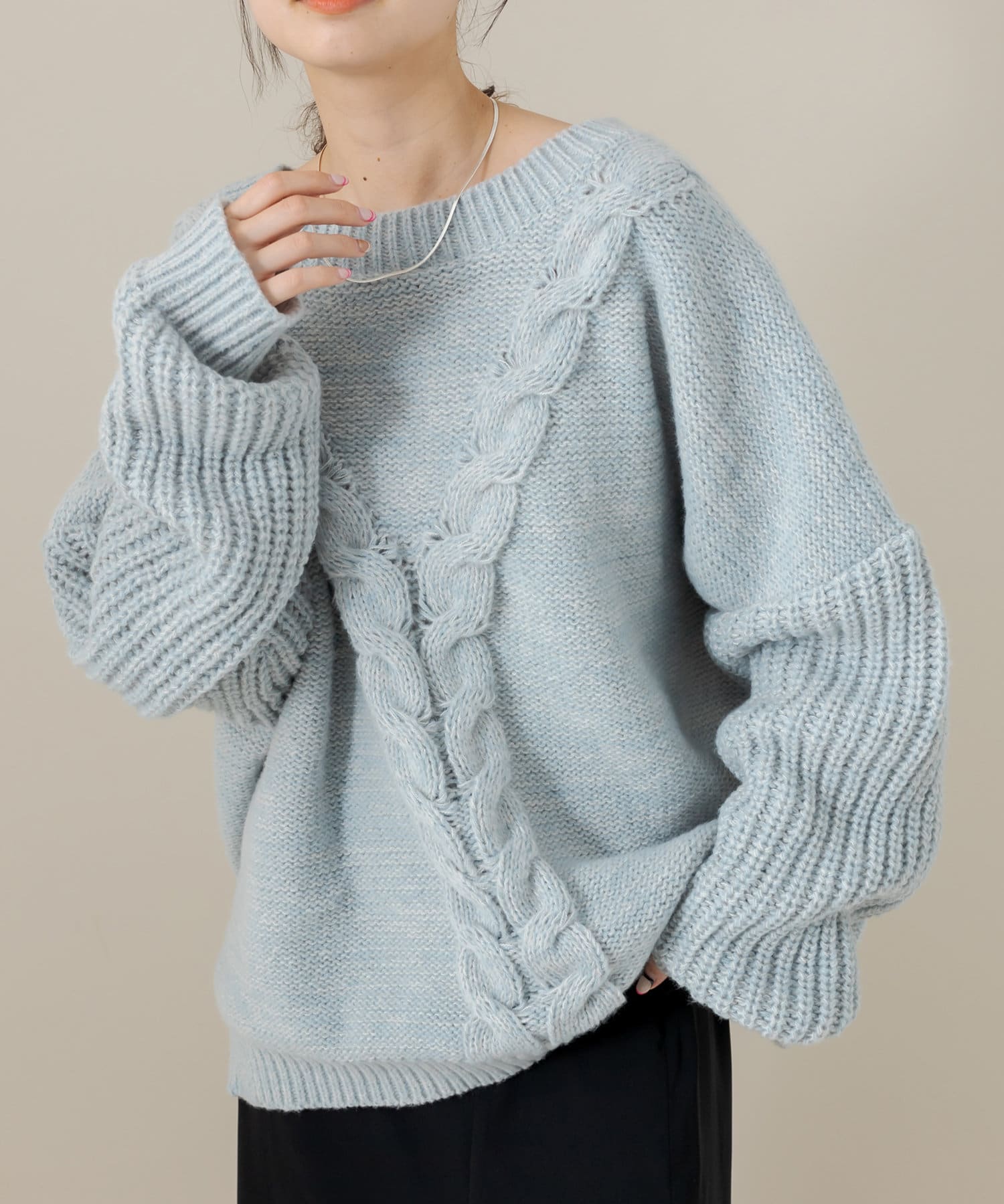 ・袖は切り替えで畦あみを施した主役見えニットです!