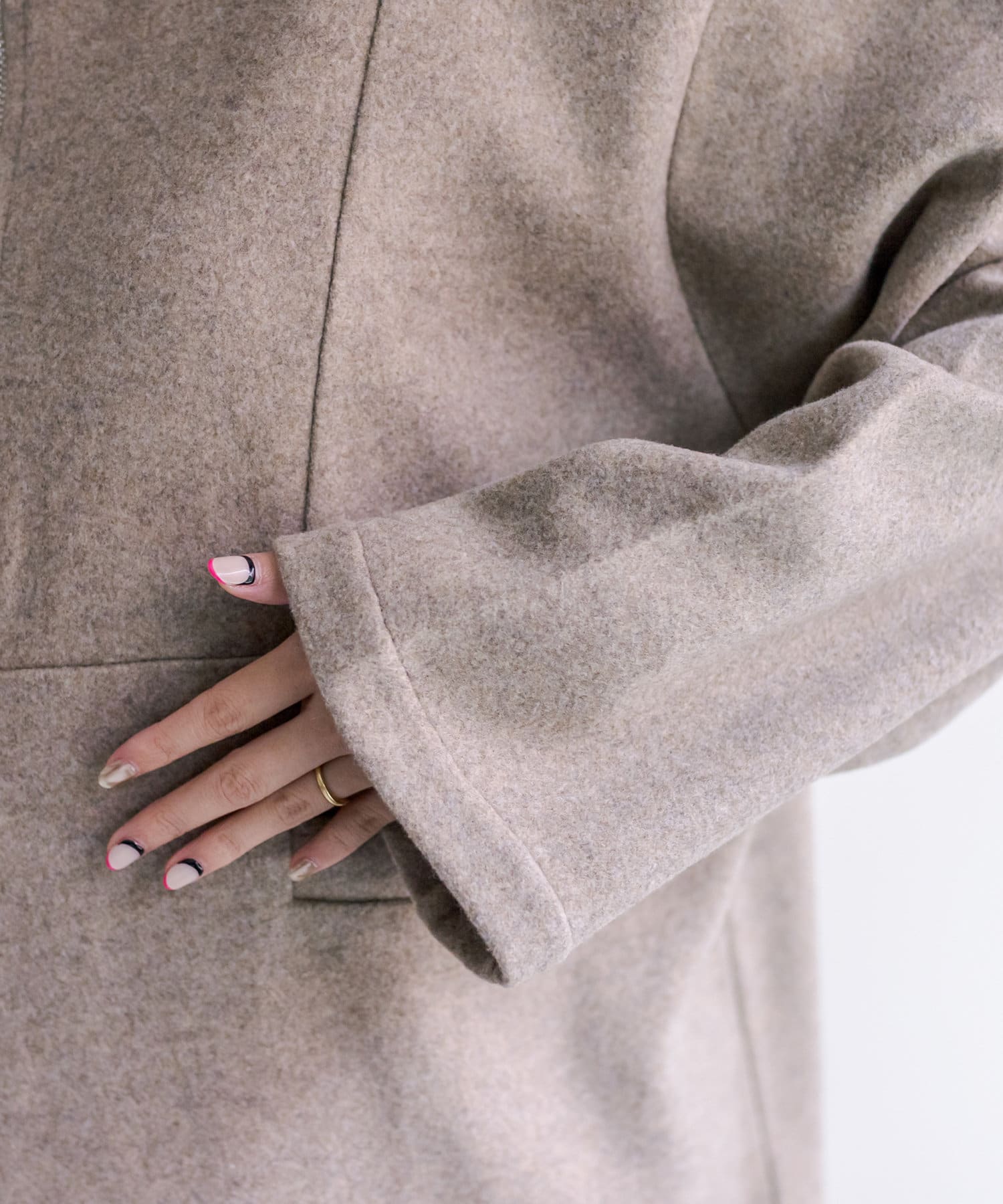 ・ジップを開けてハイネックをレイヤードしていただくのもおすすめです。