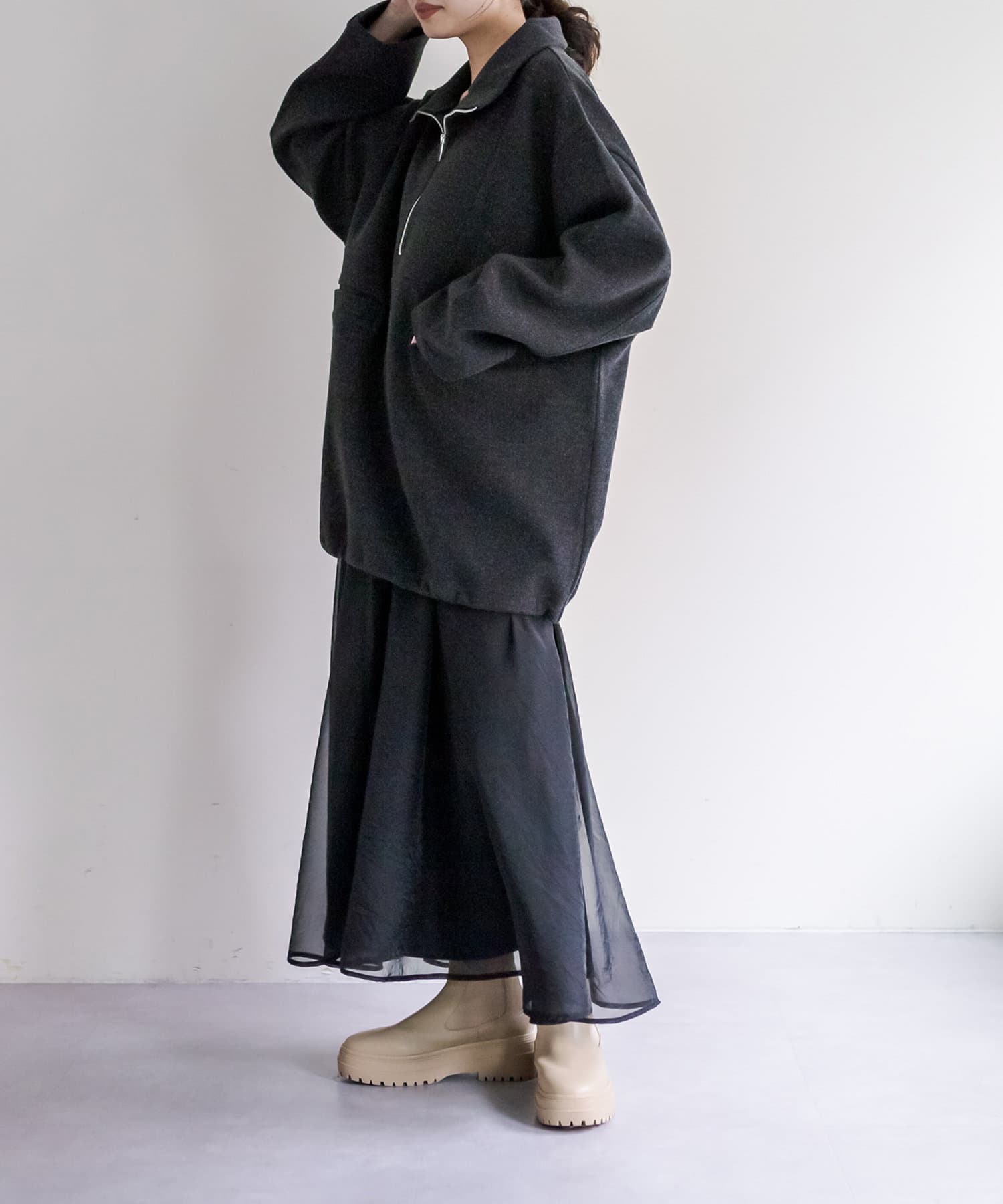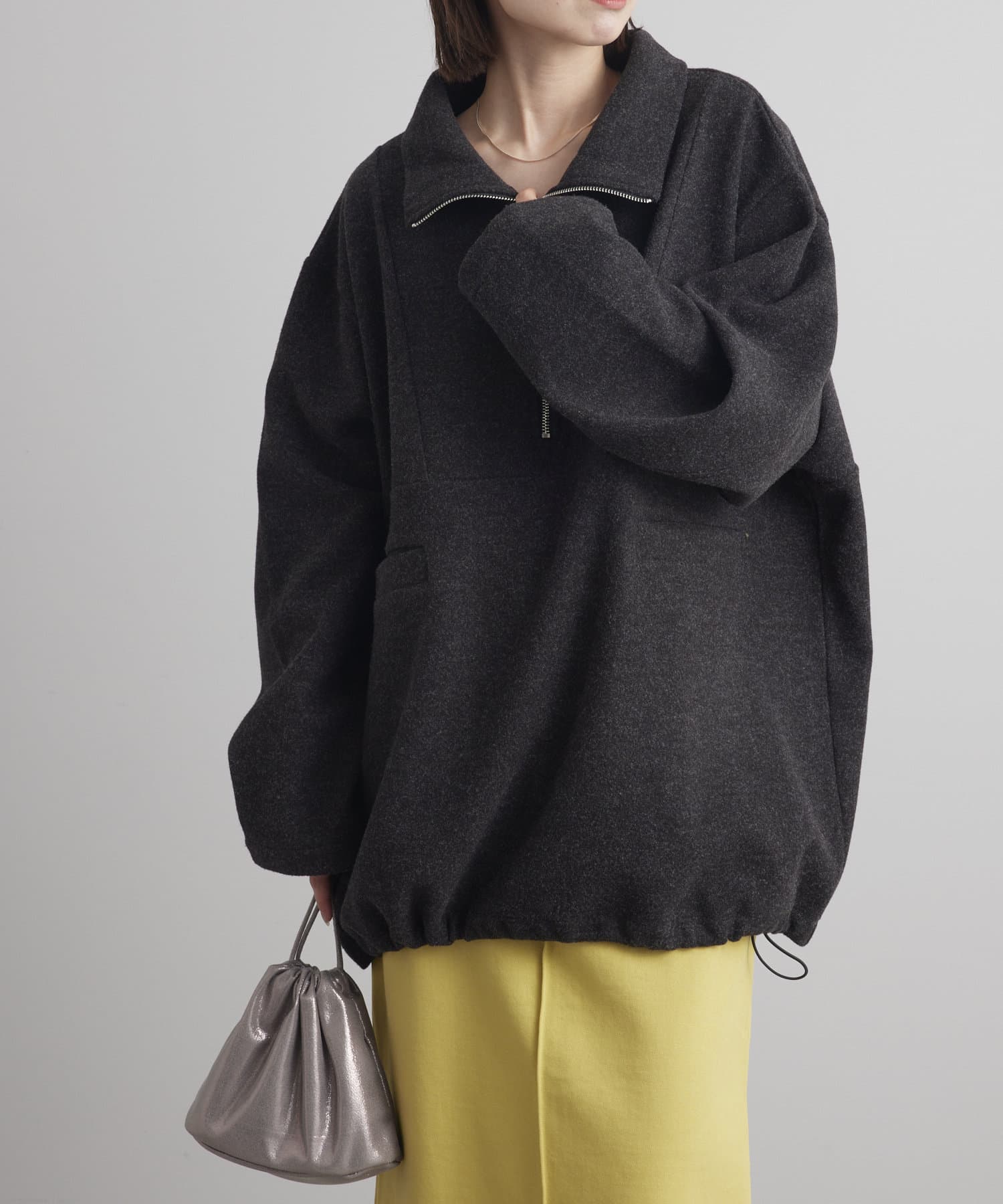 ゆるっと着れるサイズ感で可愛いし、下の絞り具合やジップの締め具合を変えると印象も変わりそう!