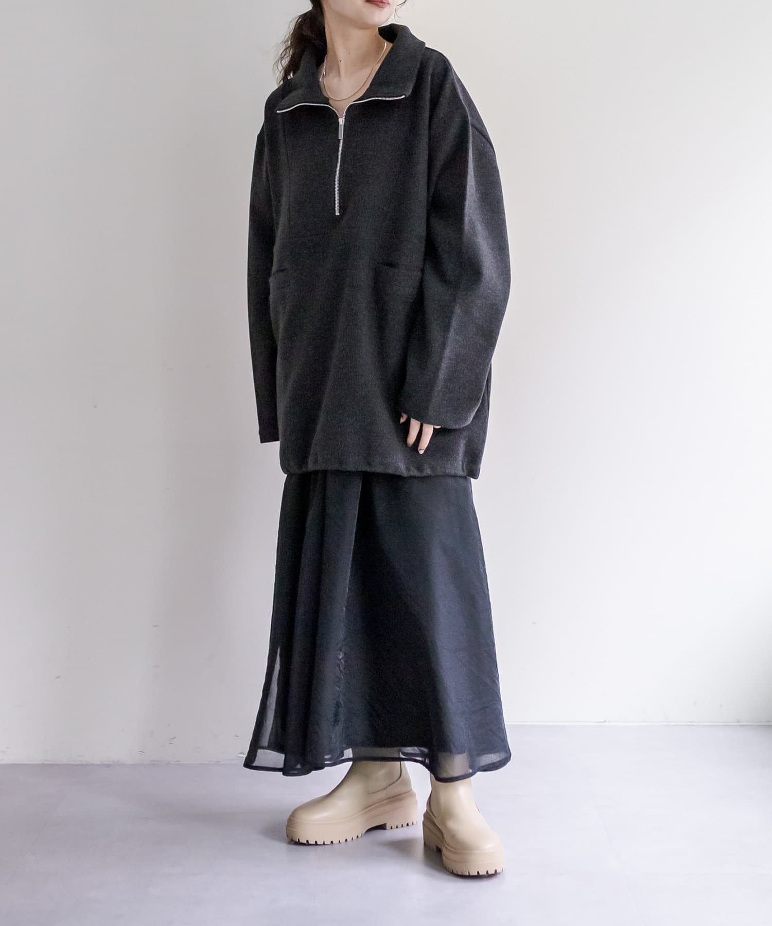テイスト的にあまり着ないものだったので、どうかなと思ってましたが、着てみるとシルエットが可愛かったです(^^)ワンピースやスカートに合わせるのが個人的には好きです!!ハーフジップなので、カラーものチラッと見せて着るのも可愛かったです!!色々な着方でたくさん着たいです(^^)