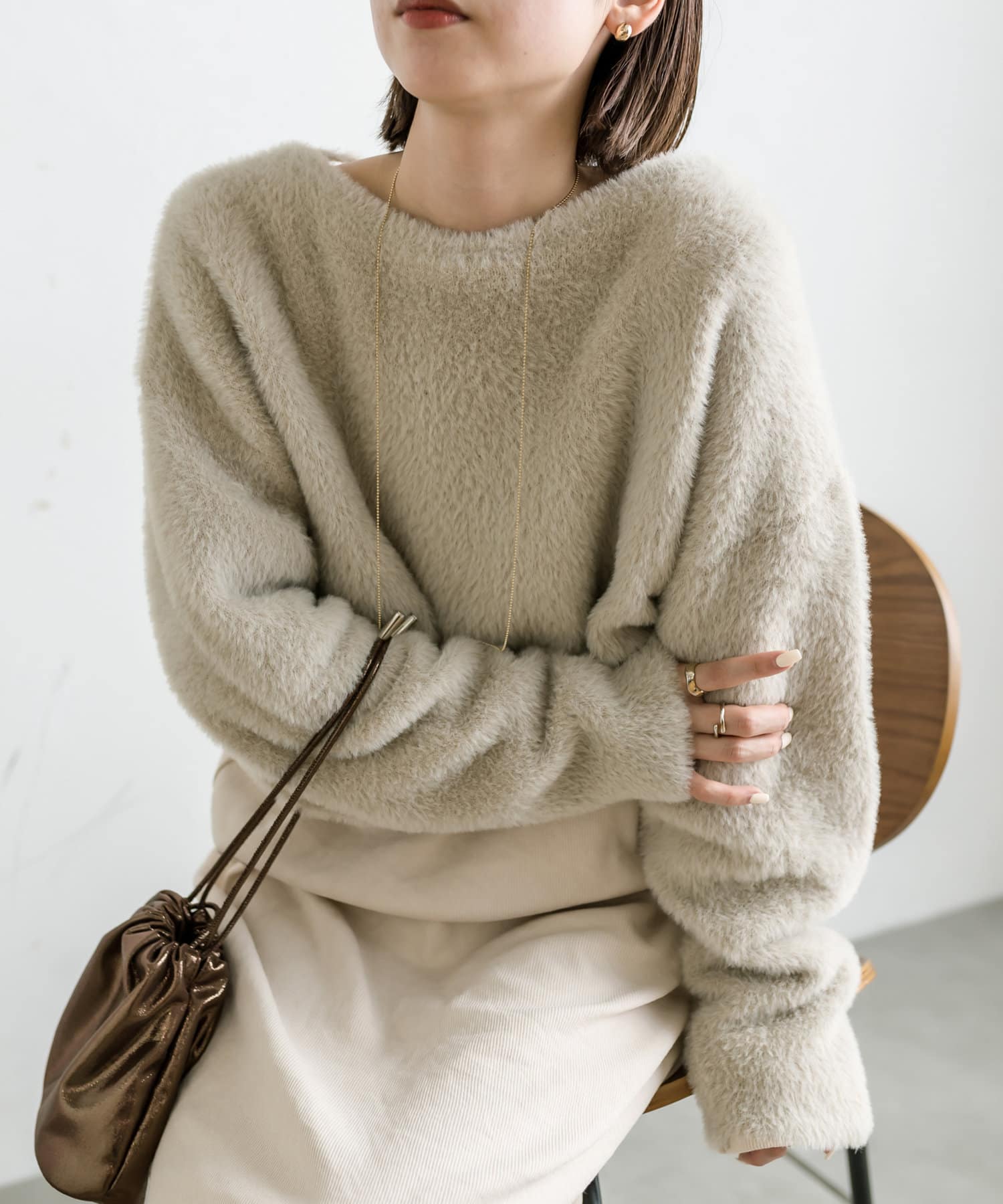 ・シャギーニットは裏の編み方が表とは異なり、肌触りのいいさらっとした素材感◎