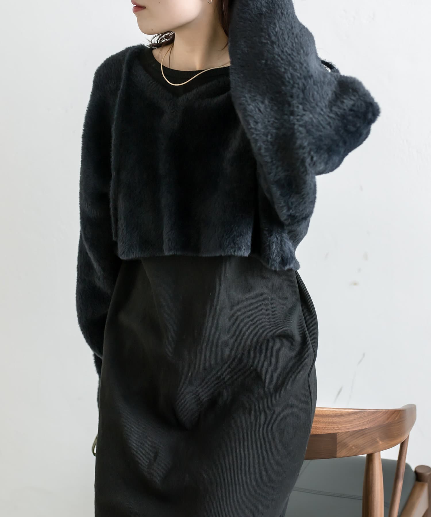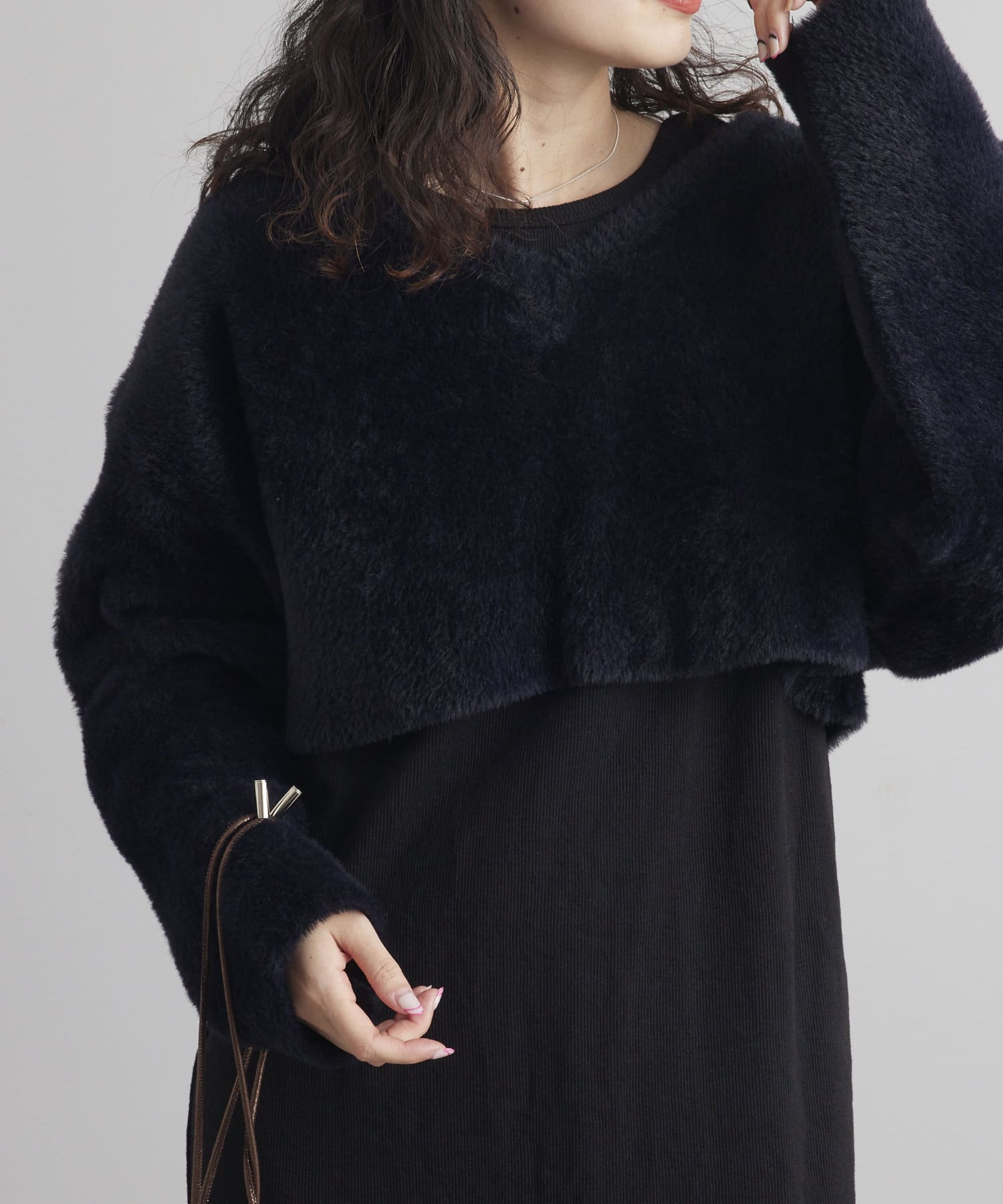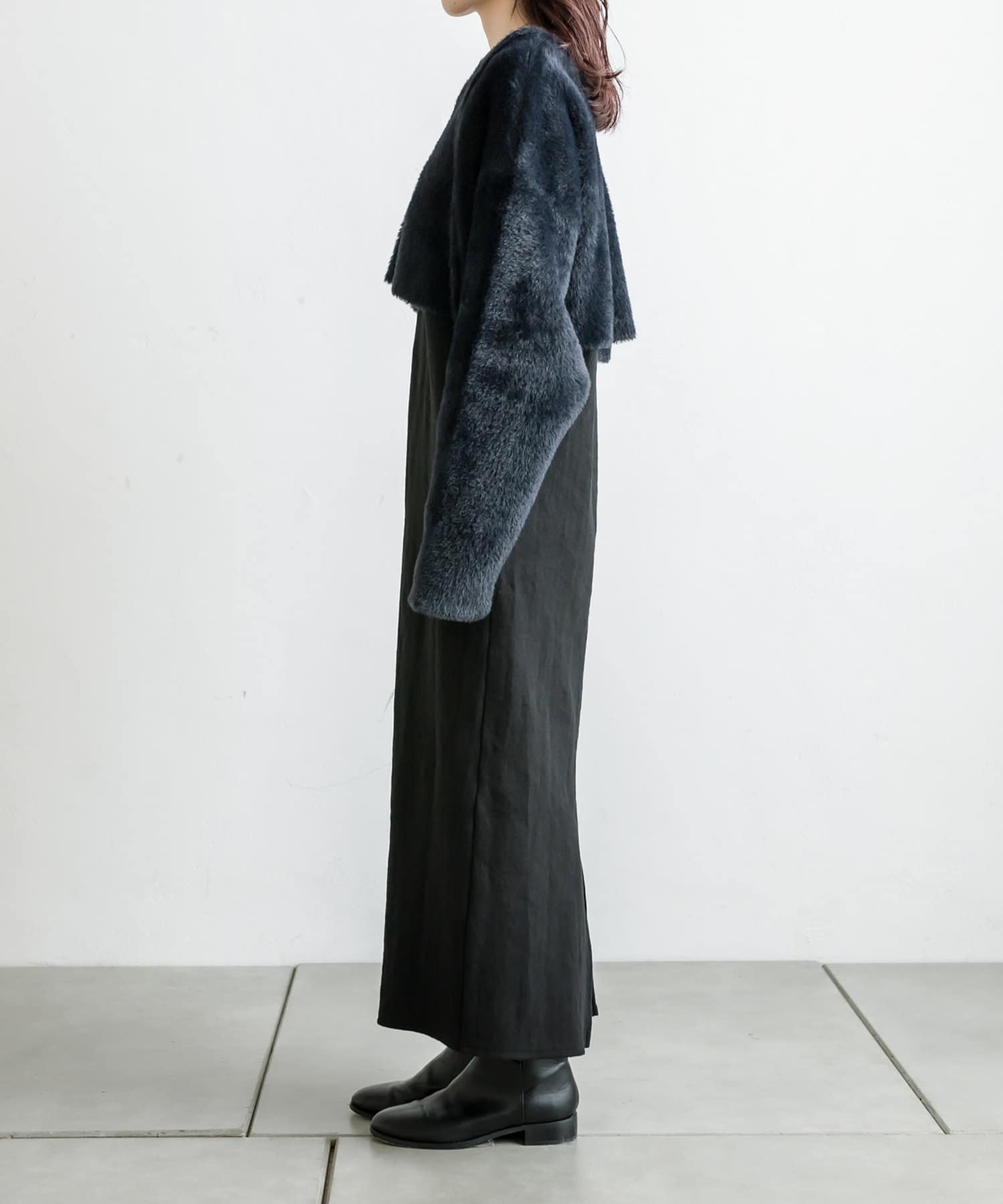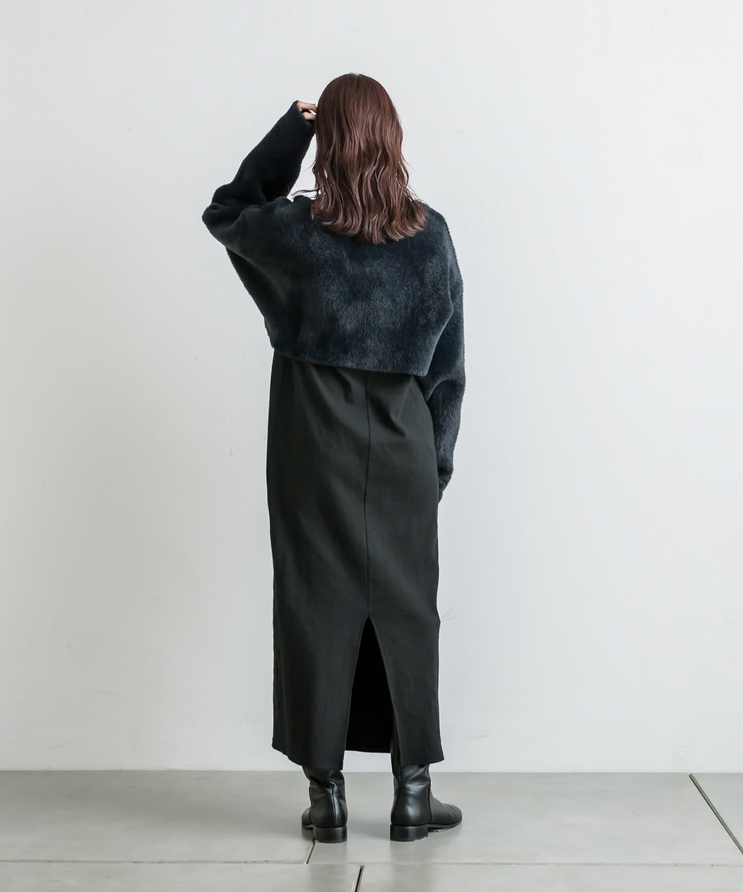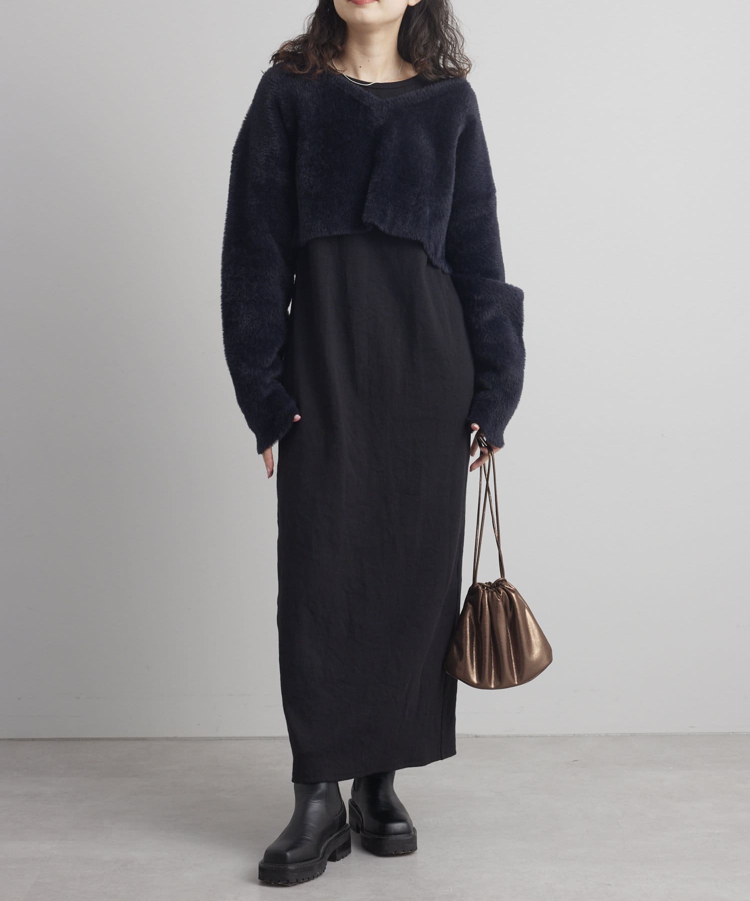 ・ワンピースと、ニットはどちらも前後両前で着れるセットアイテム。