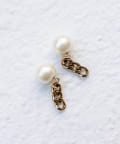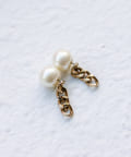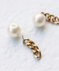 ・大きめのパールとゴールドチェーンデザインが目を惹くピアス。