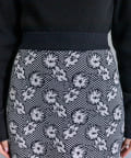 ・小柄な格子柄にちりばめられた花柄がポイントのニットスカート。
