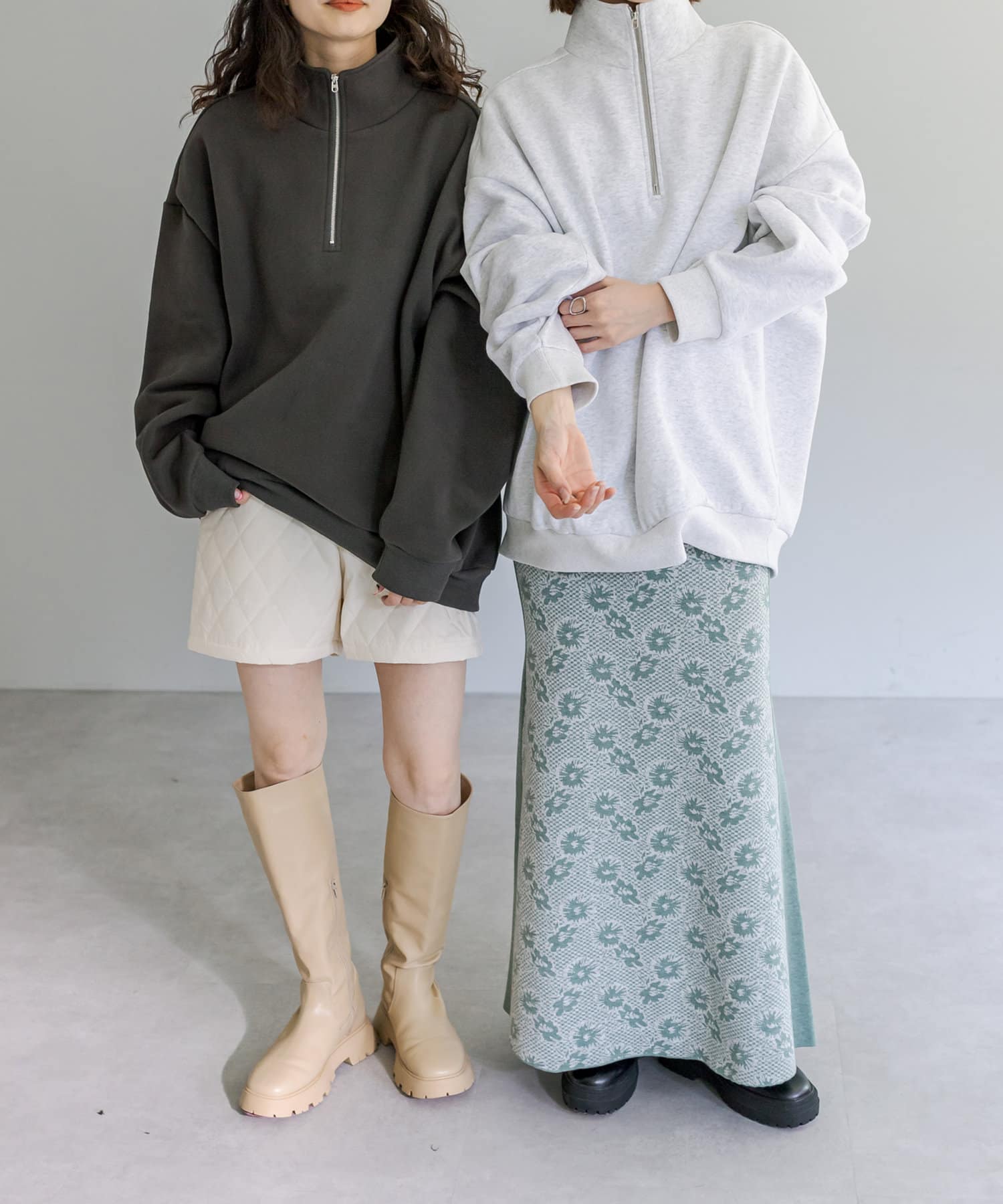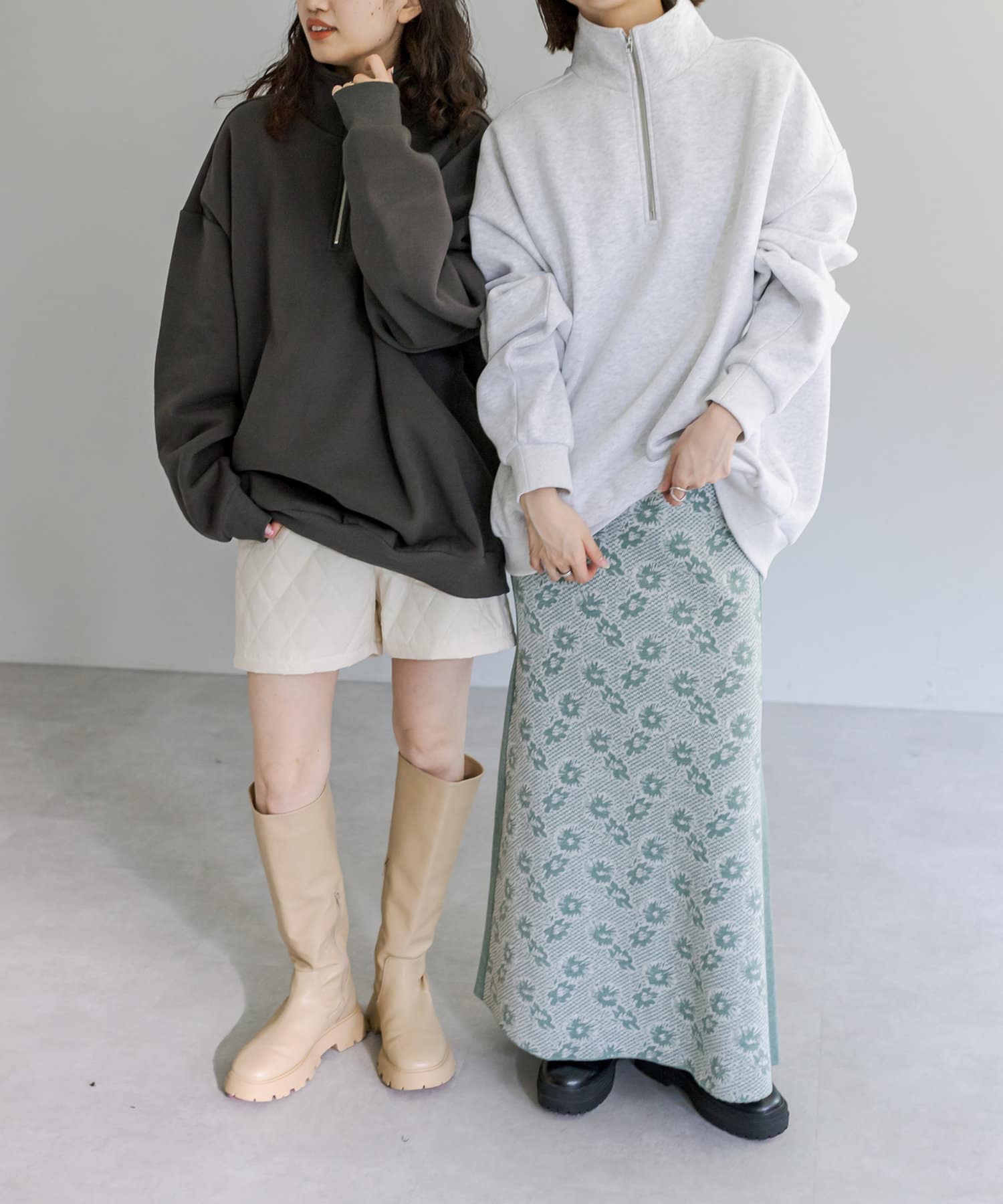 ・ハーフジップやスウェットと合わせてカジュアルダウンして着ていただくのもおすすめ◎